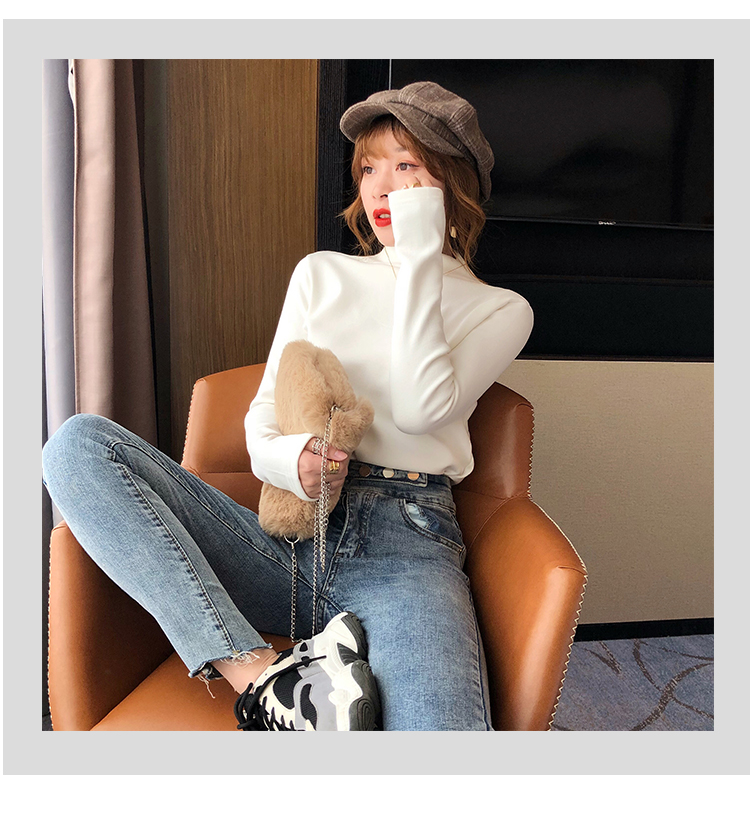 【12.12上新 0點開搶】加絨加厚秋冬寬松半高領打底衫內搭Tt恤女1入
