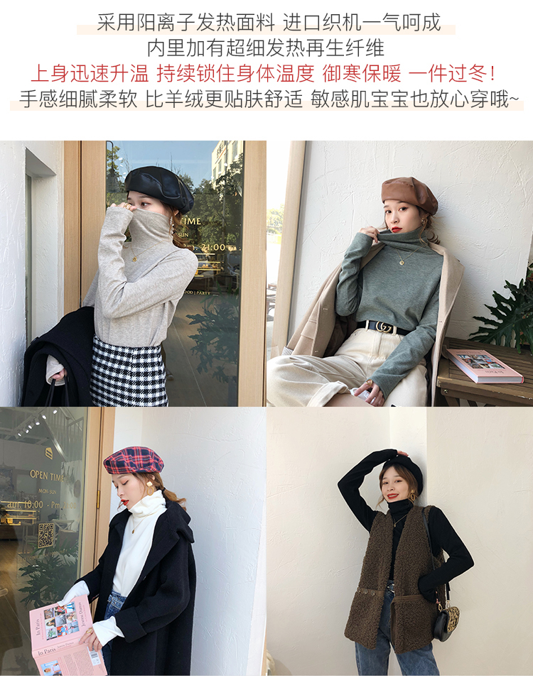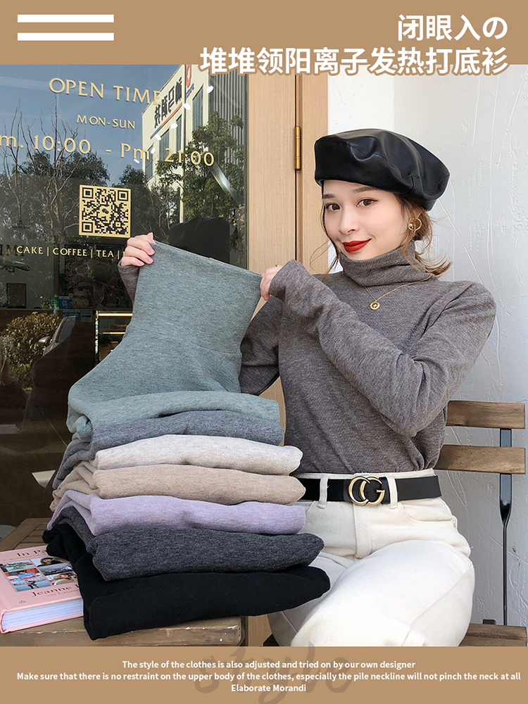【12.12上新 0點半價開搶】堆堆領陽離子發熱打底衫高領內搭上衣1入