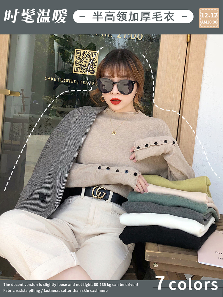 【12.12上新 0點半價開搶】半高領打底針織衫秋冬個性時尚毛衣女1入