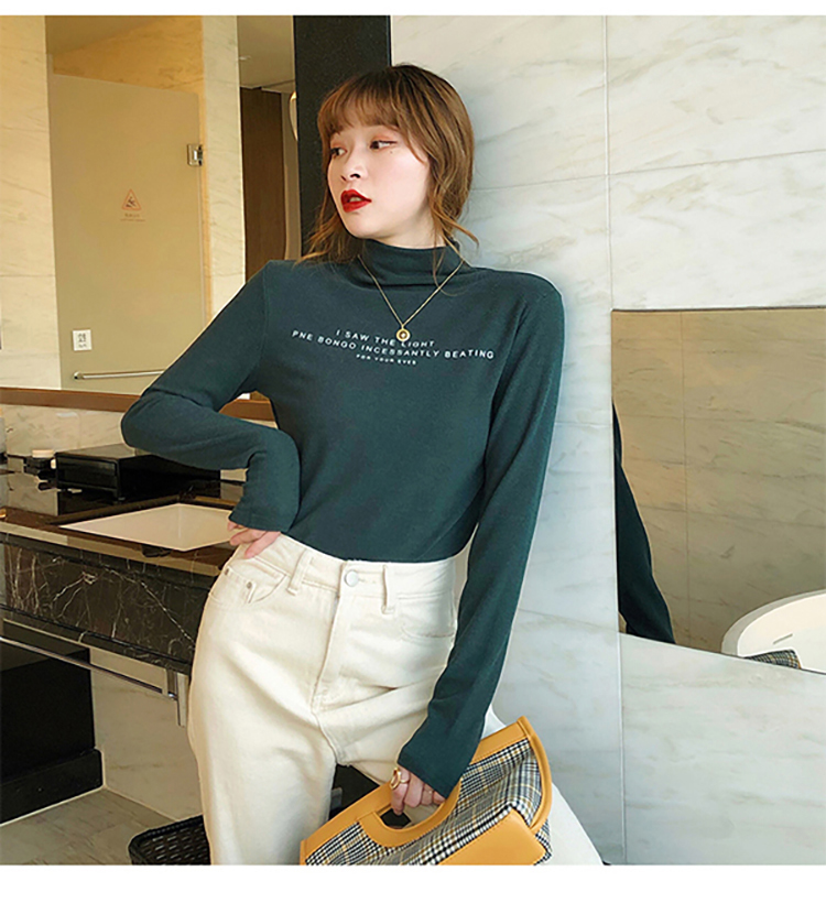 黑色打底衫女秋冬新品2019洋氣雙面磨毛加絨加厚保暖打底上衣Tt恤1入