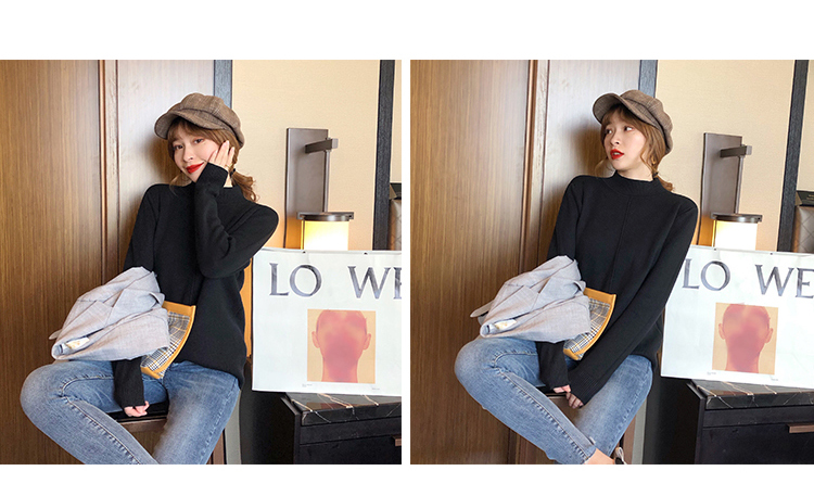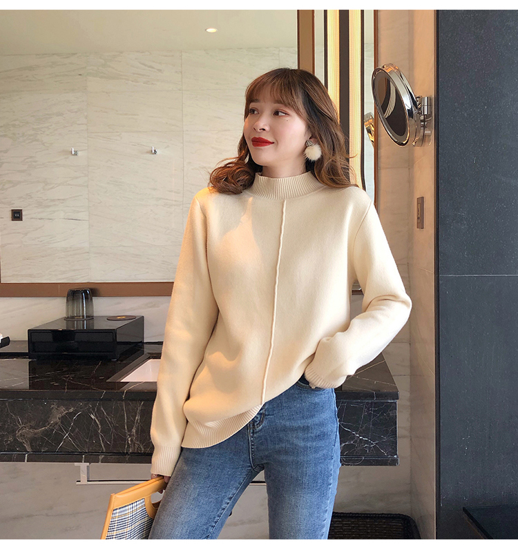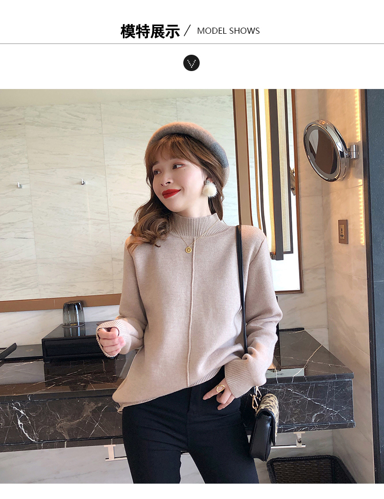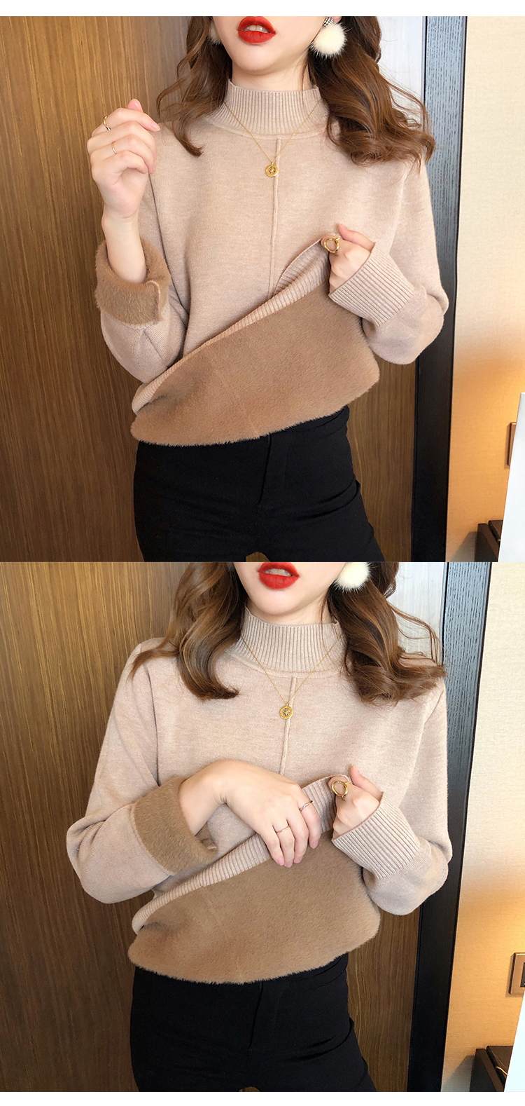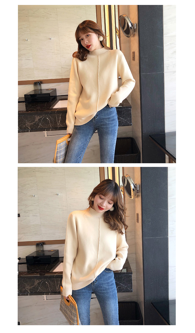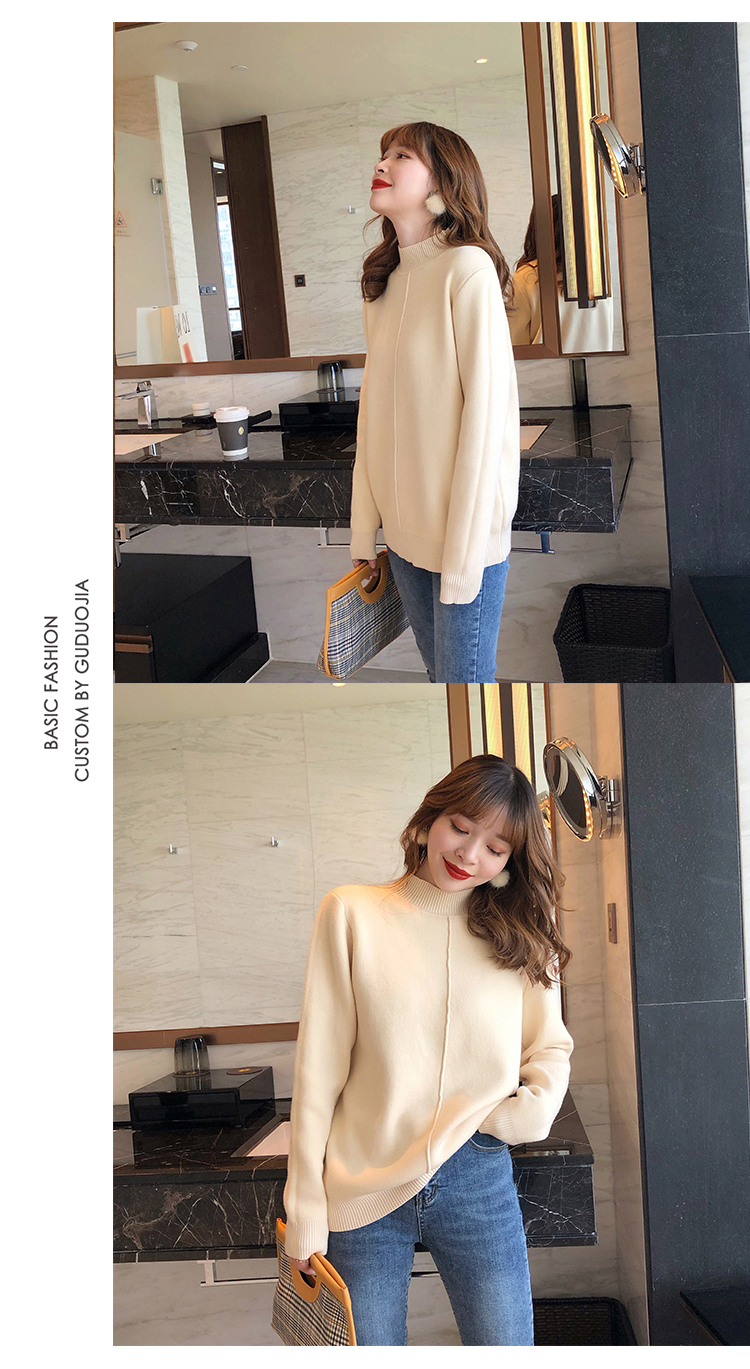 2019秋冬新款加厚一體絨毛衣女半高領寬松針織衫洋氣保暖打底上衣1入