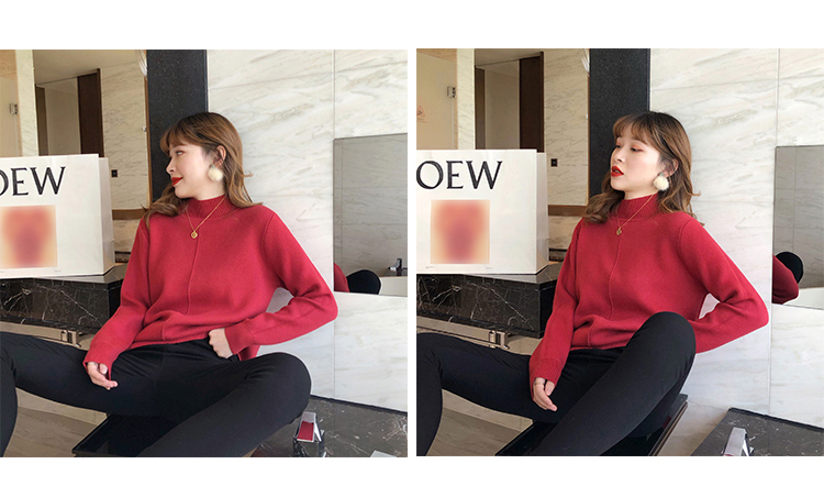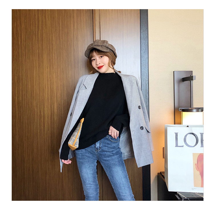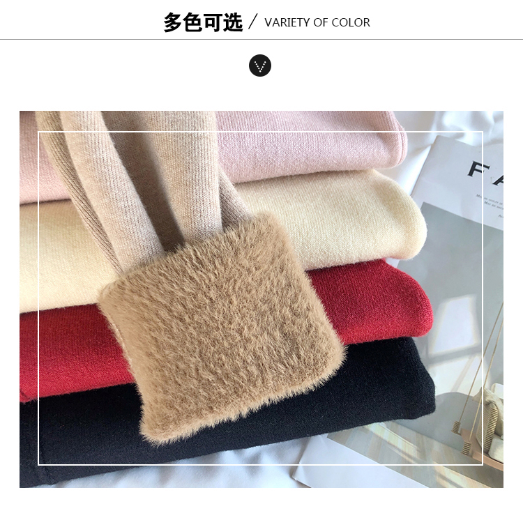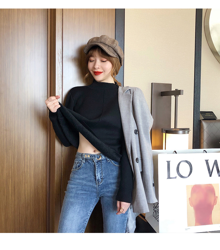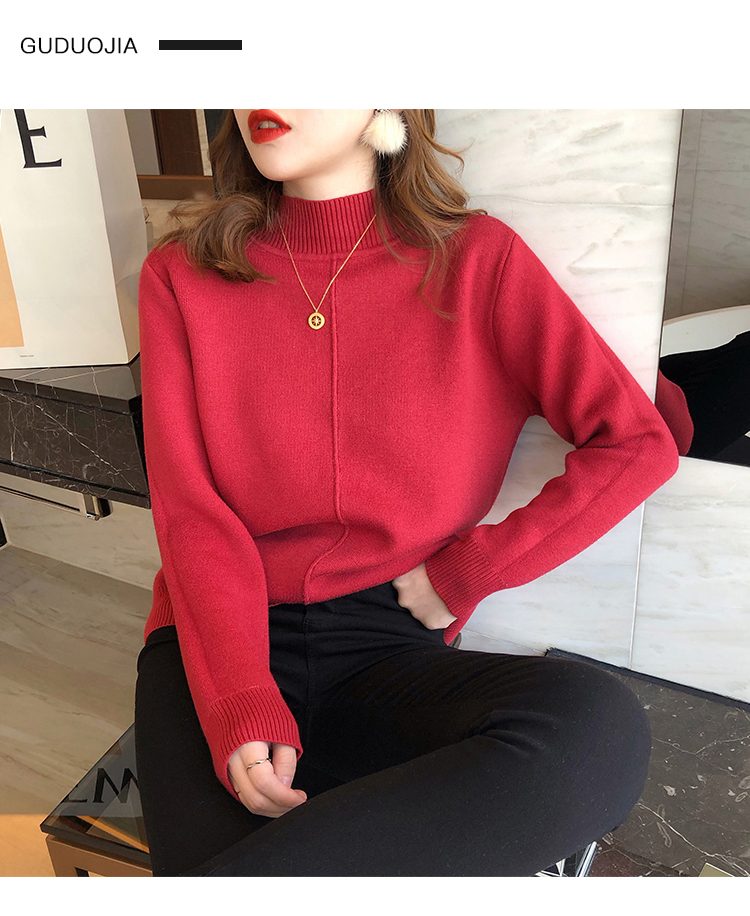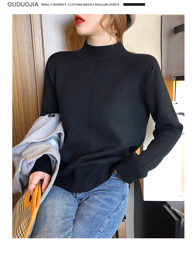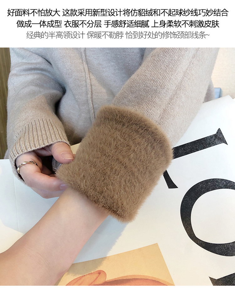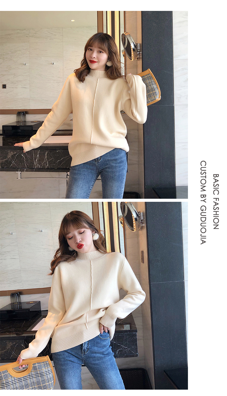 2019秋冬新款加厚一體絨毛衣女半高領寬松針織衫洋氣保暖打底上衣1入