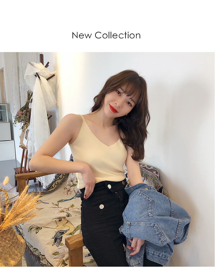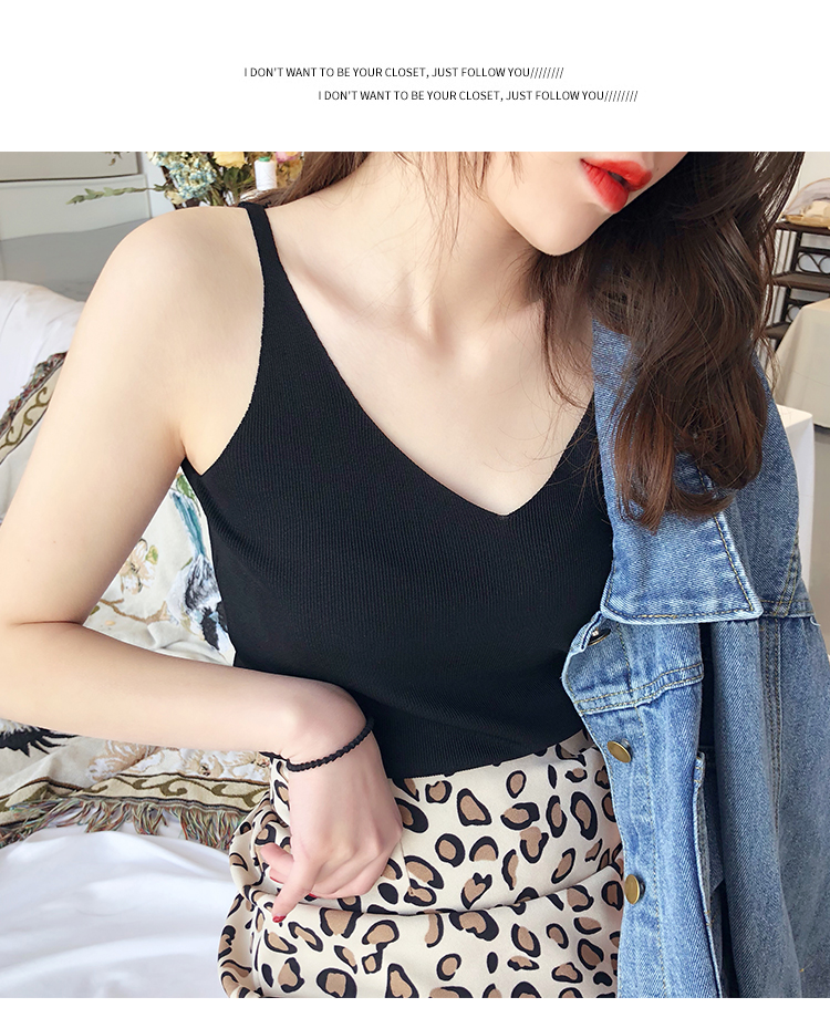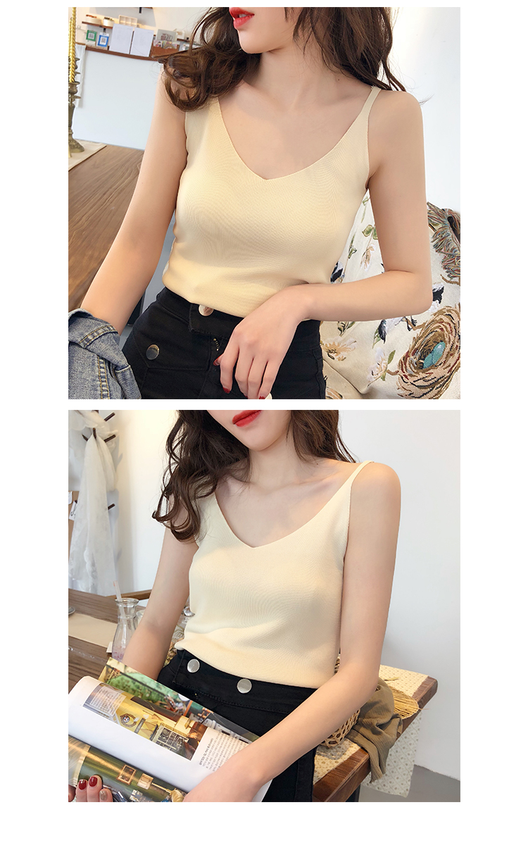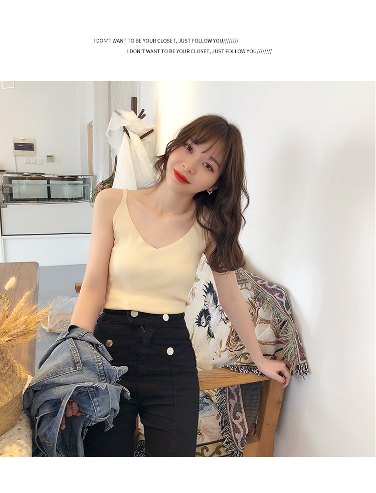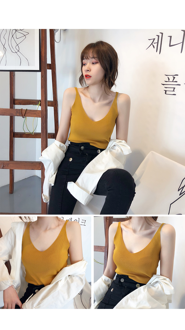 2019新款港味小清新吊帶女內搭冰絲針織小背心外穿無袖打底上衣夏1入