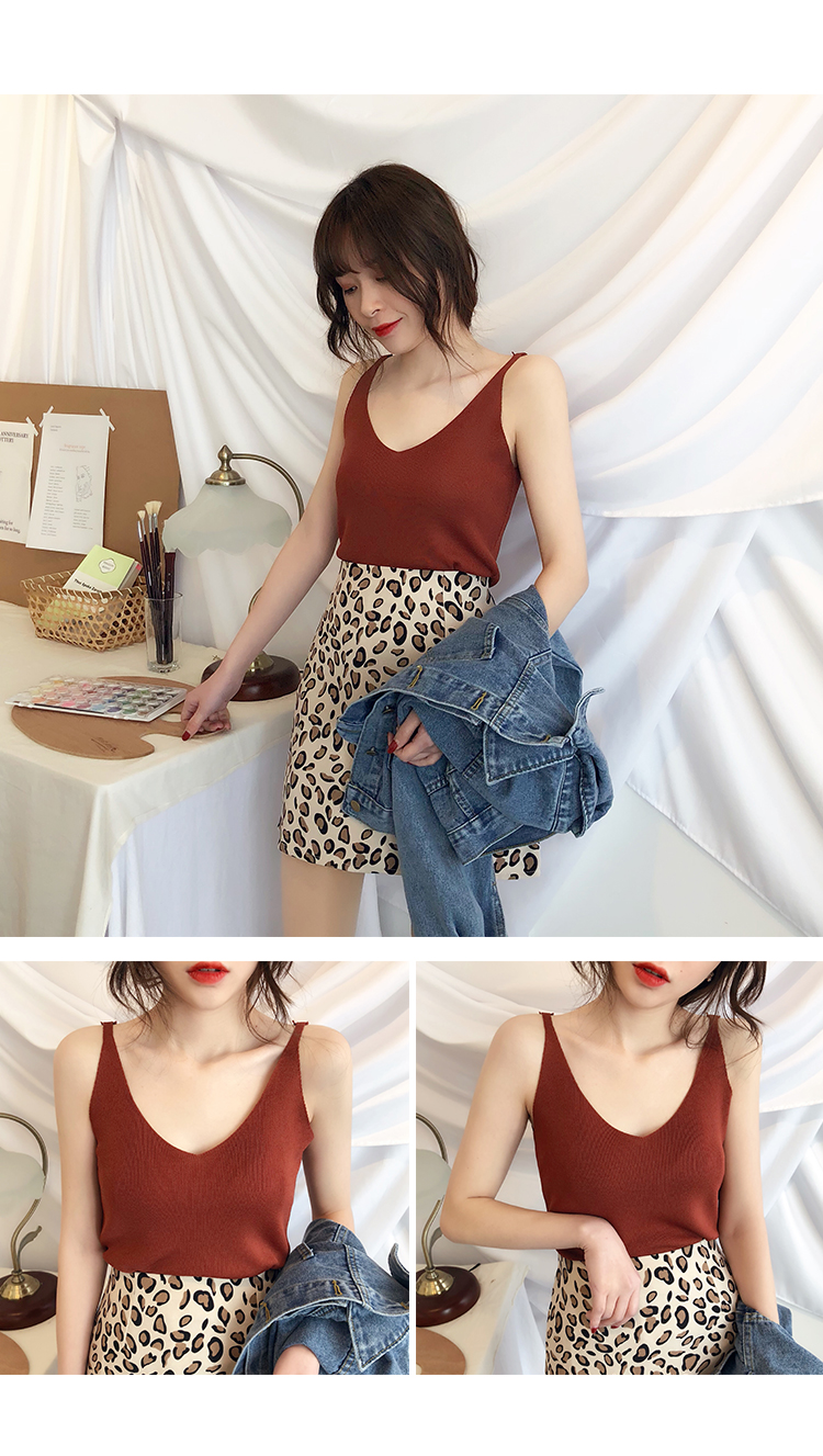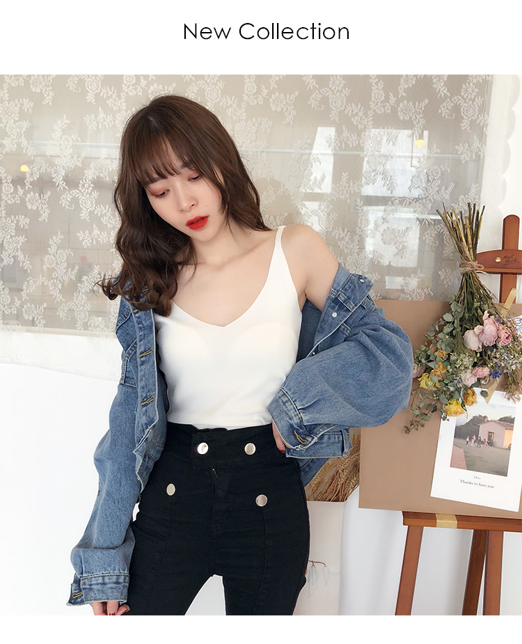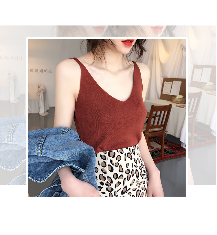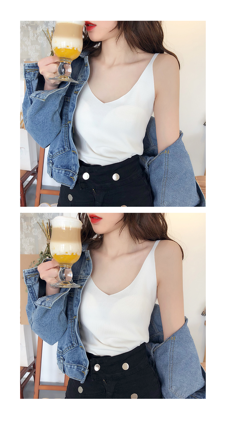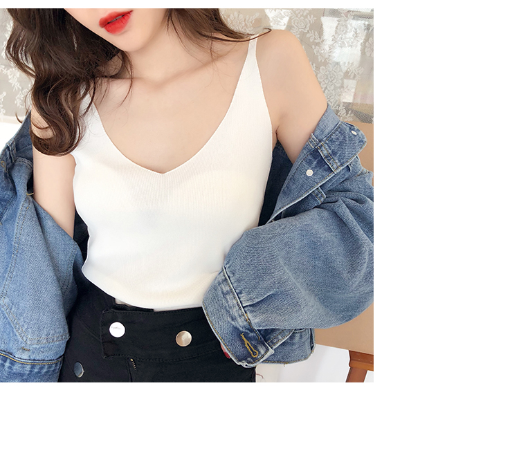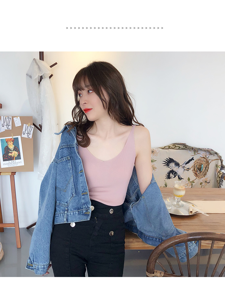2019新款港味小清新吊帶女內搭冰絲針織小背心外穿無袖打底上衣夏1入