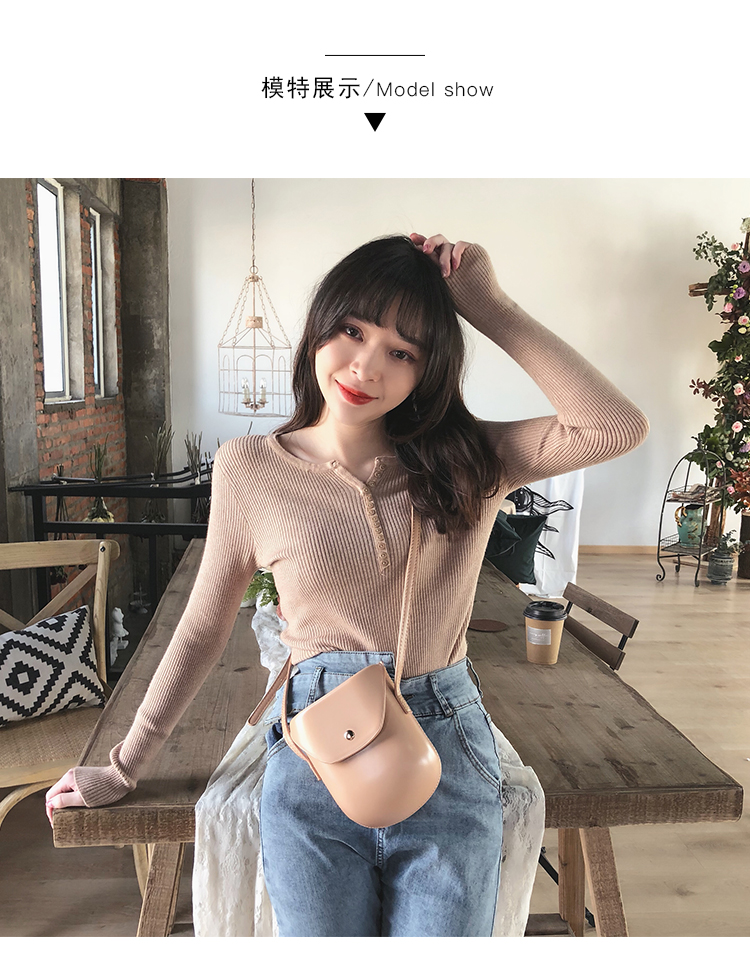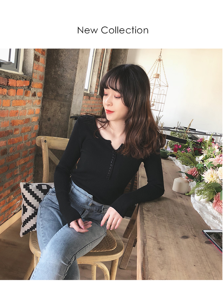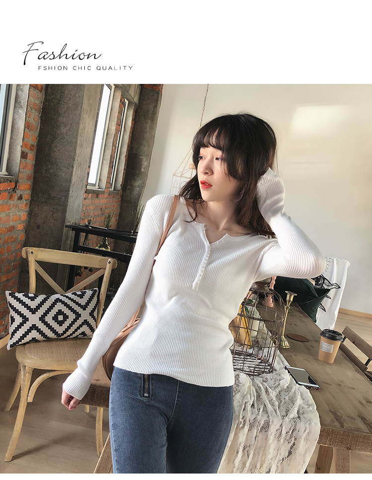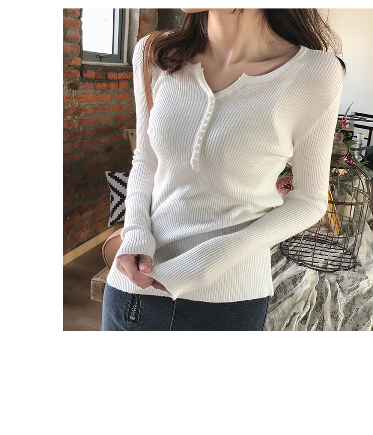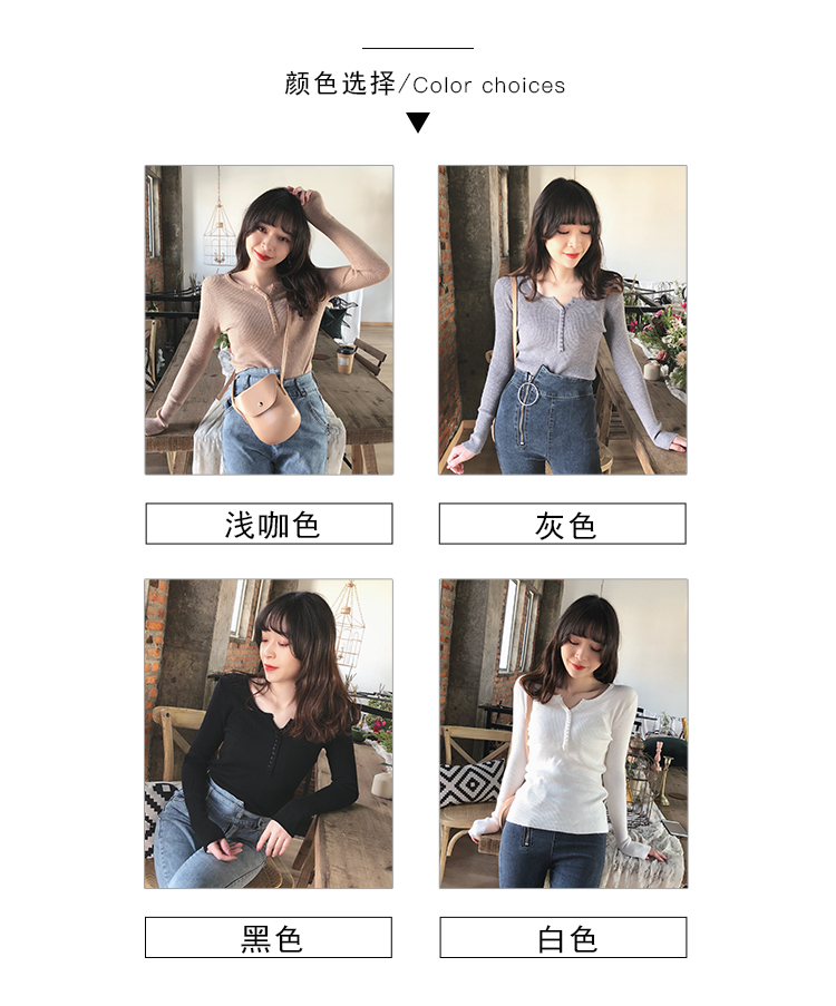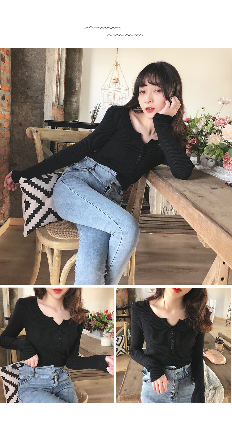 2019春裝新款v領毛衣女網紅超火黑白色薄款打底衫修身短款1入