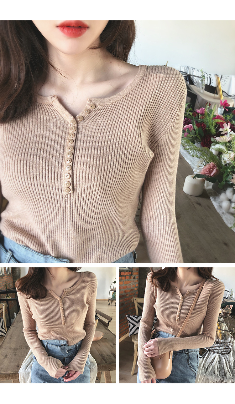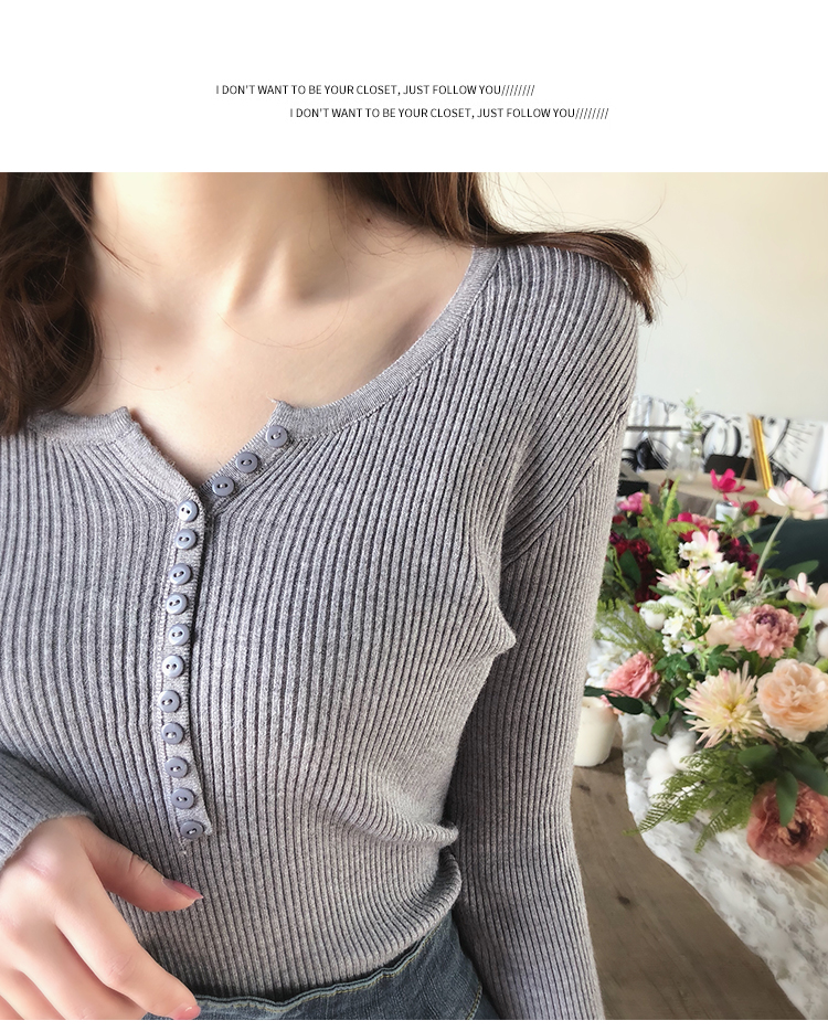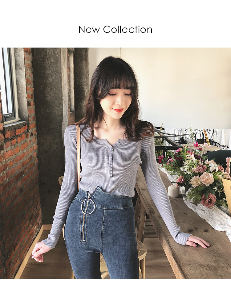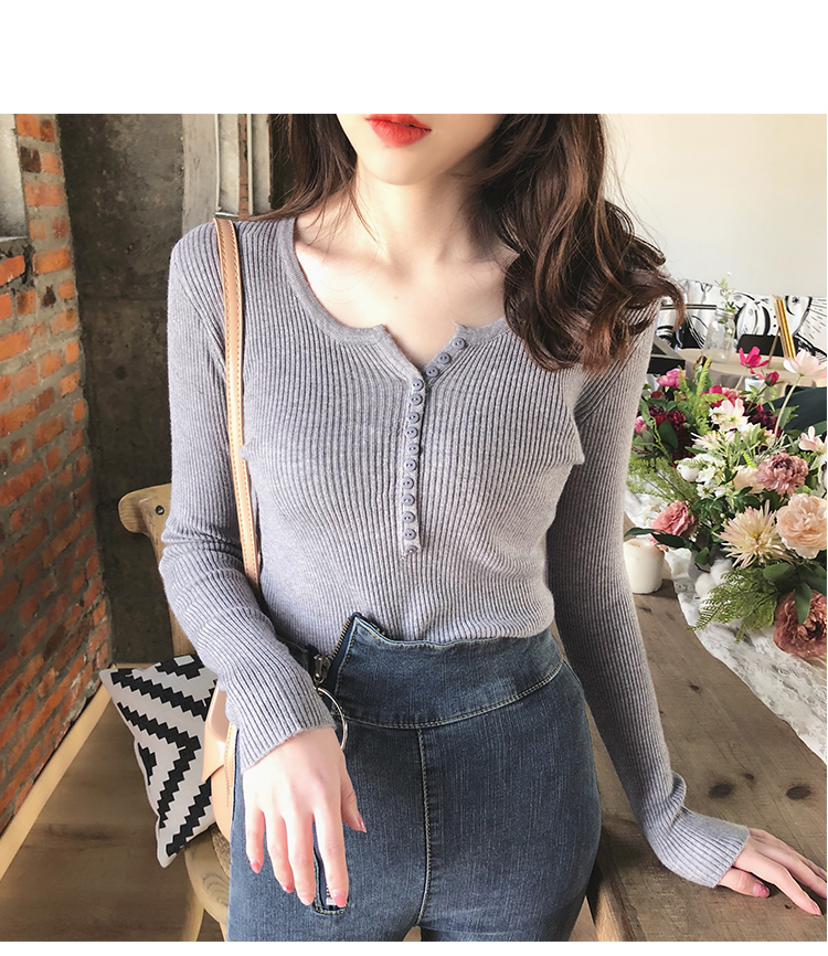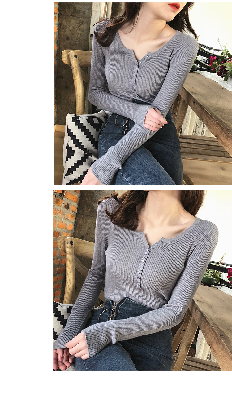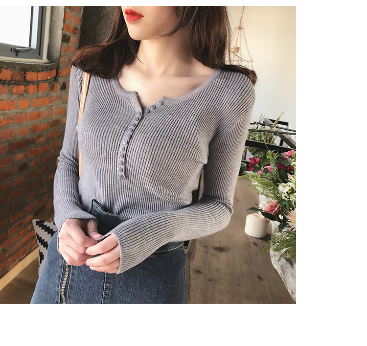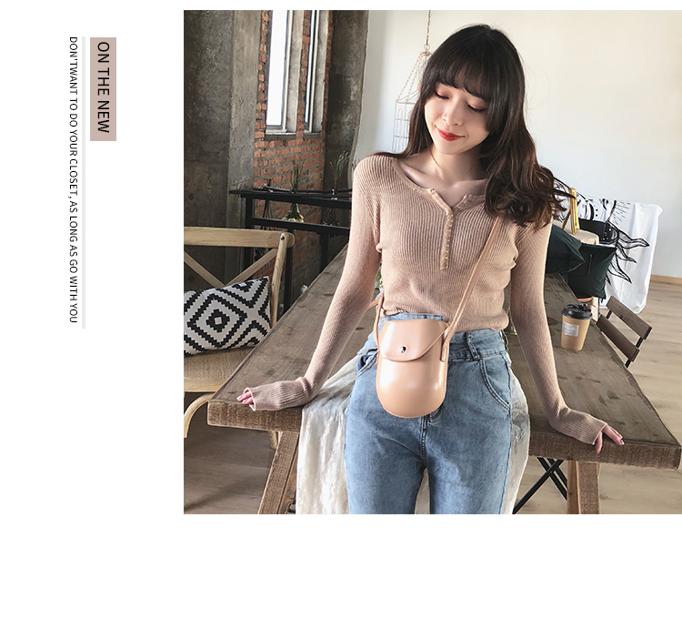 2019春裝新款v領毛衣女網紅超火黑白色薄款打底衫修身短款1入