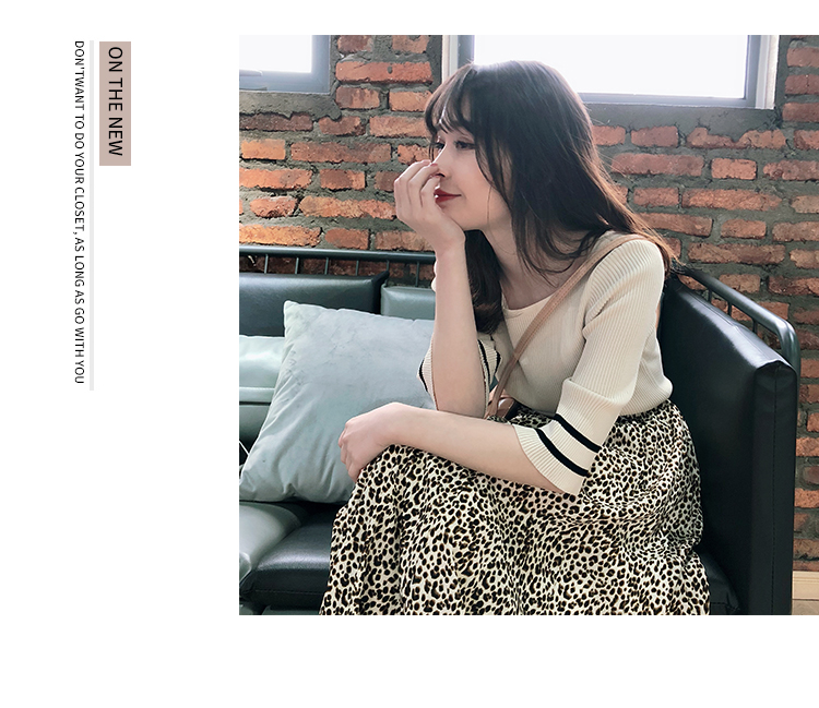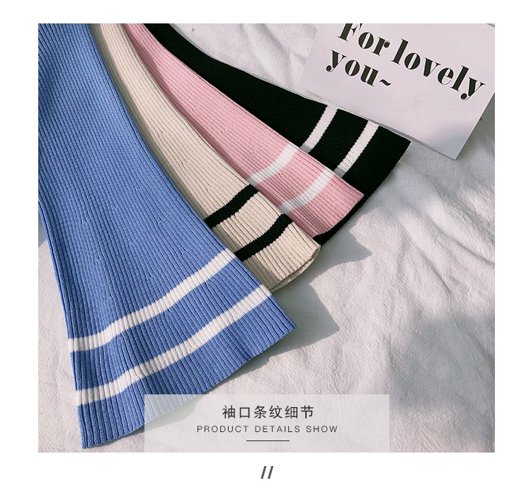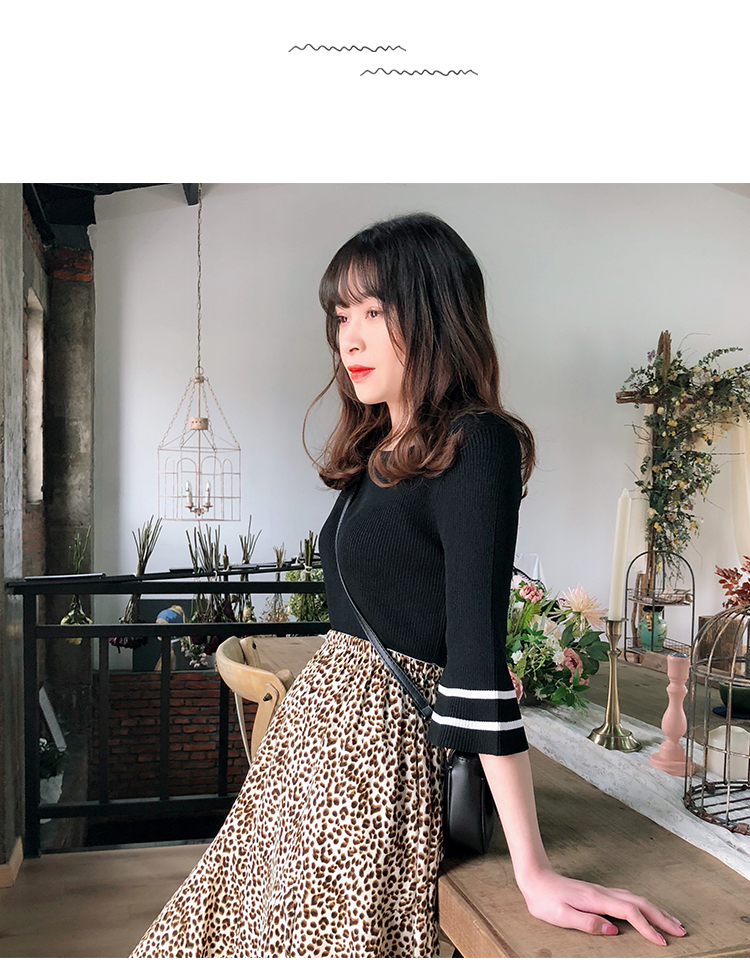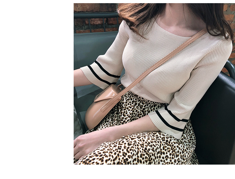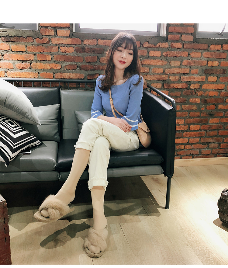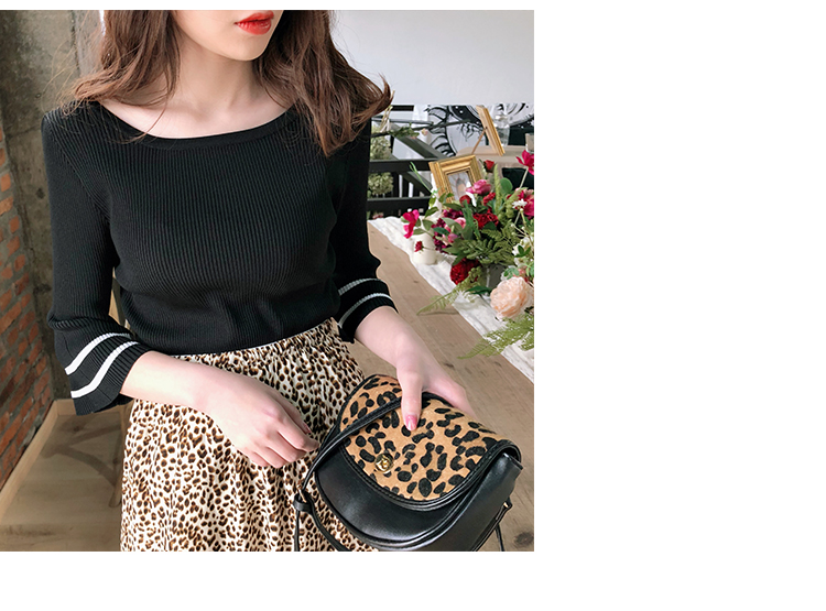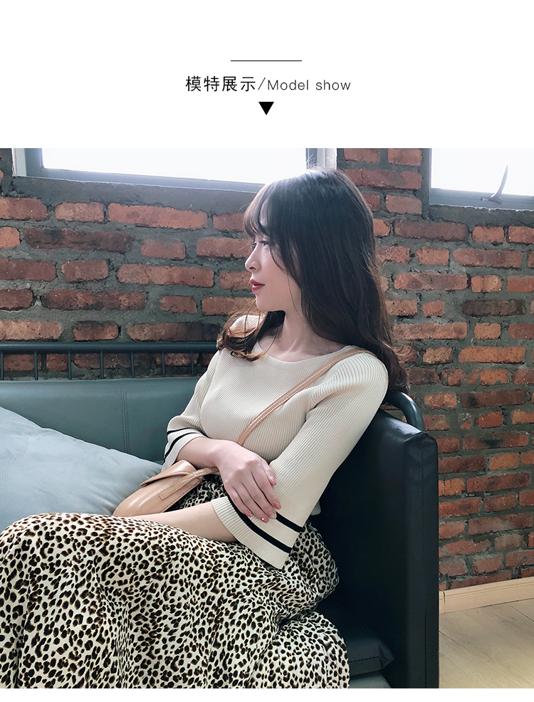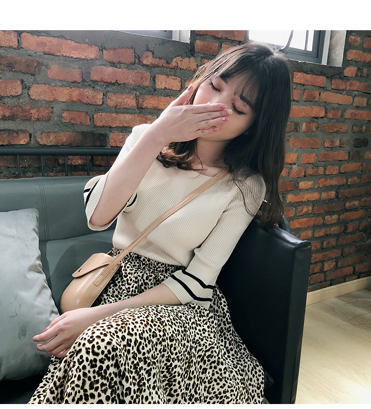 2019春裝新款一字領冰絲針織打底衫女修身內搭喇叭袖上衣短袖T恤1入
