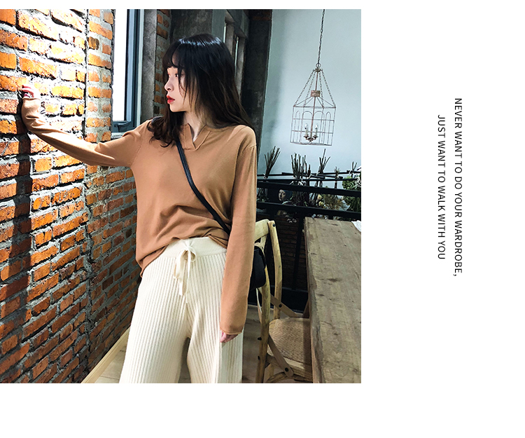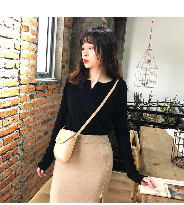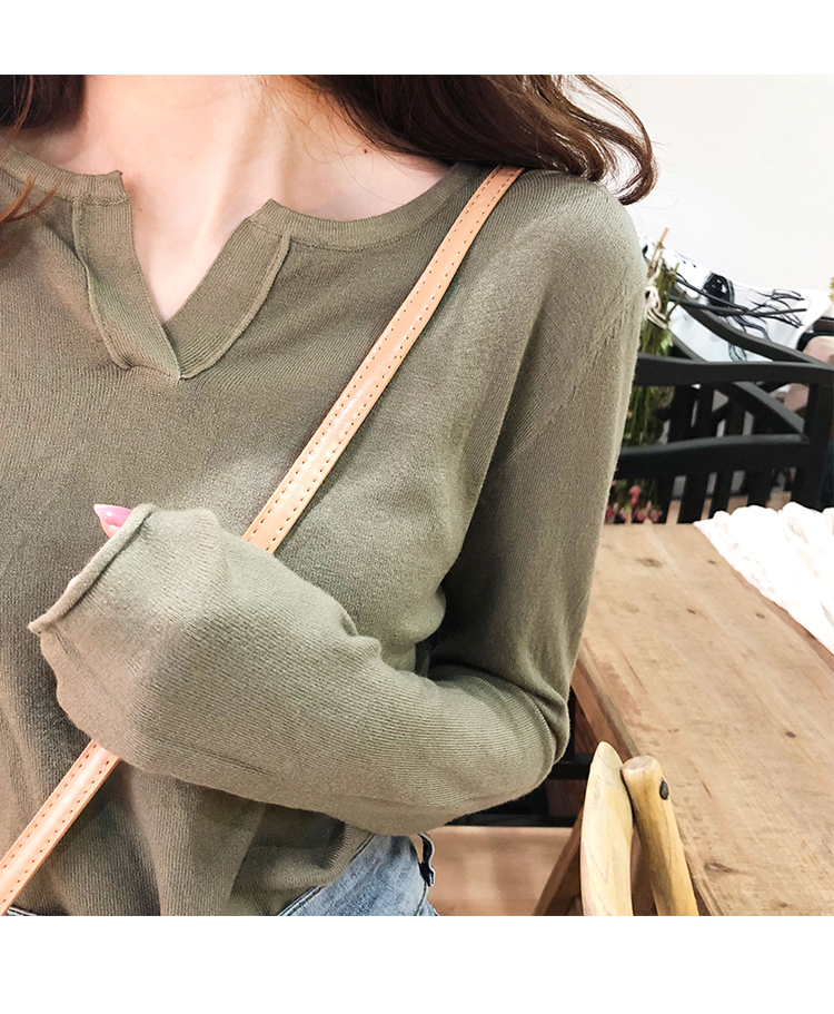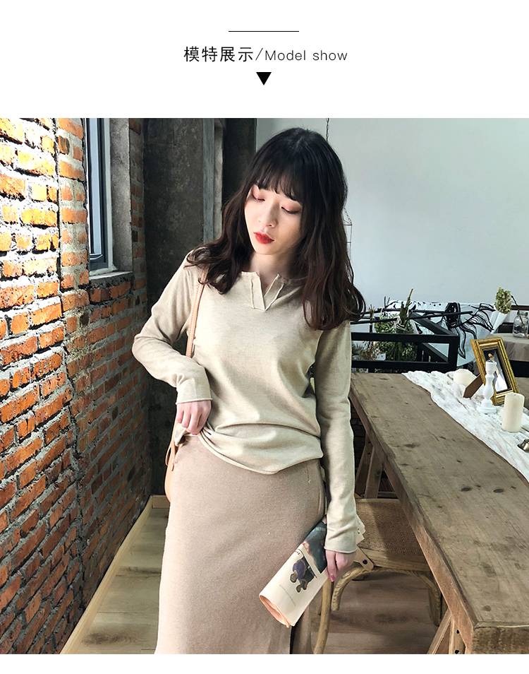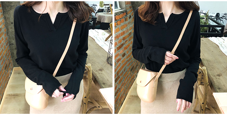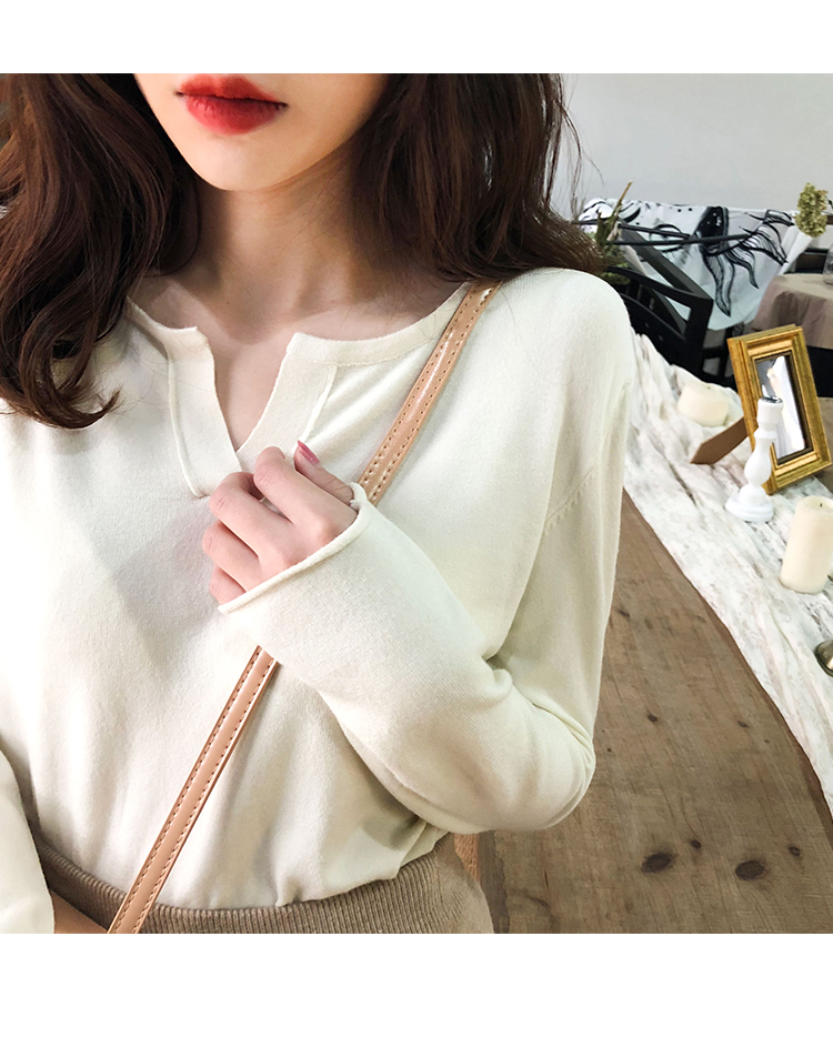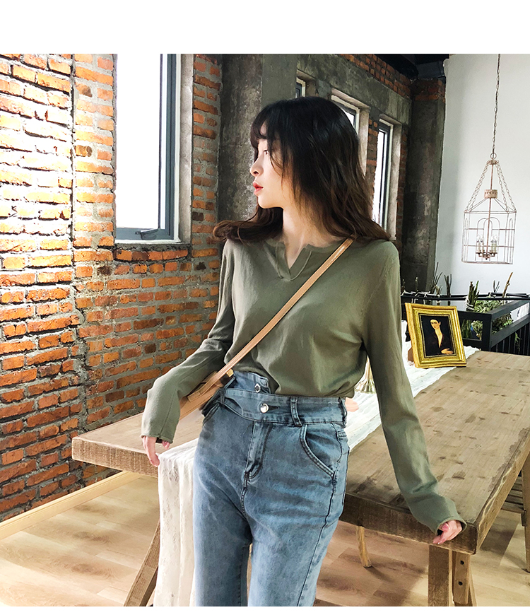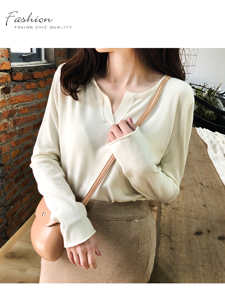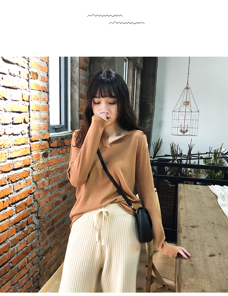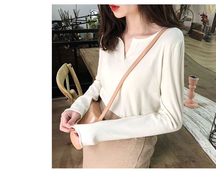 2019秋冬新款寬松外穿V領毛衣女純色韓版薄款針織打底衫內搭上衣1入