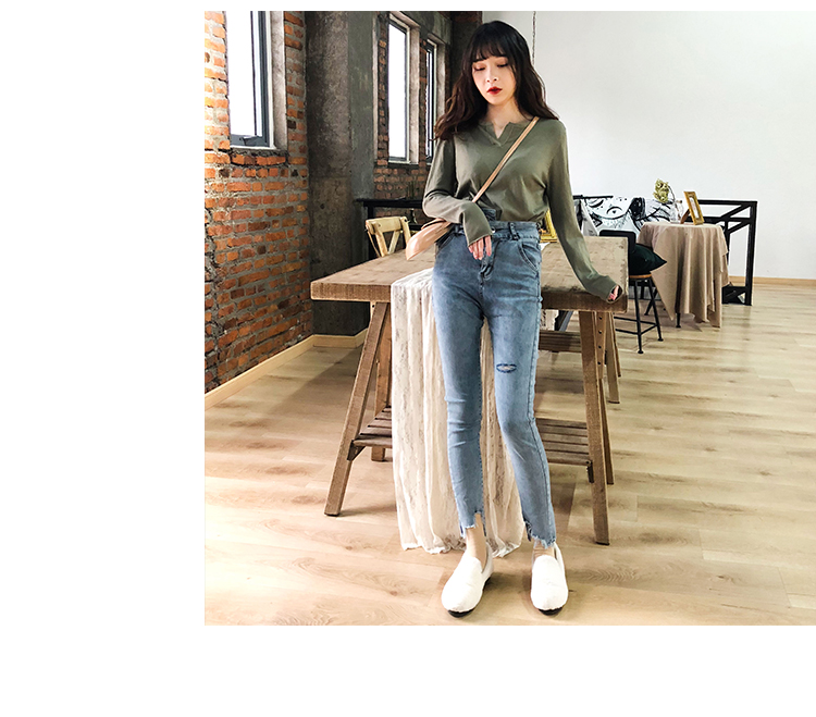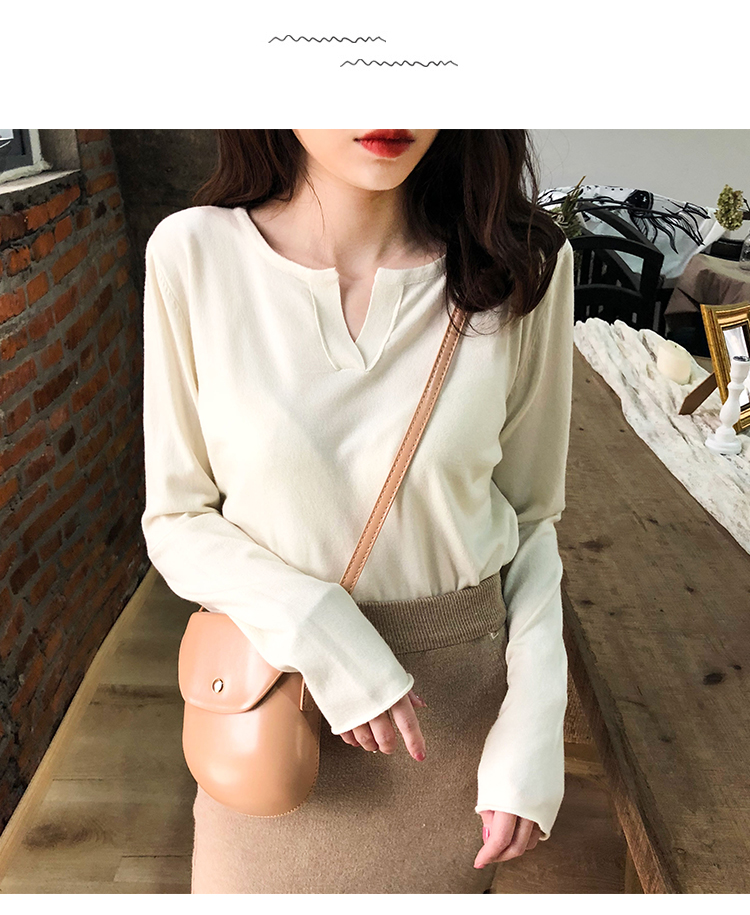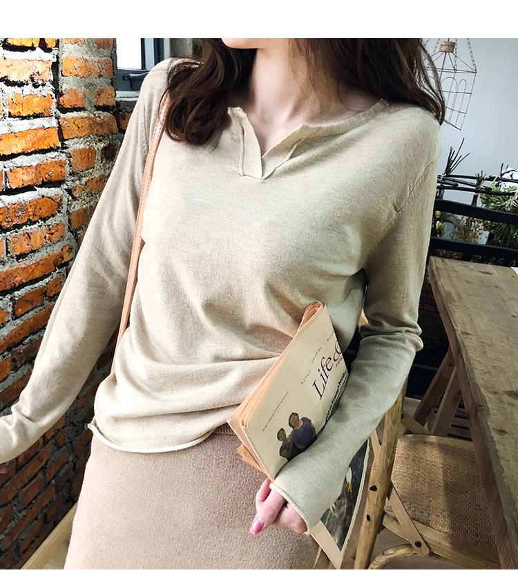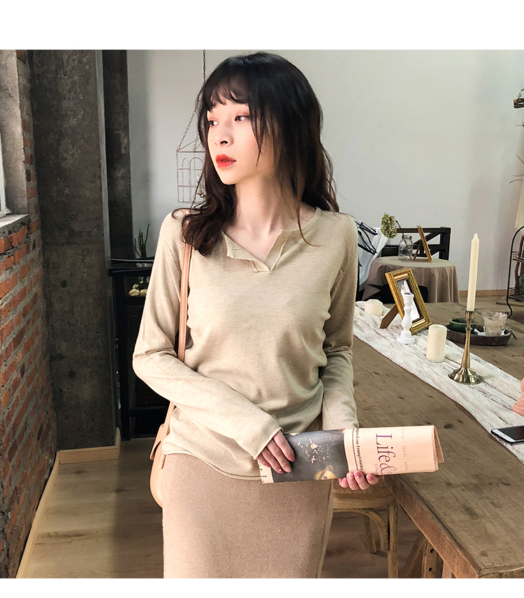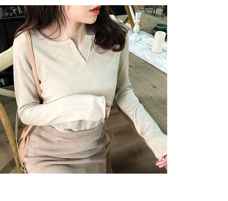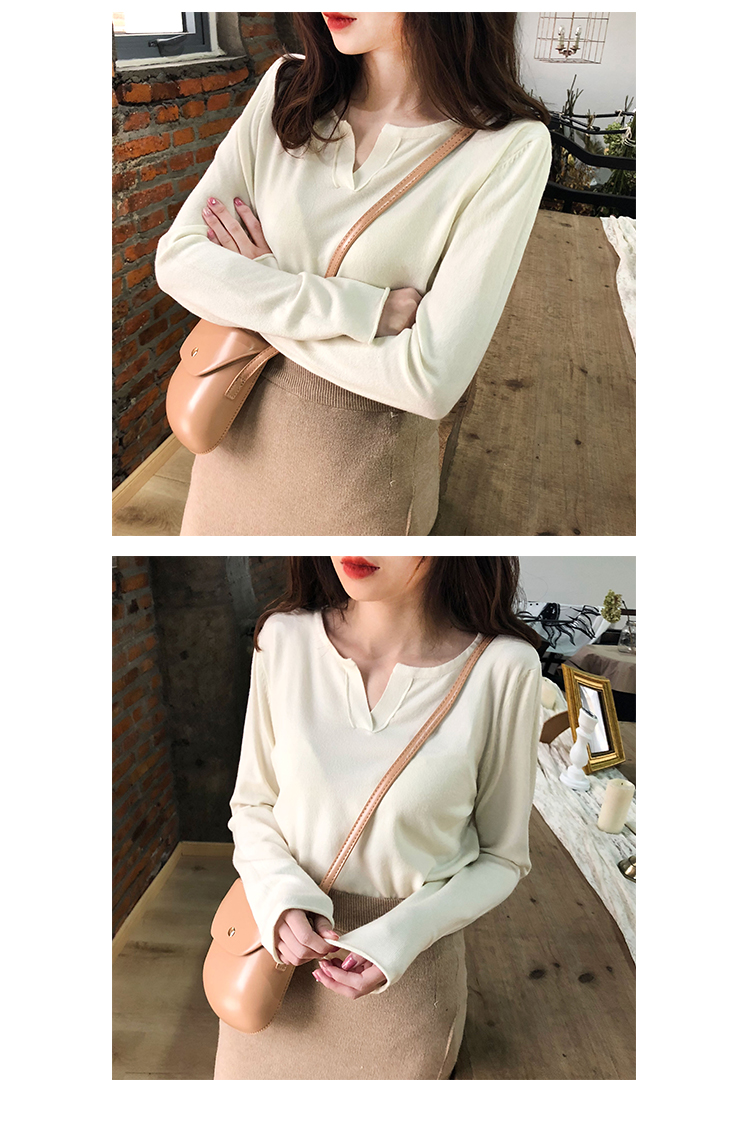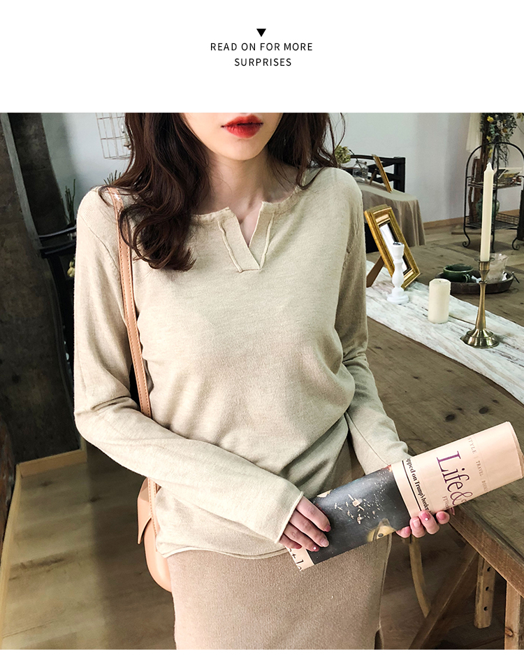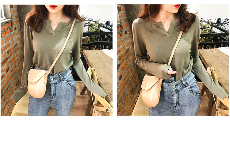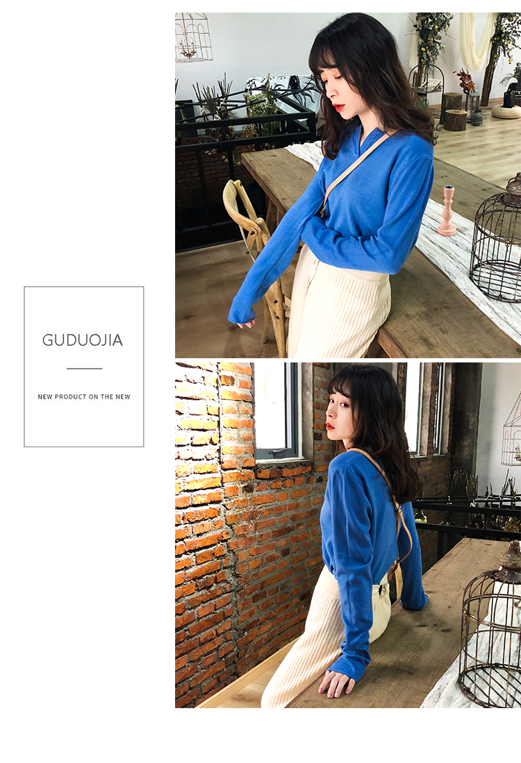2019秋冬新款寬松外穿V領毛衣女純色韓版薄款針織打底衫內搭上衣1入