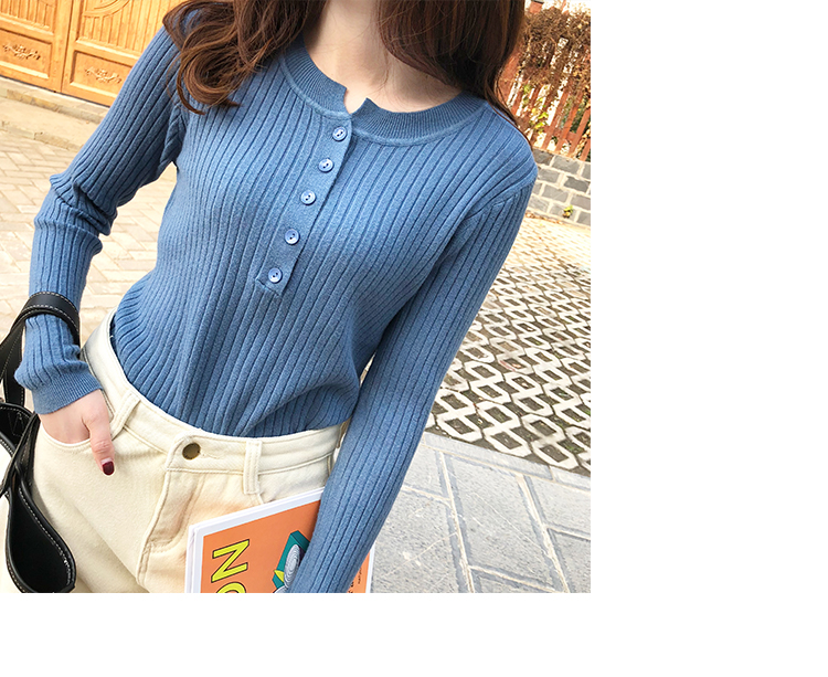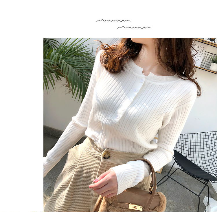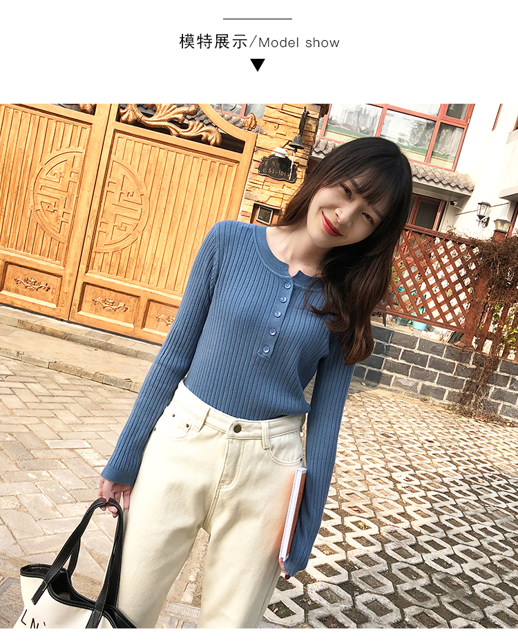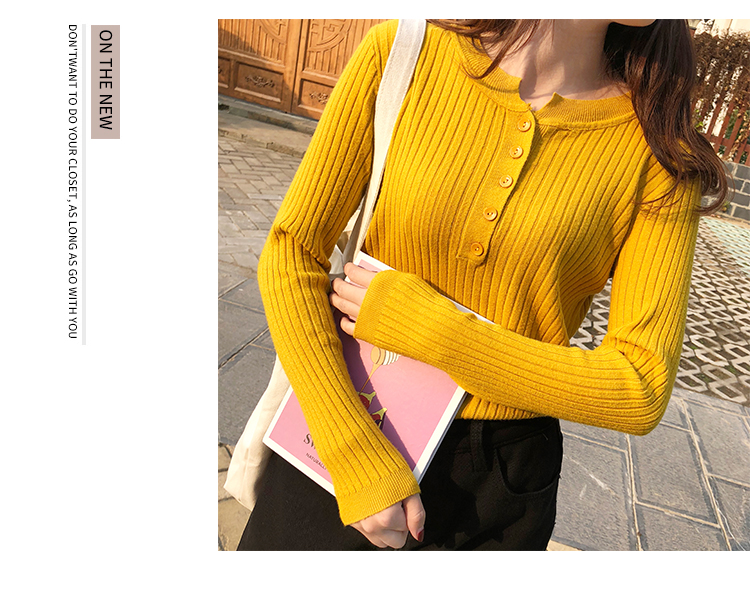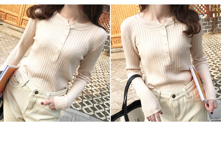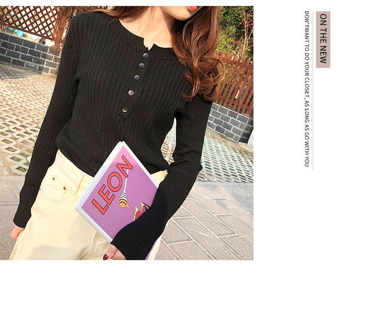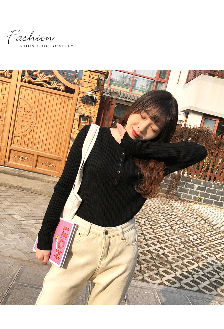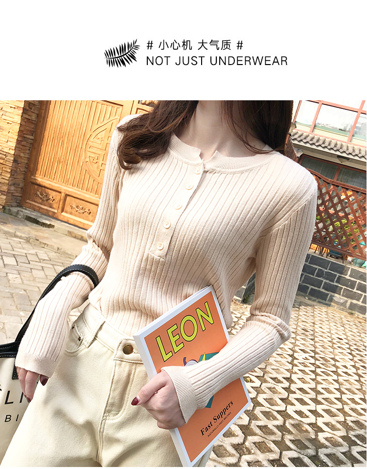 2019秋冬新款低圓領漏鎖骨針織衫女修身短款打底毛衣內搭上衣薄款1入