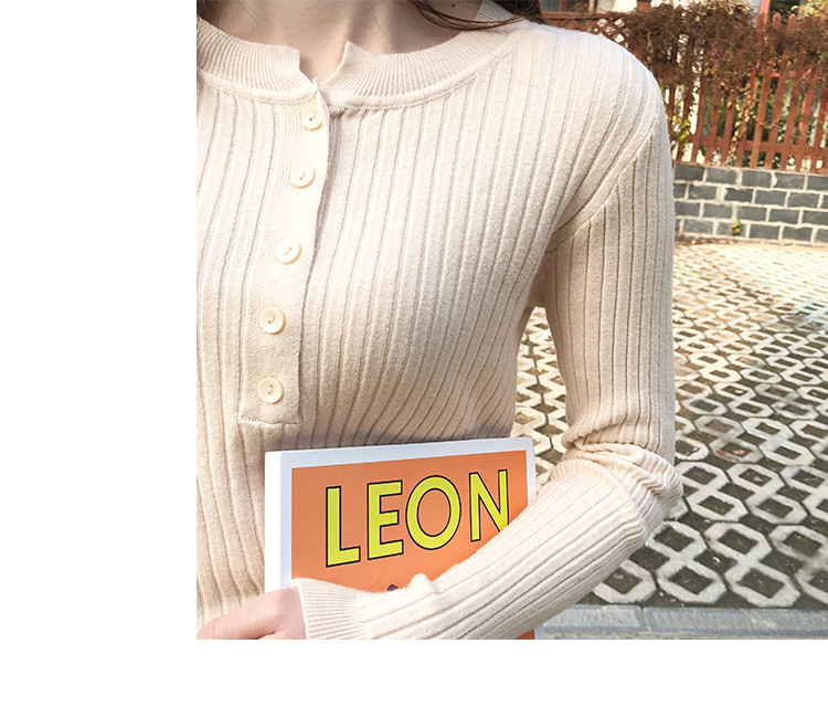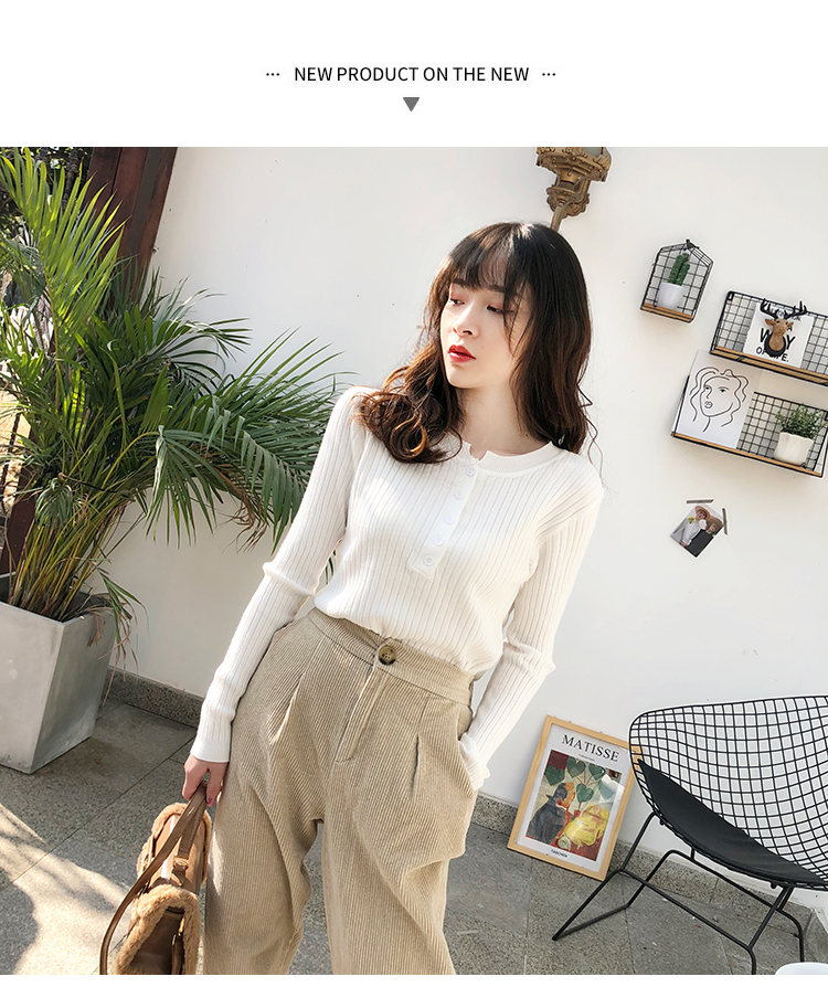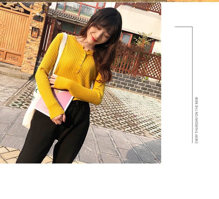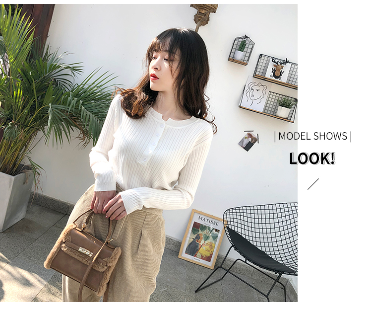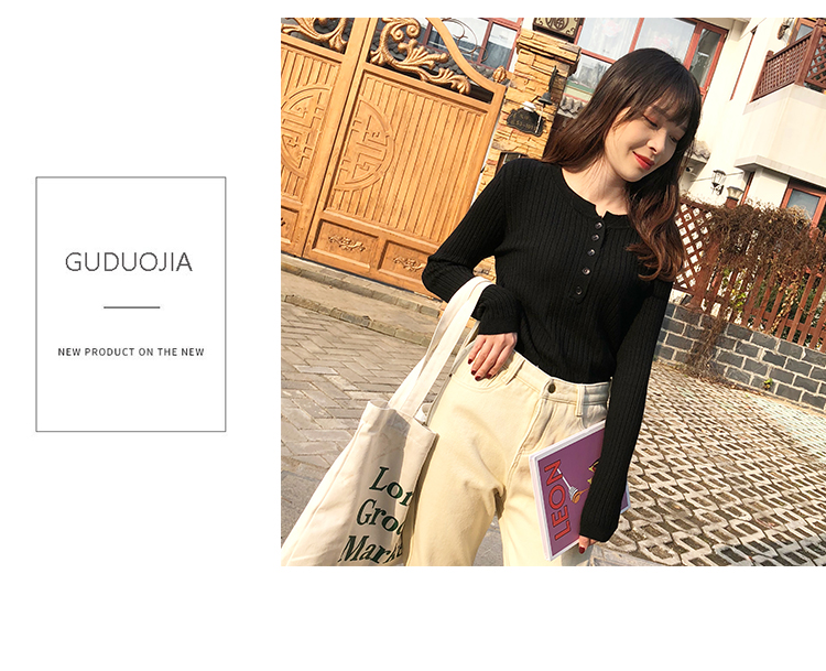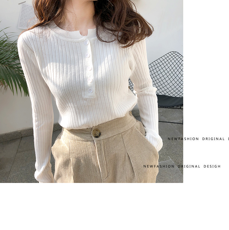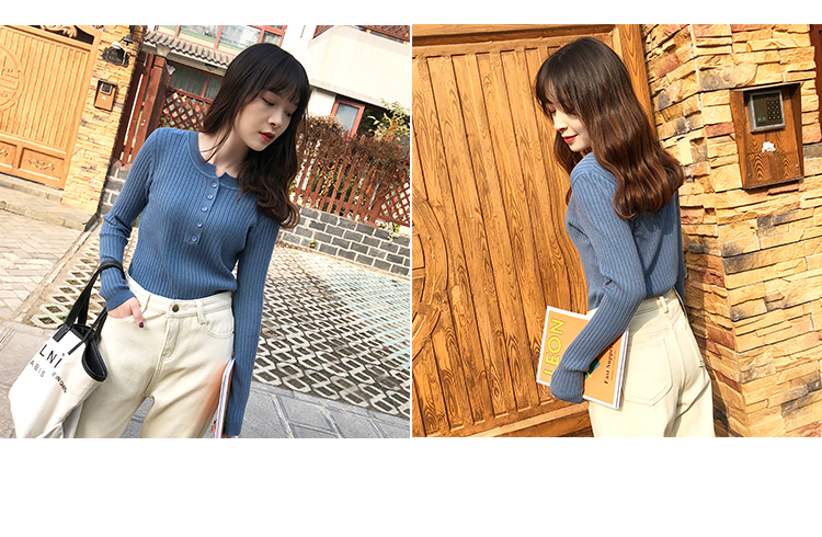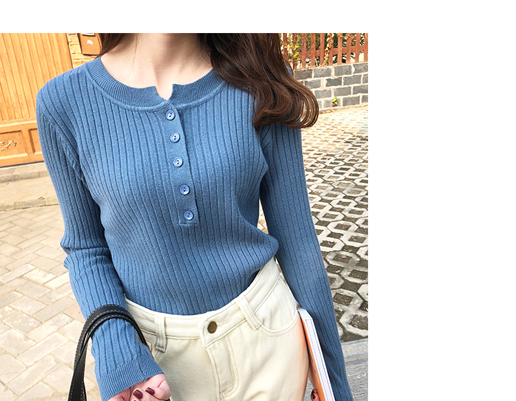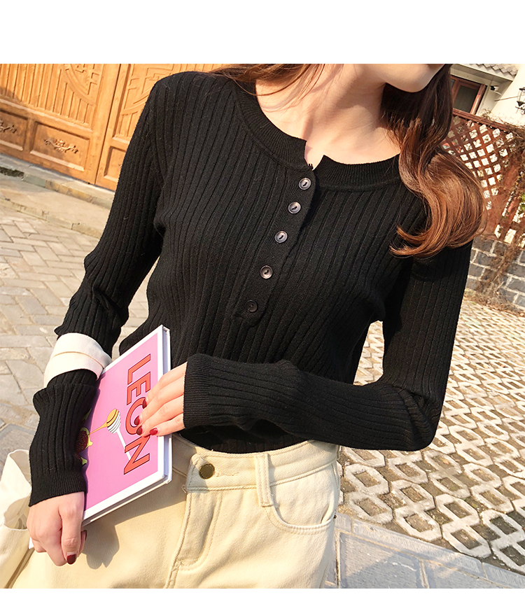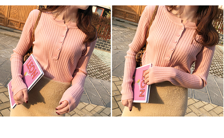 2019秋冬新款低圓領漏鎖骨針織衫女修身短款打底毛衣內搭上衣薄款1入
