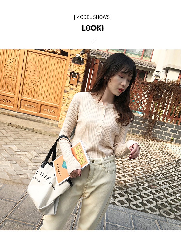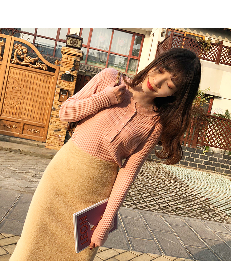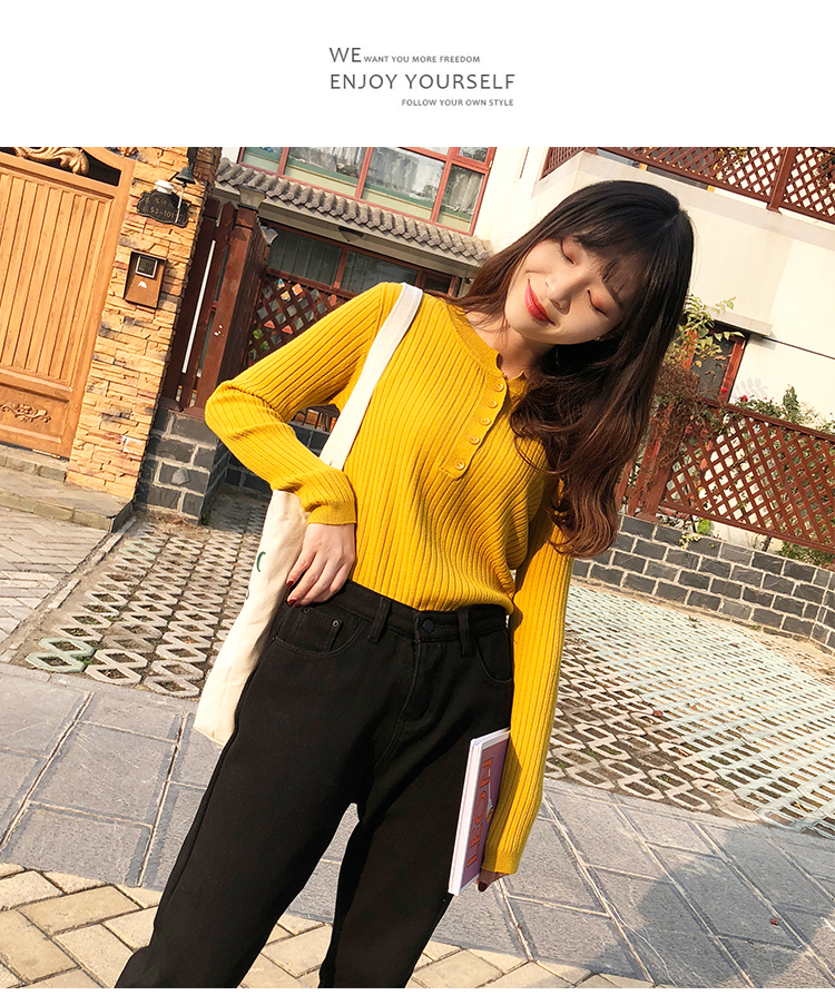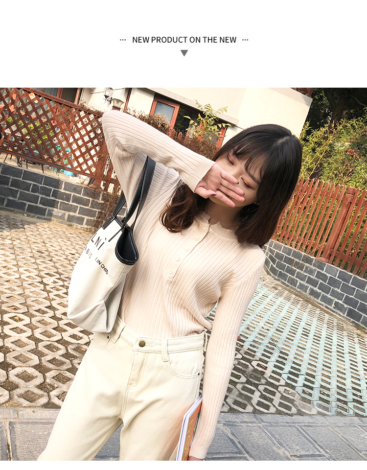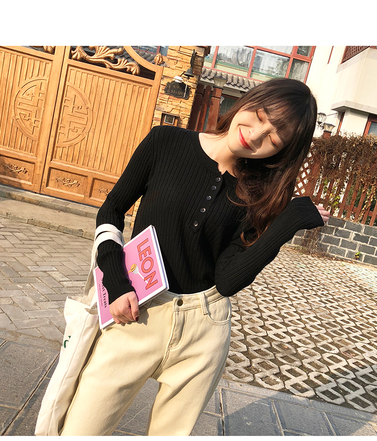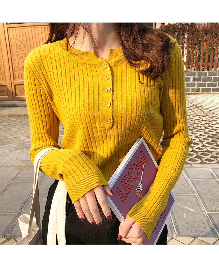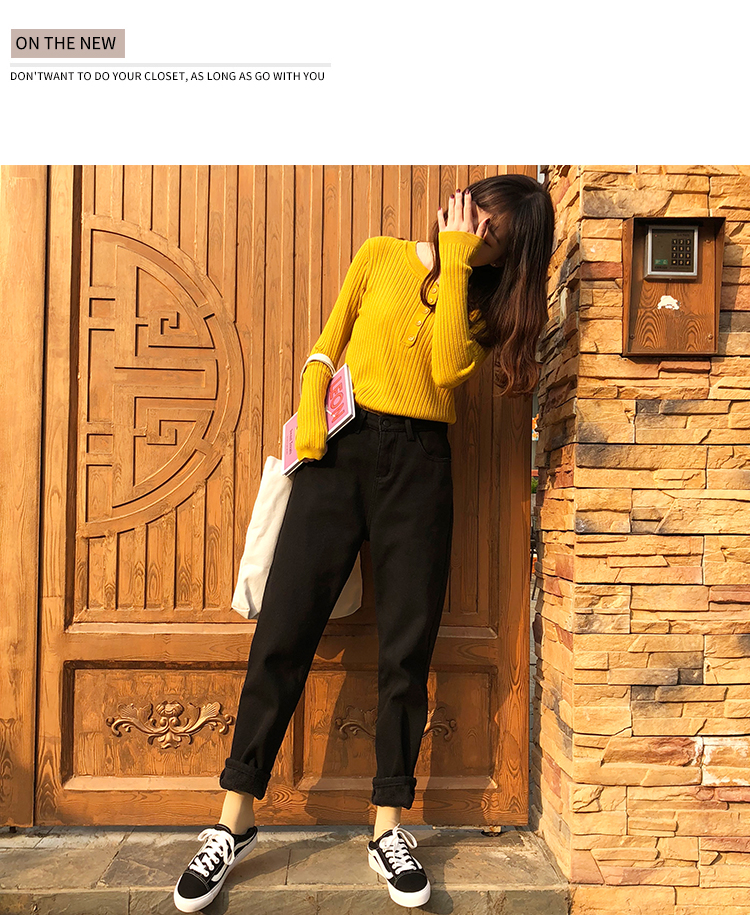 2019秋冬新款低圓領漏鎖骨針織衫女修身短款打底毛衣內搭上衣薄款1入