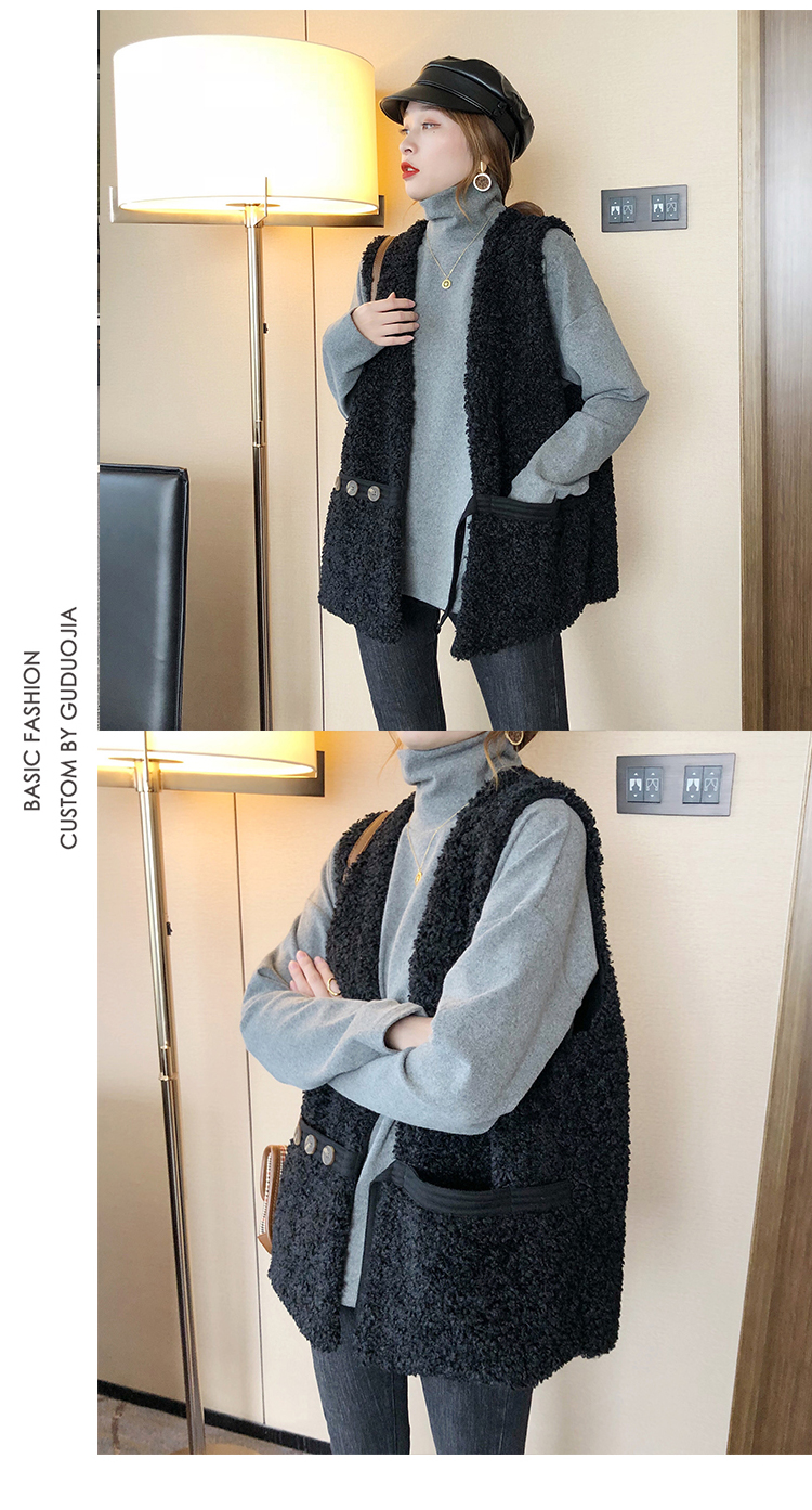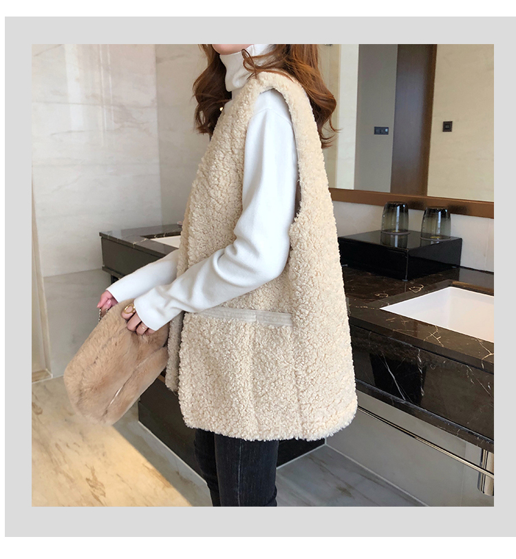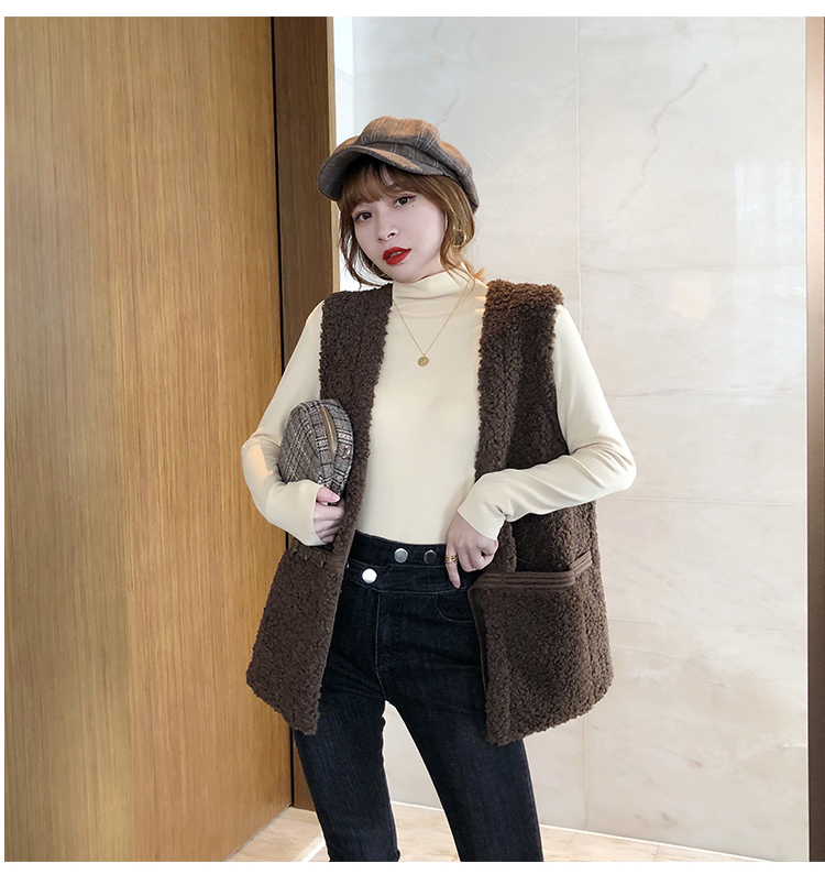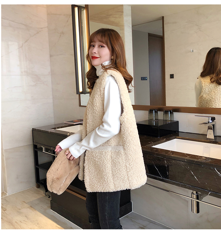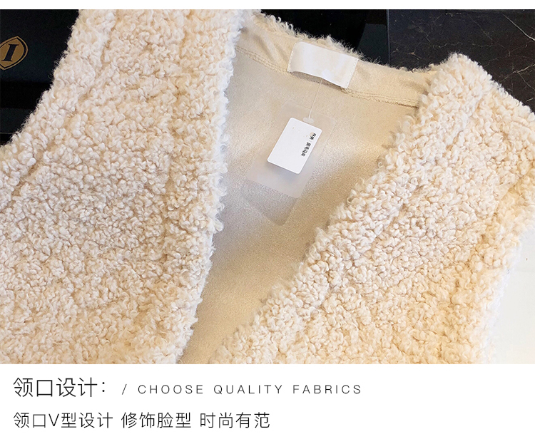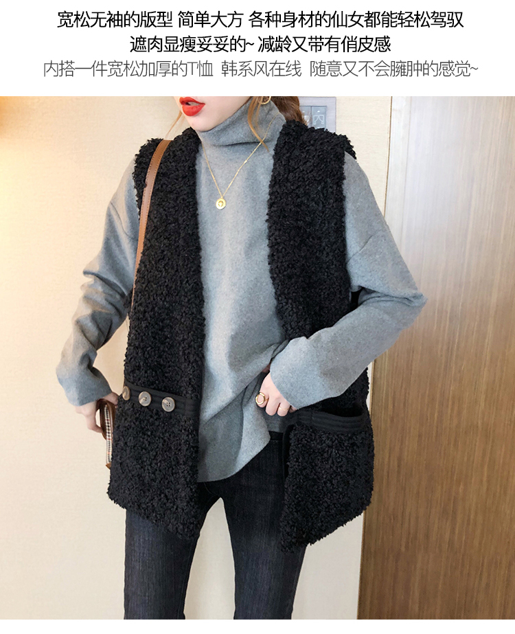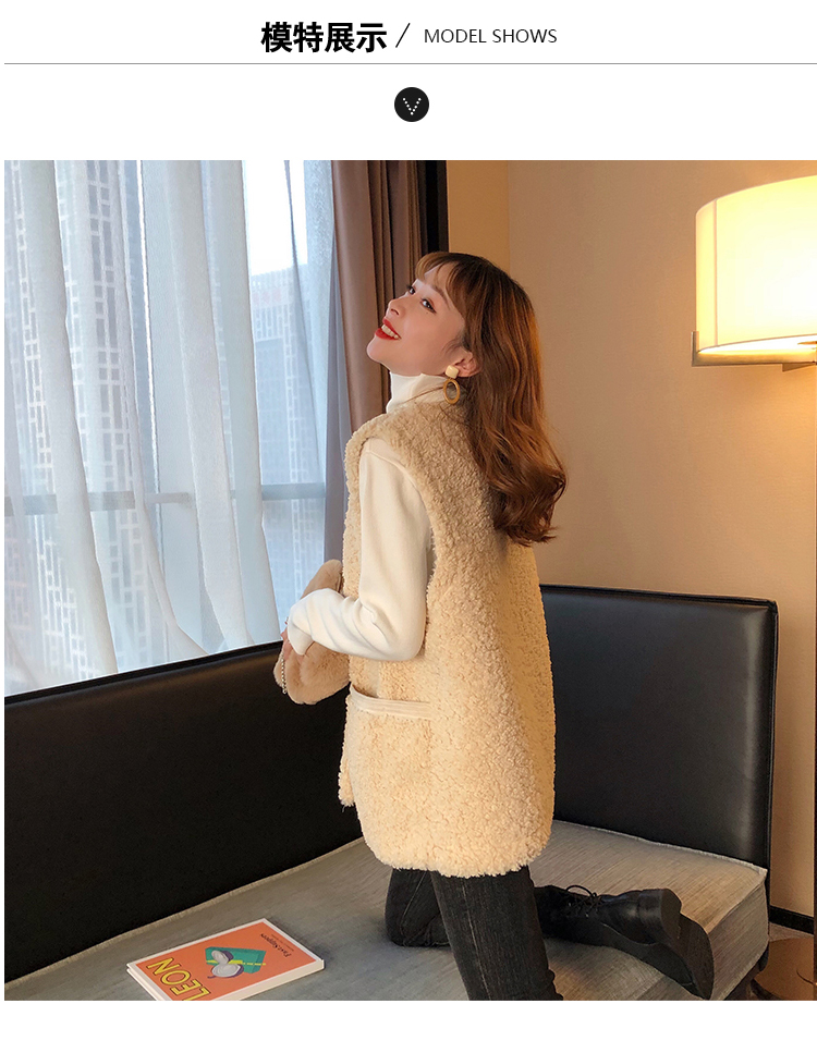 2019秋冬新款羊羔毛馬甲女韓版V領寬松顯瘦馬夾皮毛一體加厚外套1入
