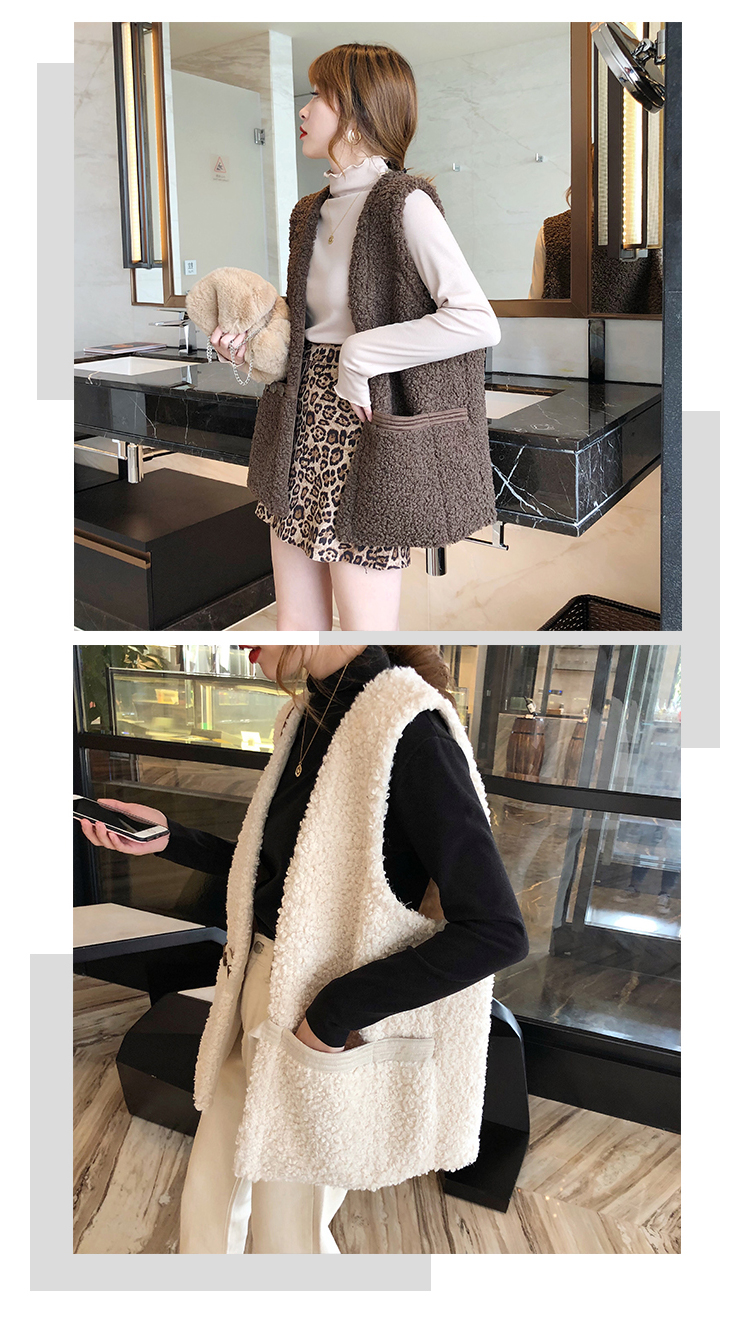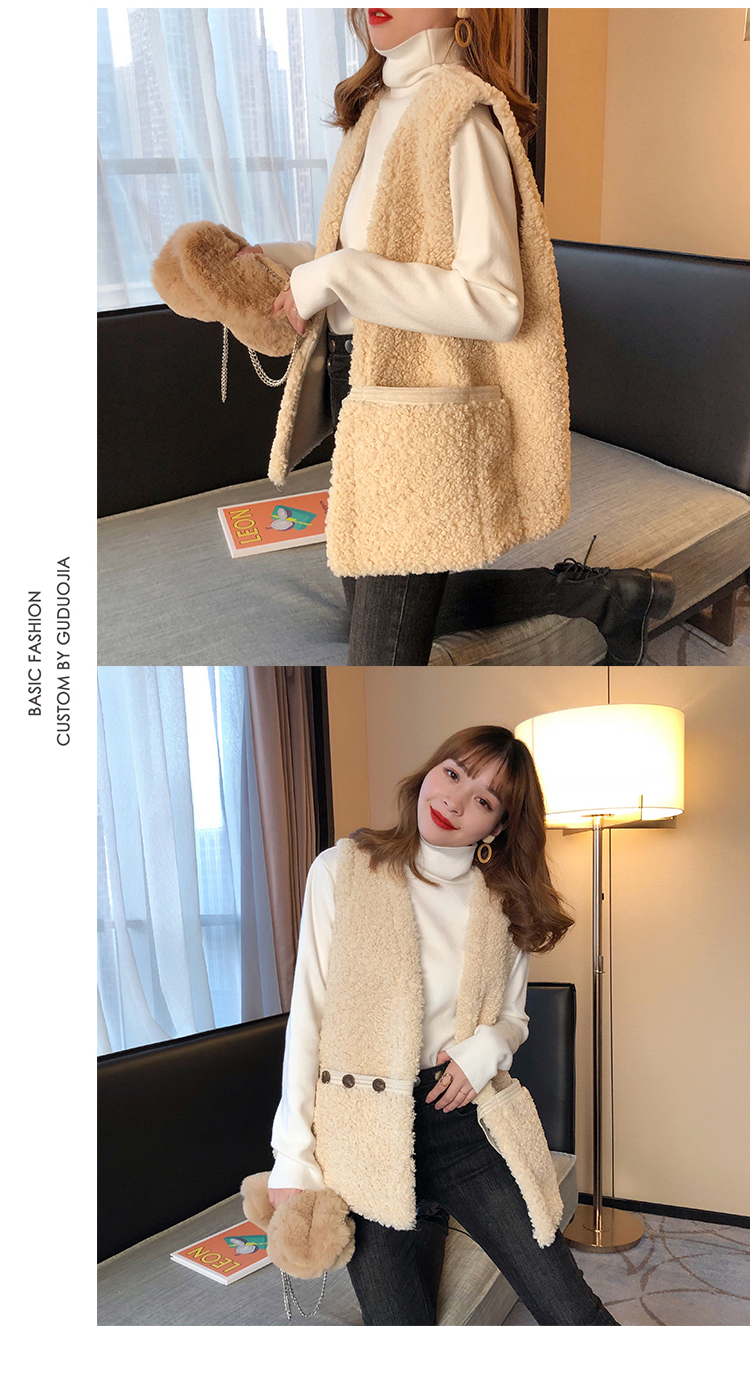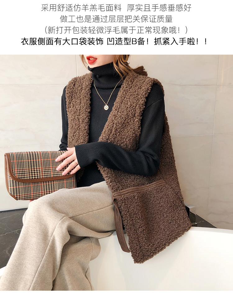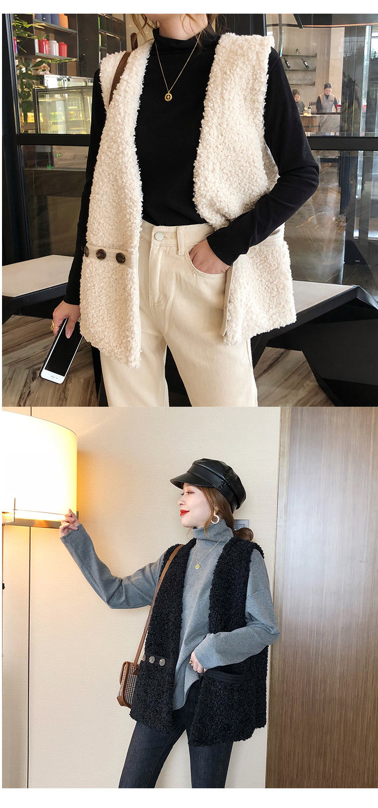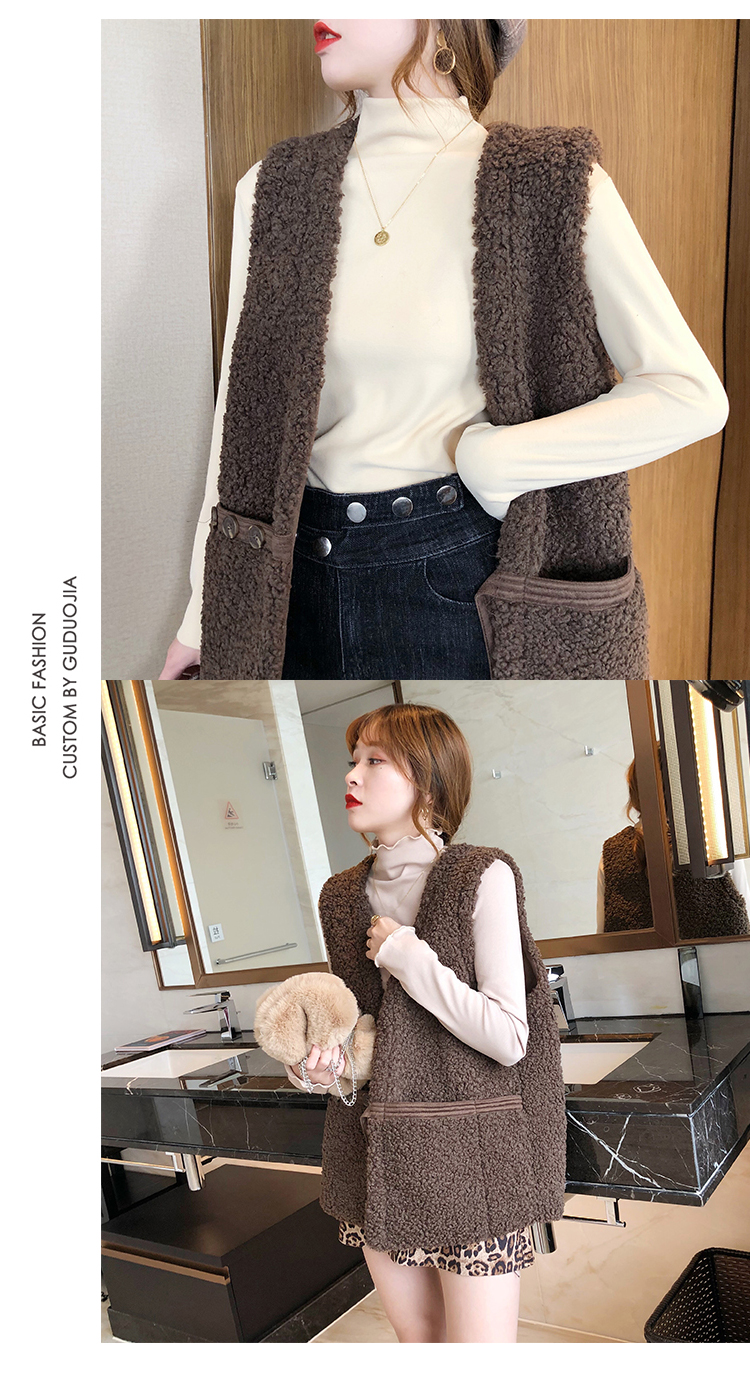 2019秋冬新款羊羔毛馬甲女韓版V領寬松顯瘦馬夾皮毛一體加厚外套1入