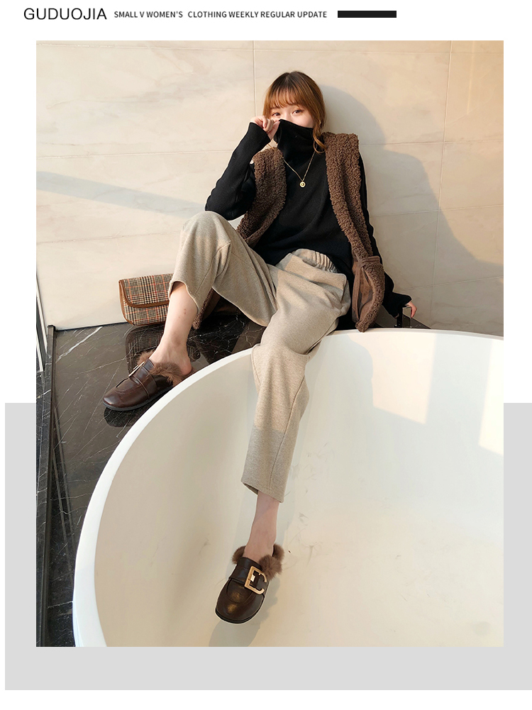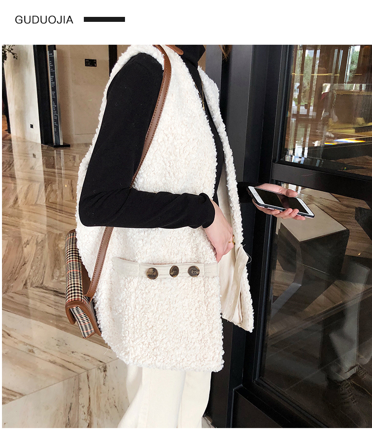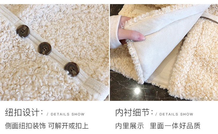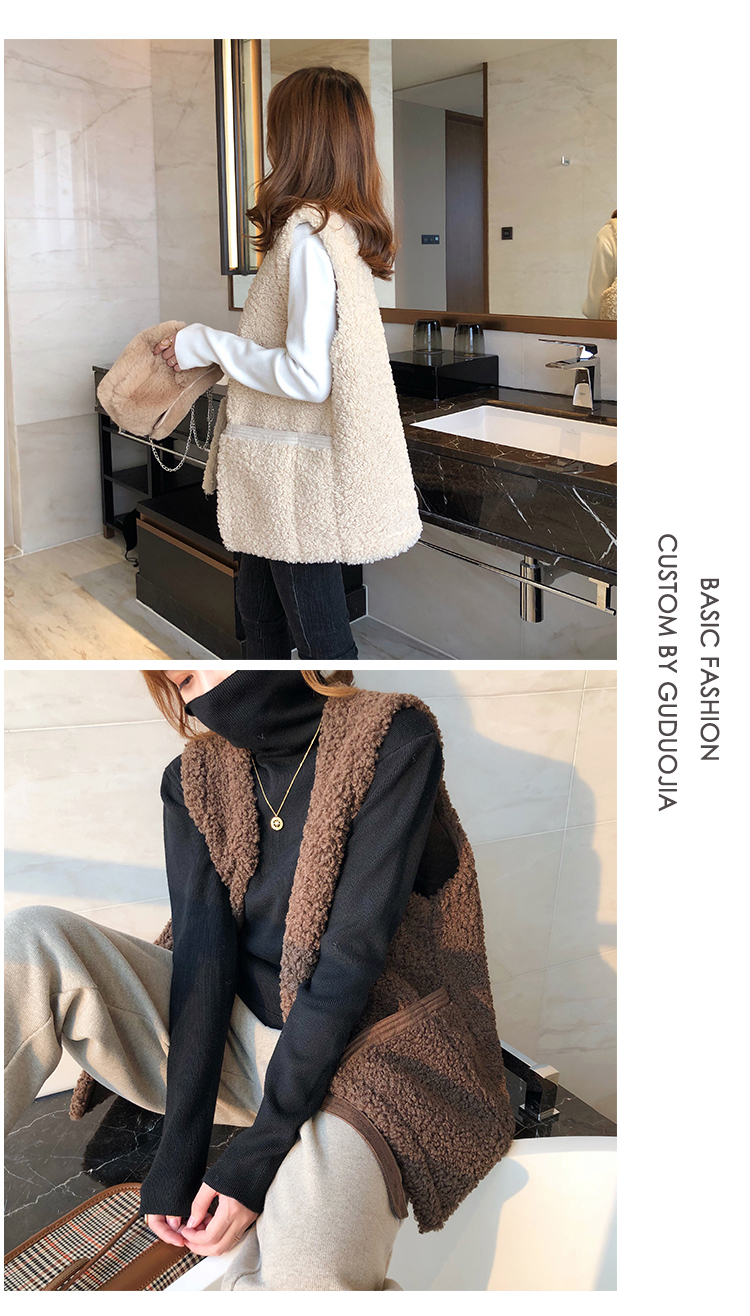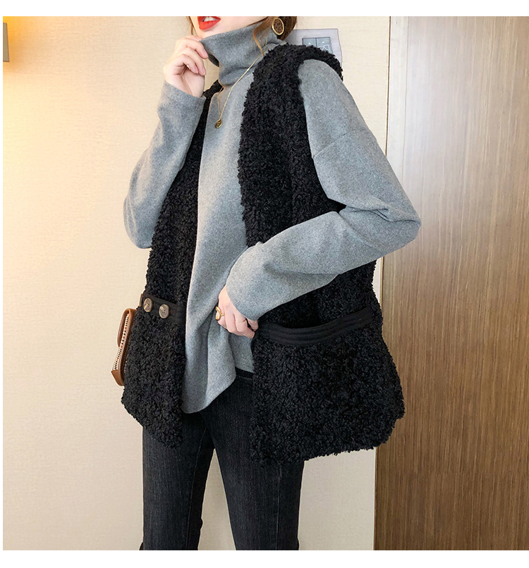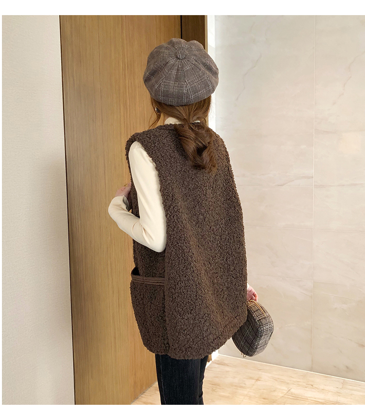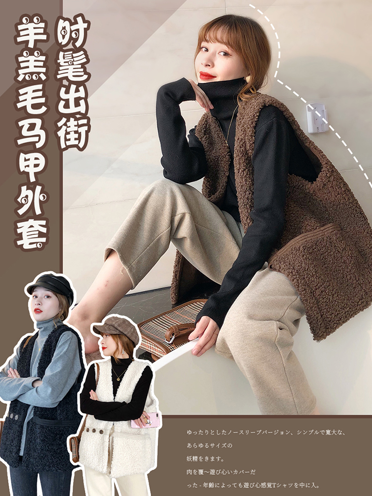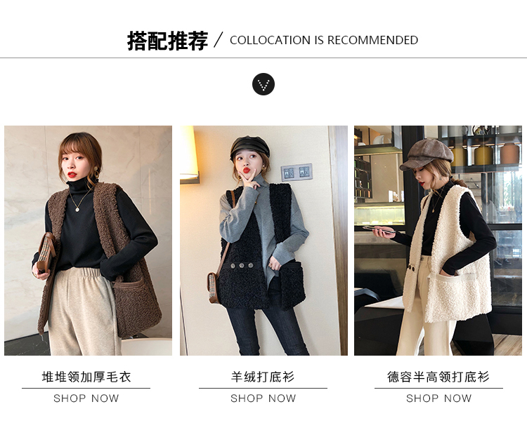 2019秋冬新款羊羔毛馬甲女韓版V領寬松顯瘦馬夾皮毛一體加厚外套1入