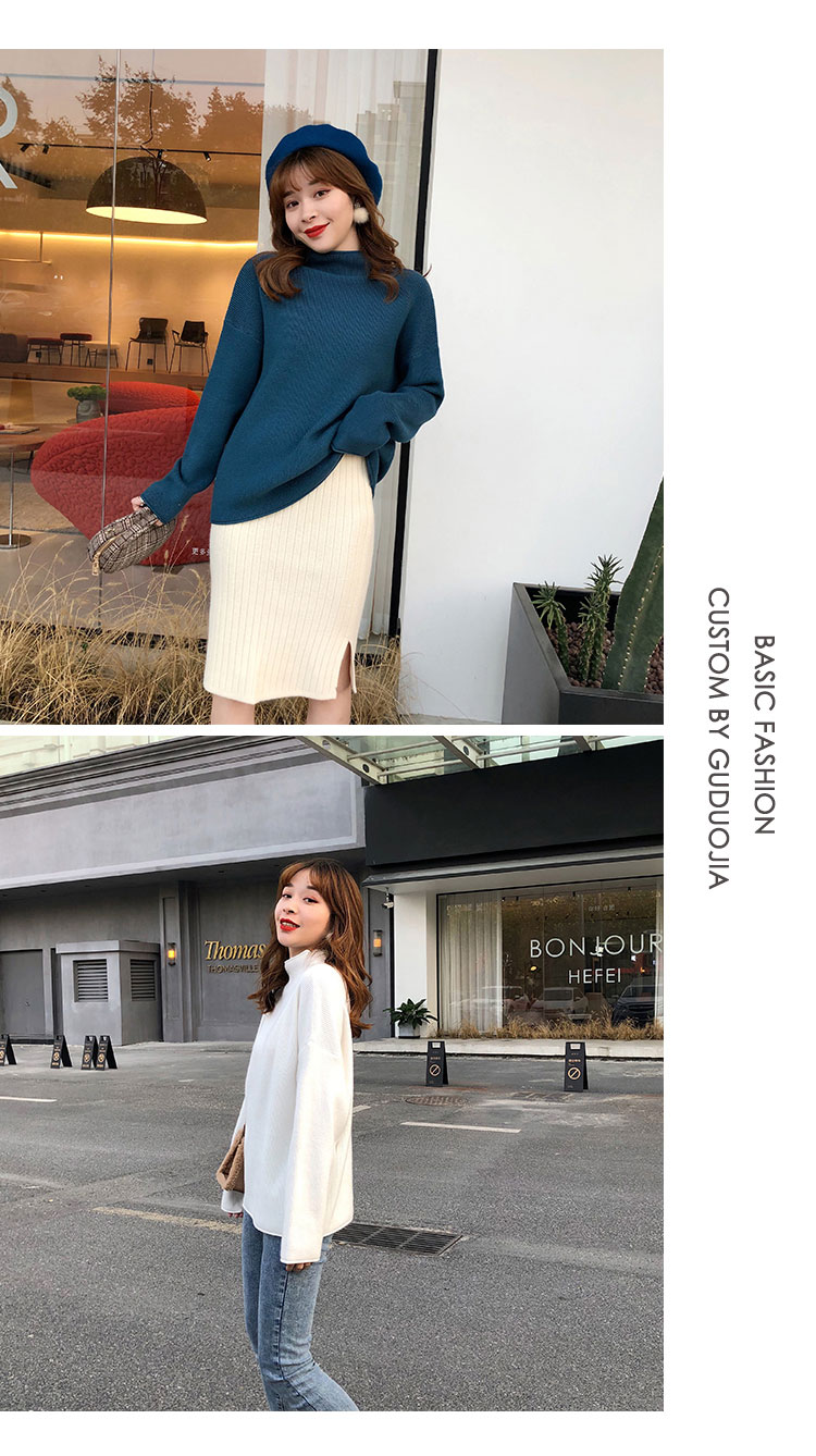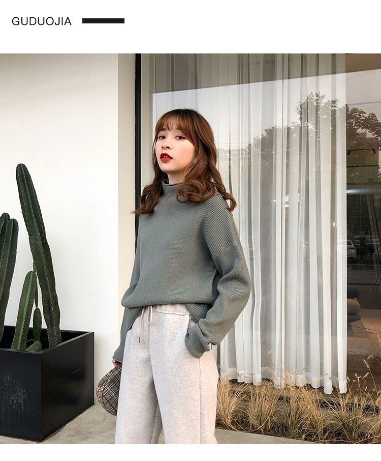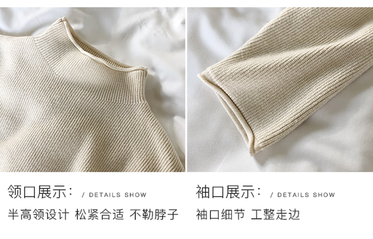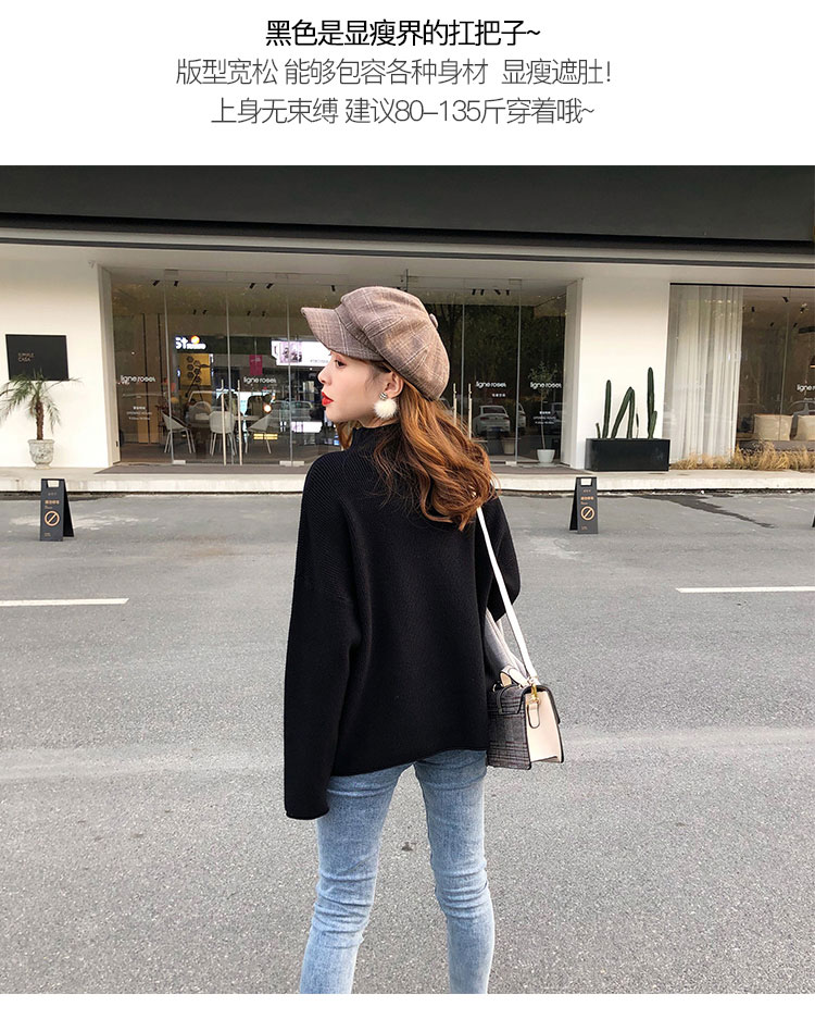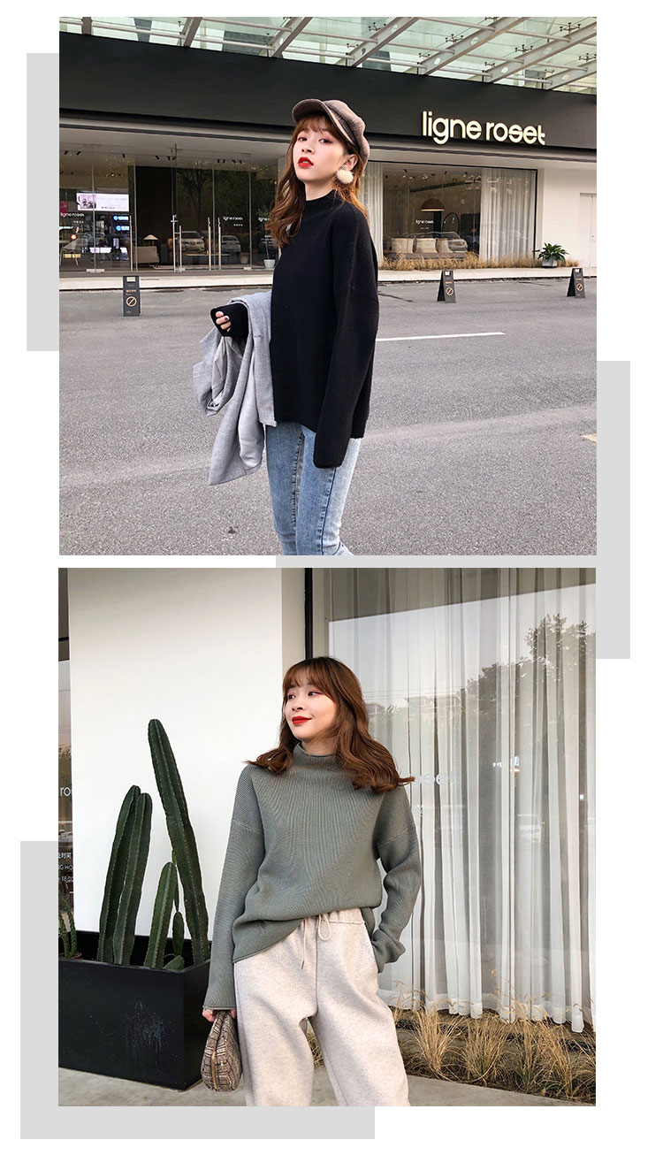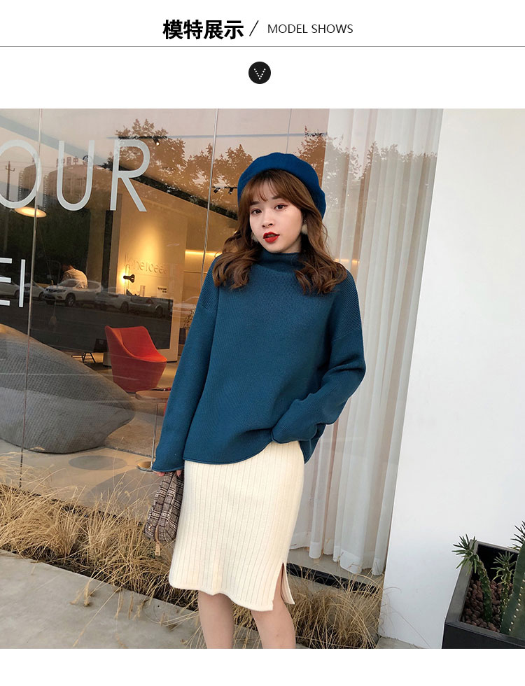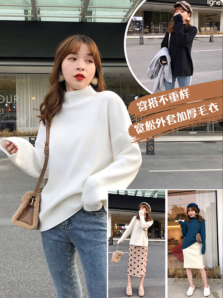 2019秋冬新款外穿寬松女士毛衣加厚半高領針織衫復古港味內搭上衣1入
