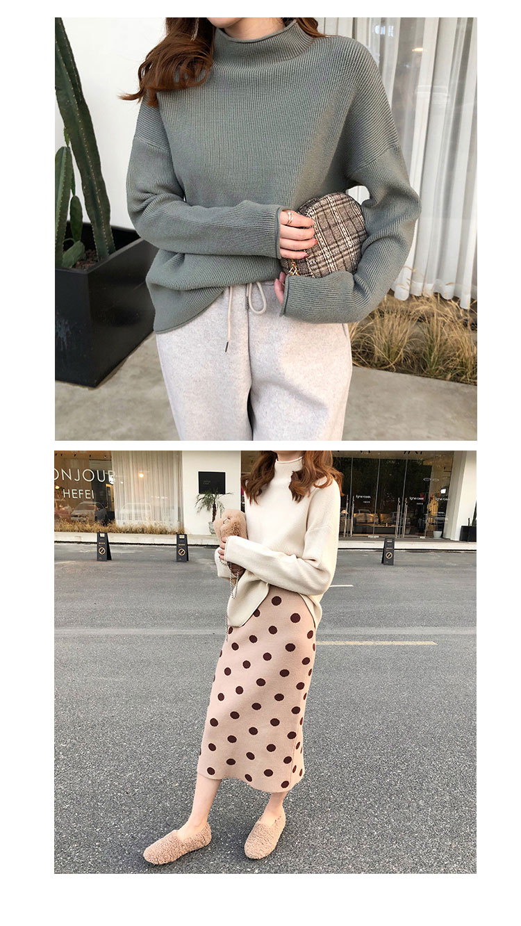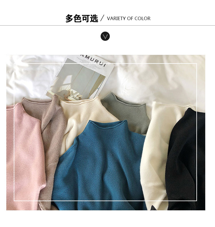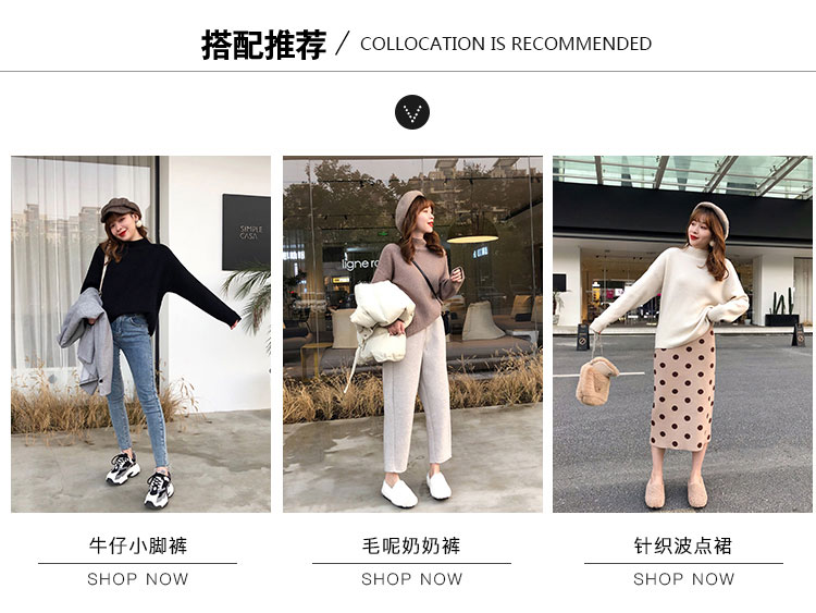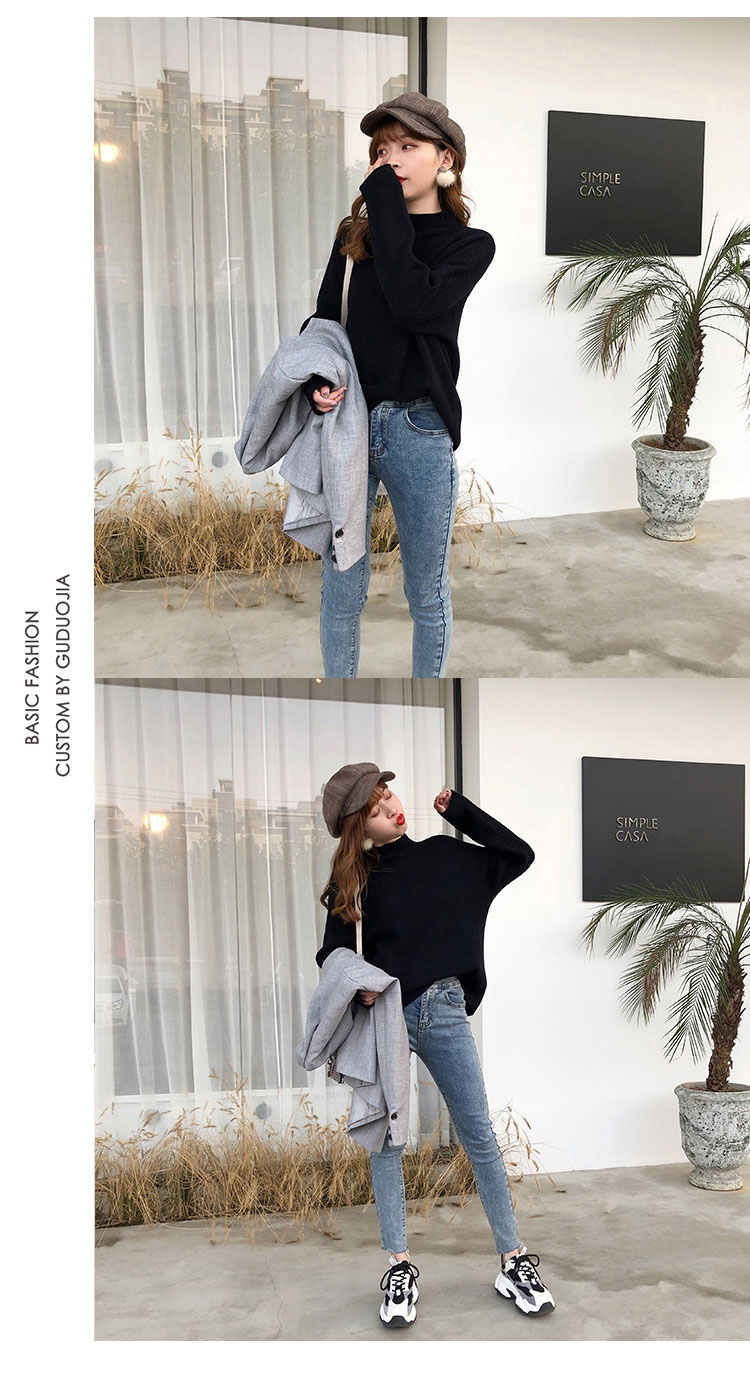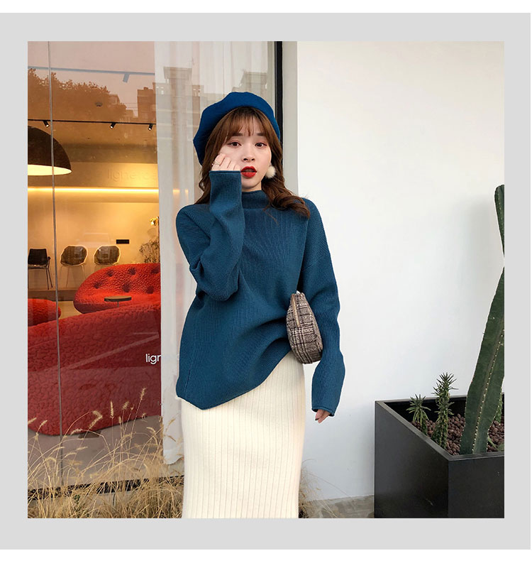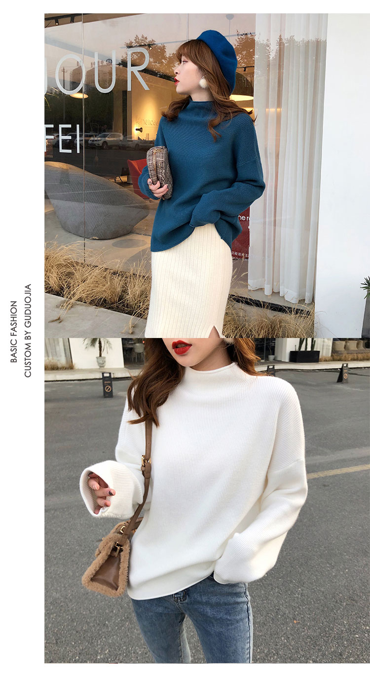 2019秋冬新款外穿寬松女士毛衣加厚半高領針織衫復古港味內搭上衣1入