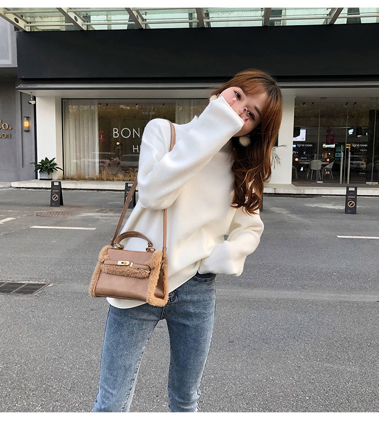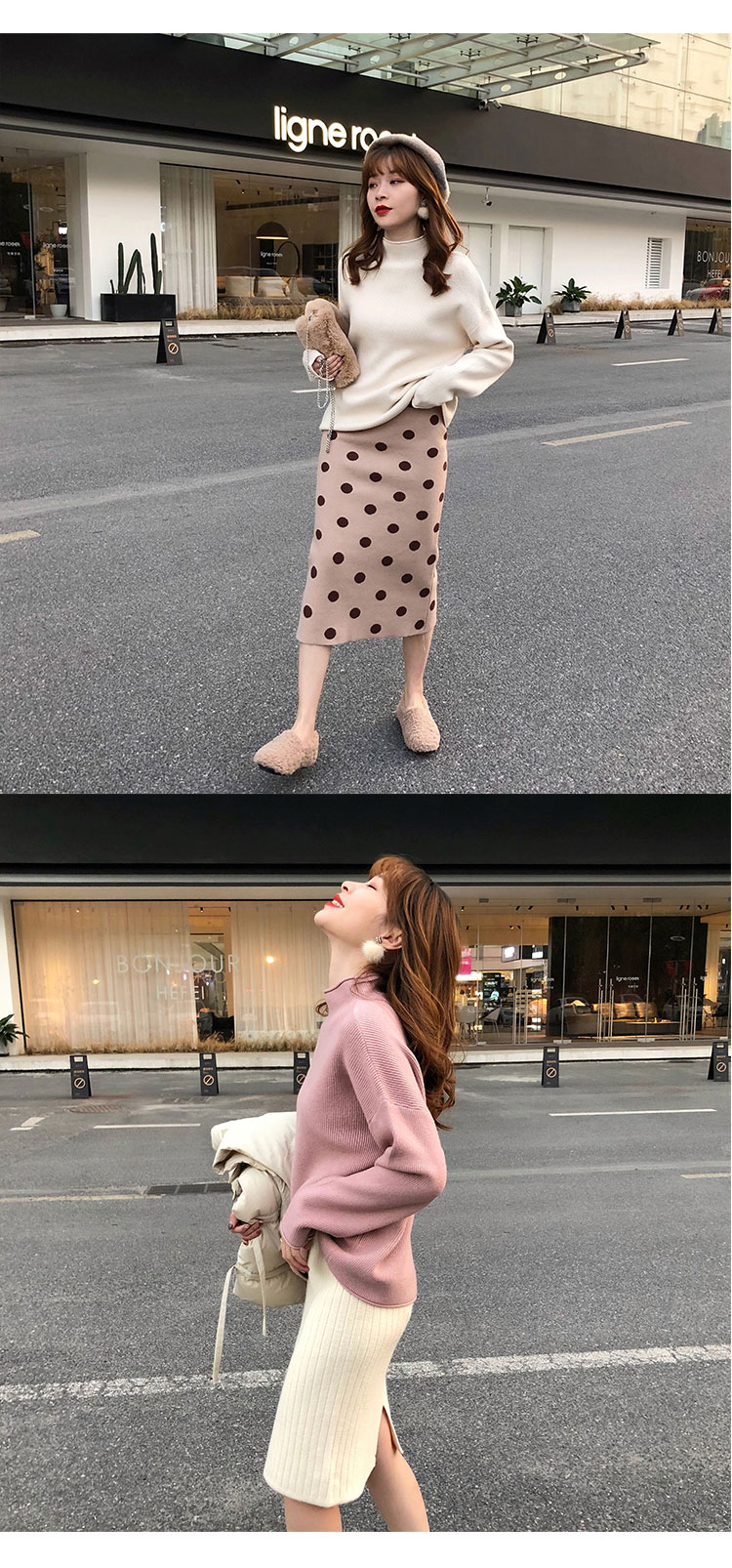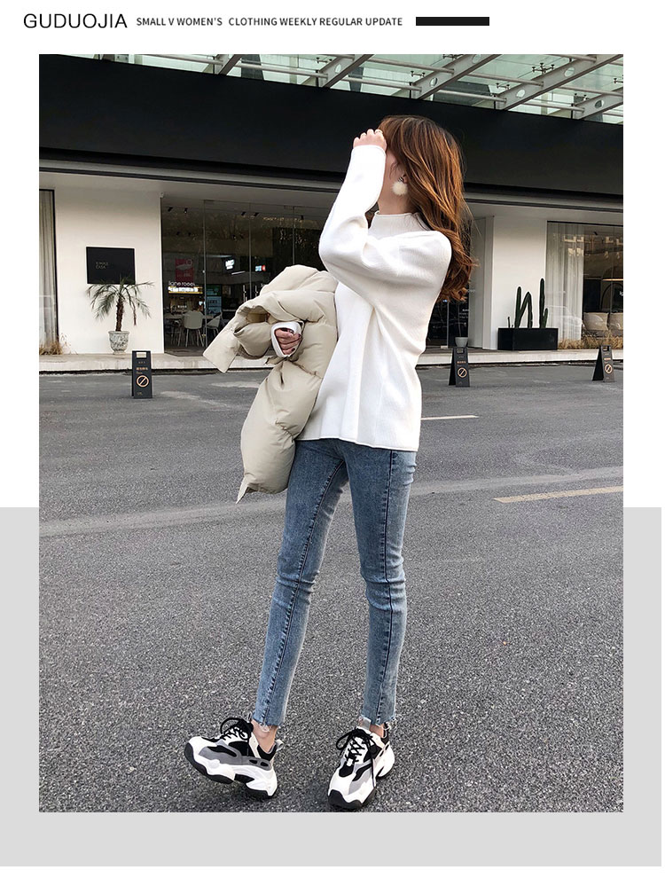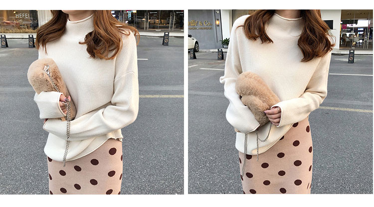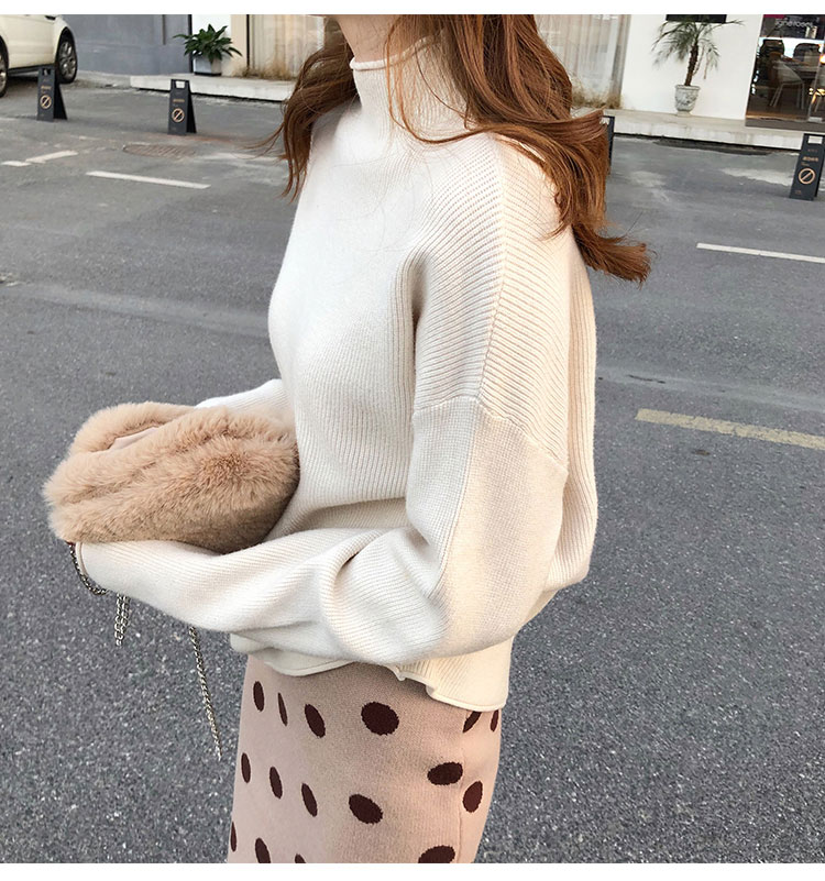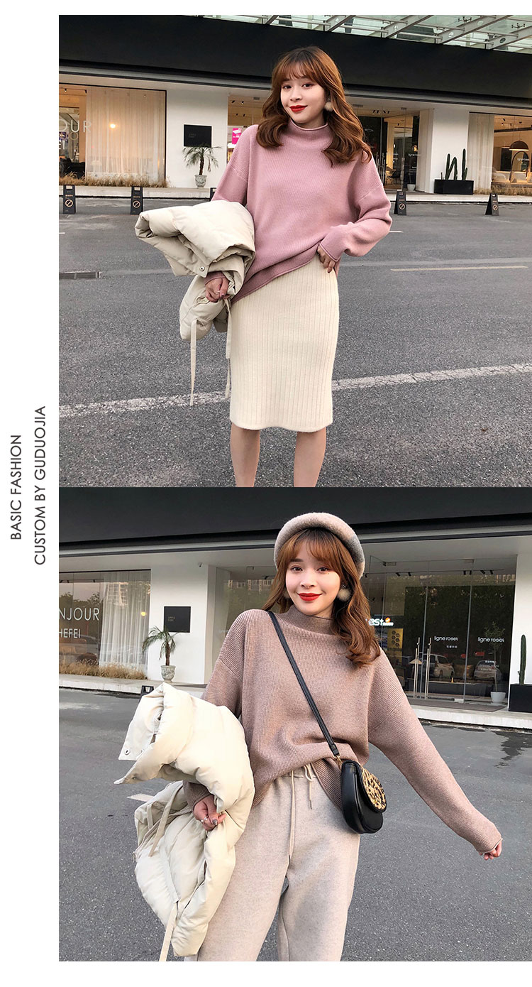 2019秋冬新款外穿寬松女士毛衣加厚半高領針織衫復古港味內搭上衣1入