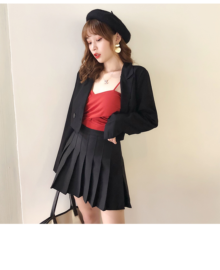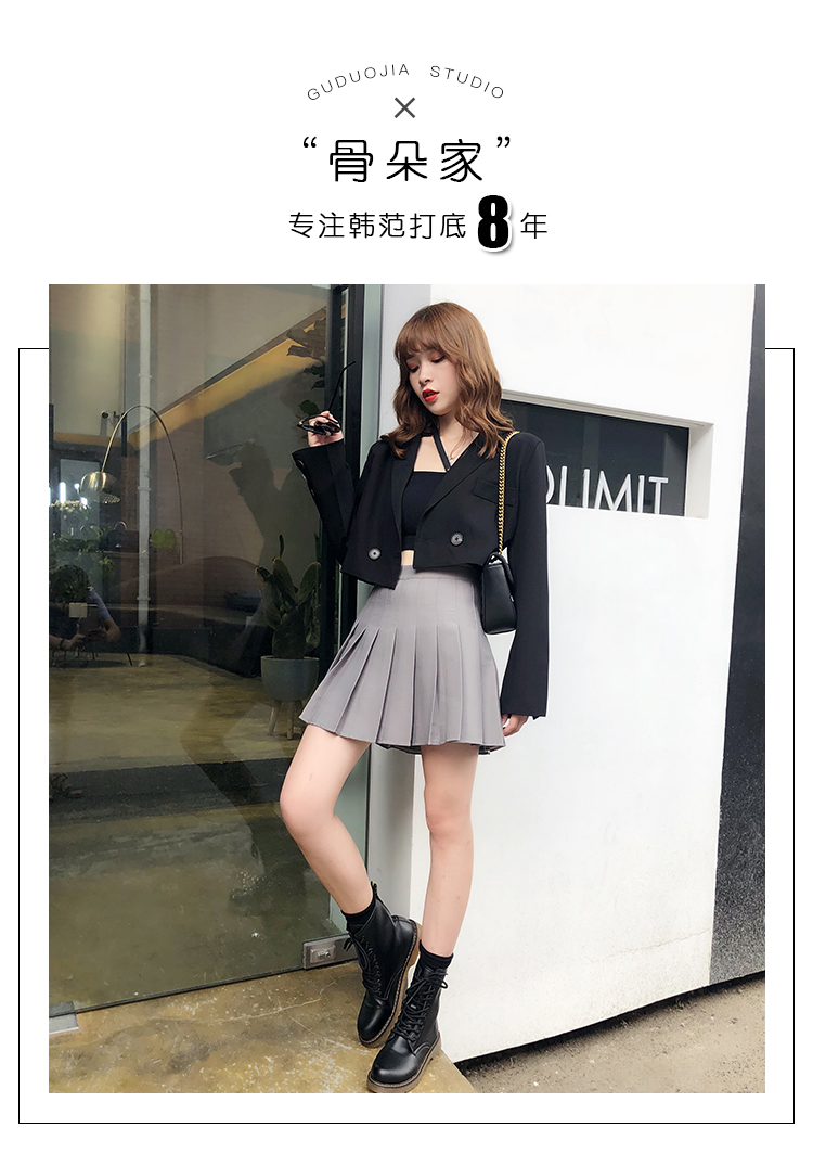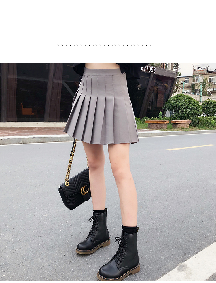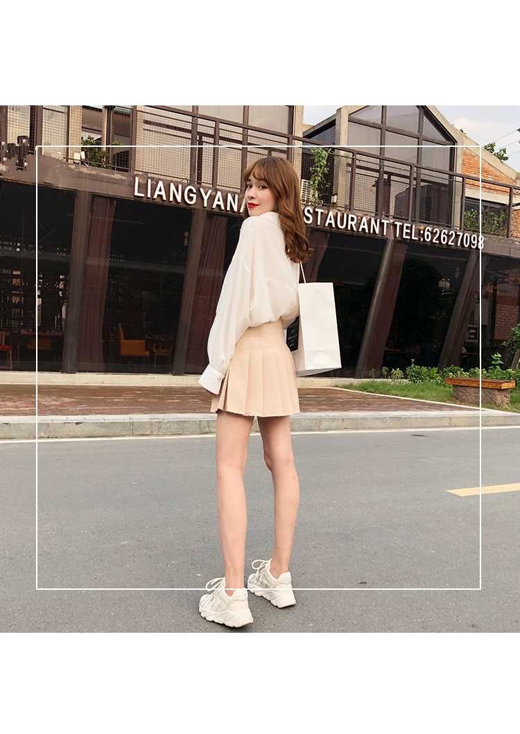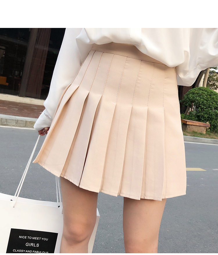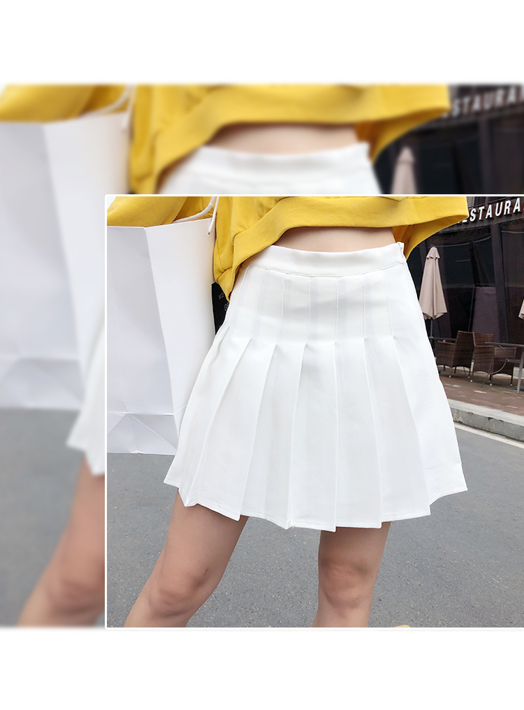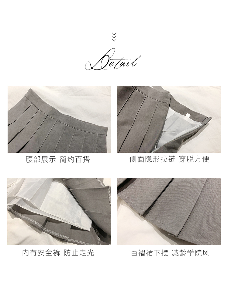 2019秋冬新款韓版高腰a字百褶裙學院風百搭顯瘦半身裙防走光短裙1入