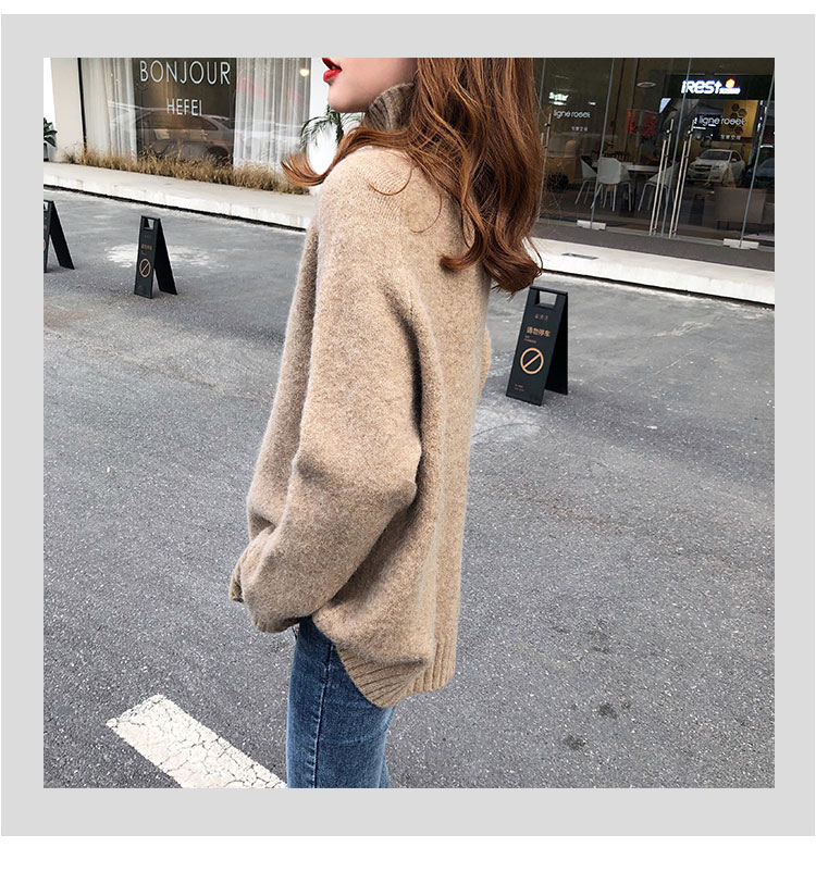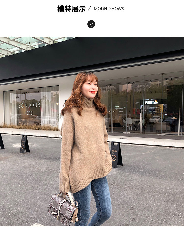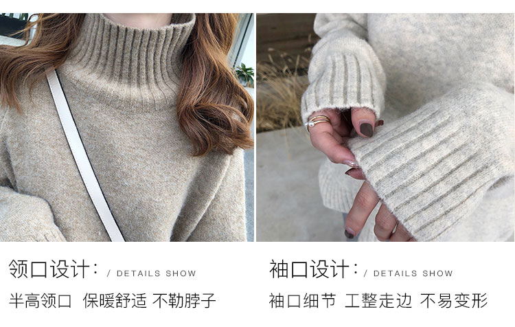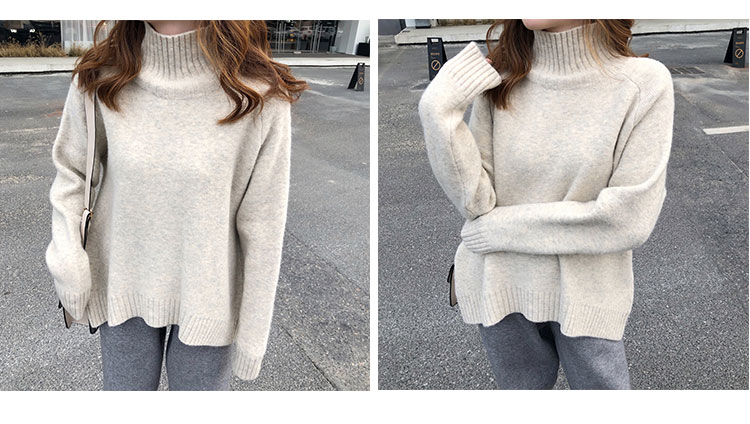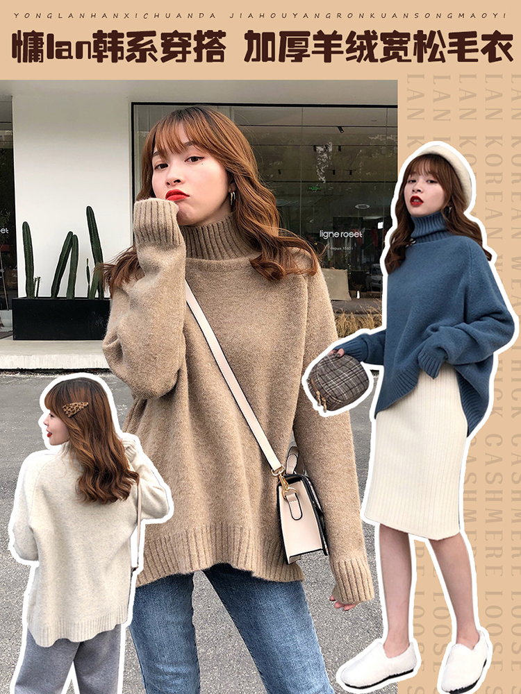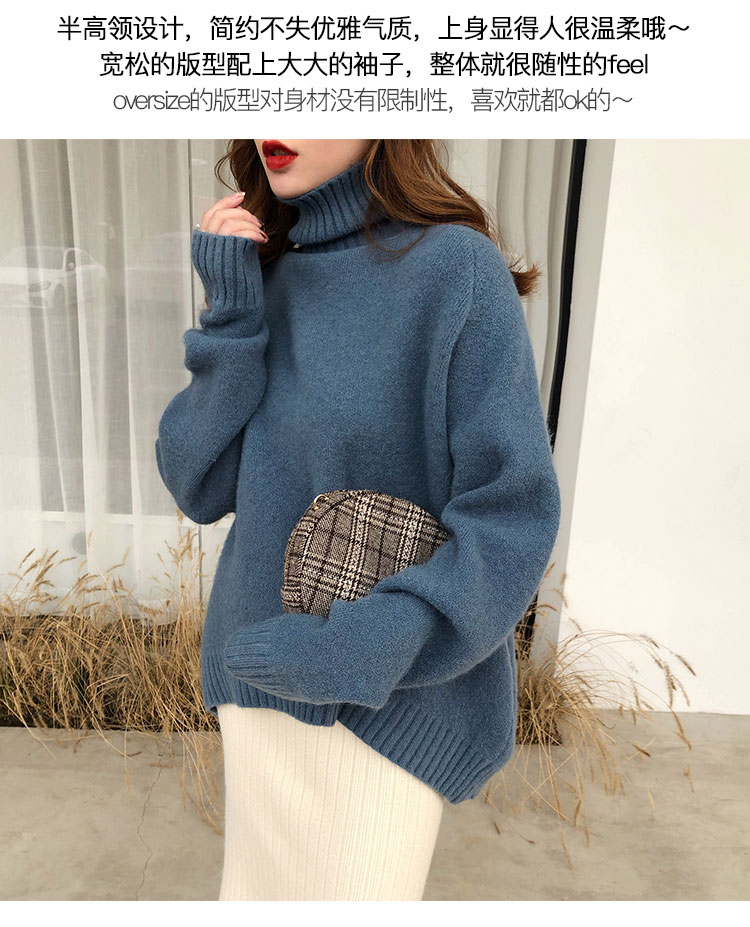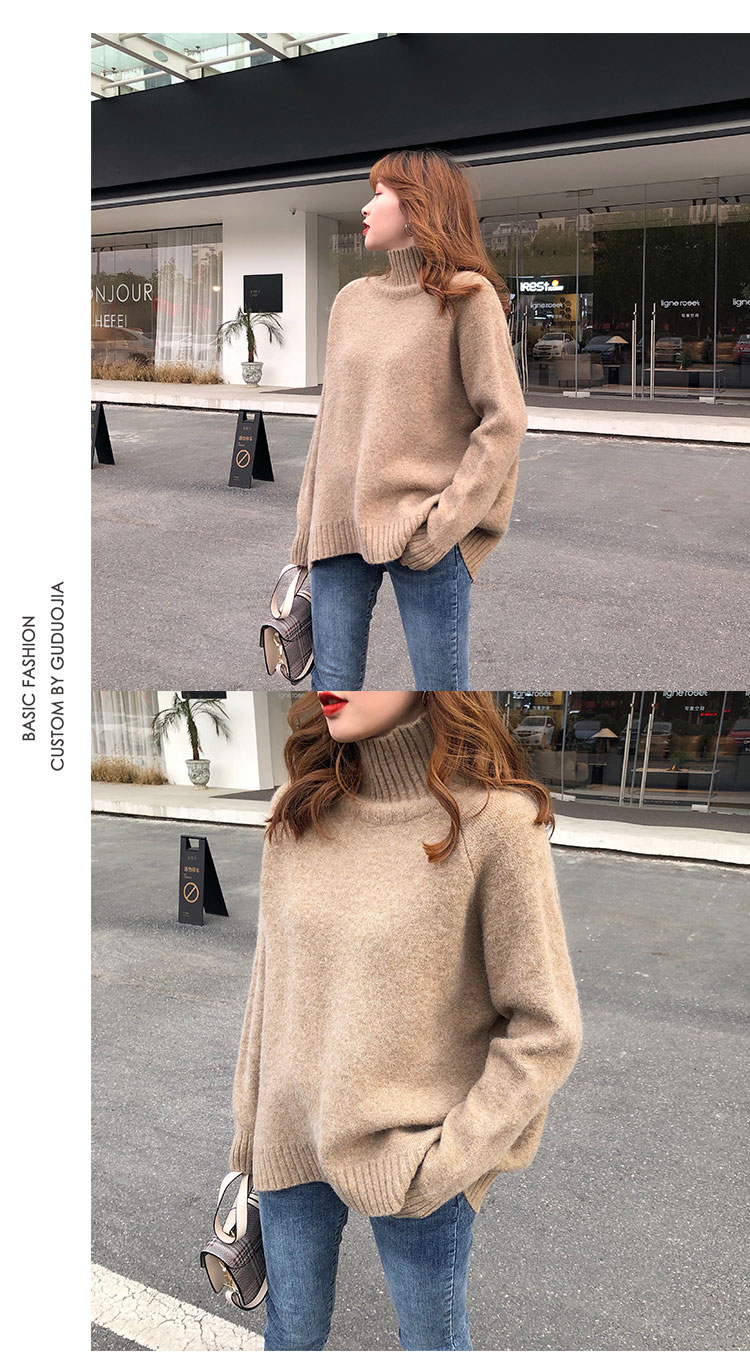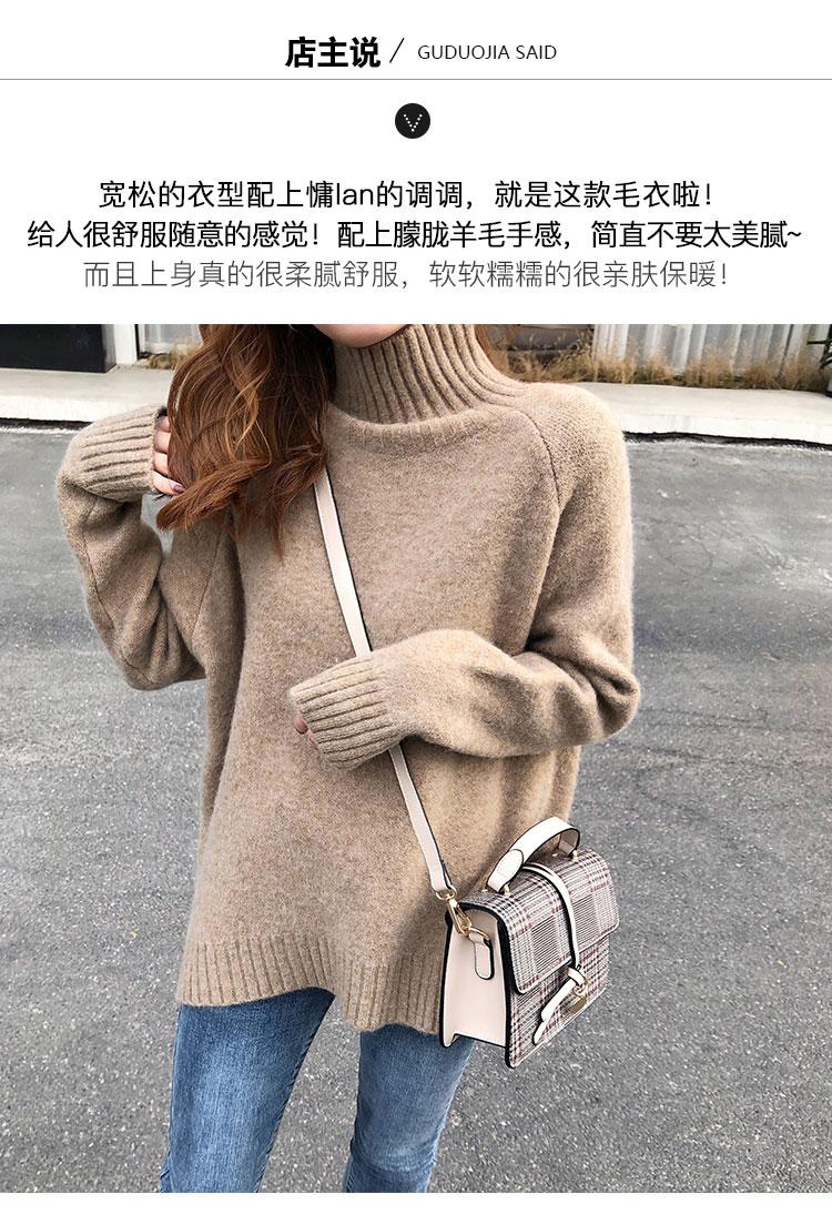 2019秋冬新款外穿加厚高領毛衣女復古寬松羊絨針織衫矮個子打底衫1入