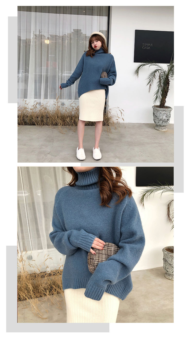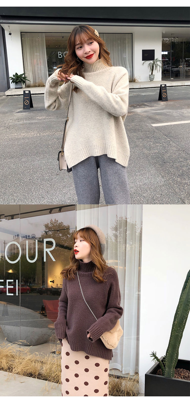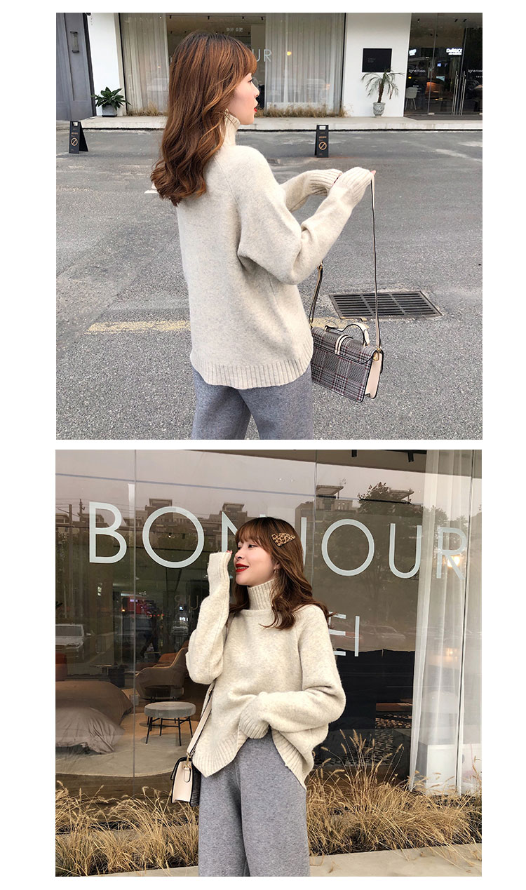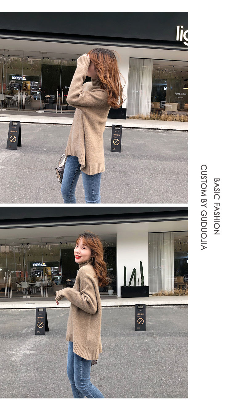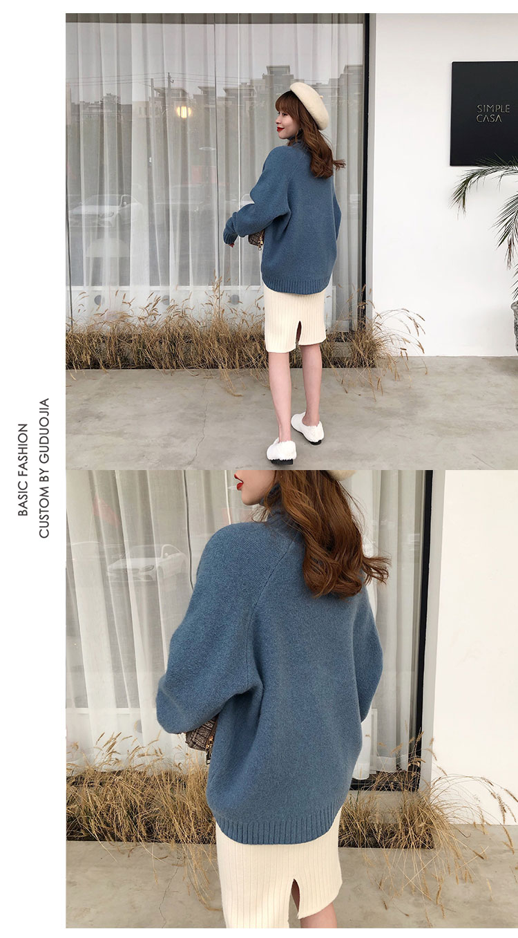 2019秋冬新款外穿加厚高領毛衣女復古寬松羊絨針織衫矮個子打底衫1入