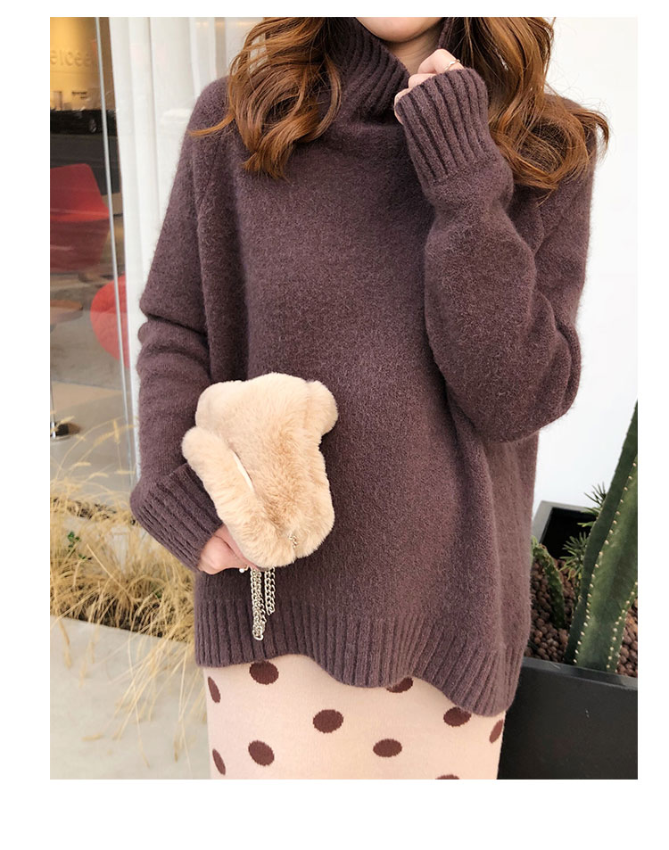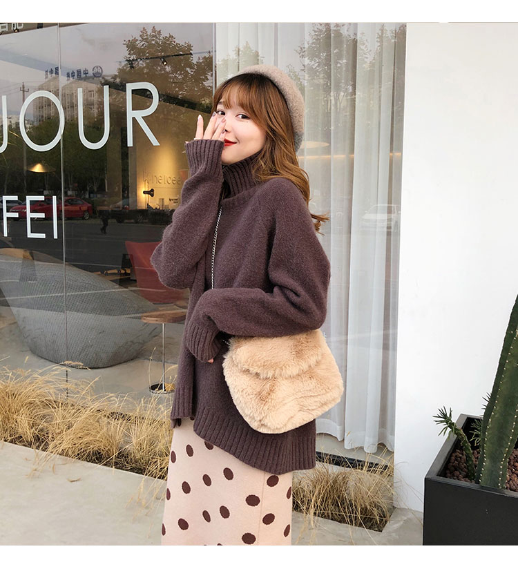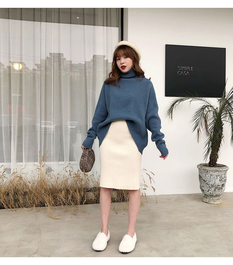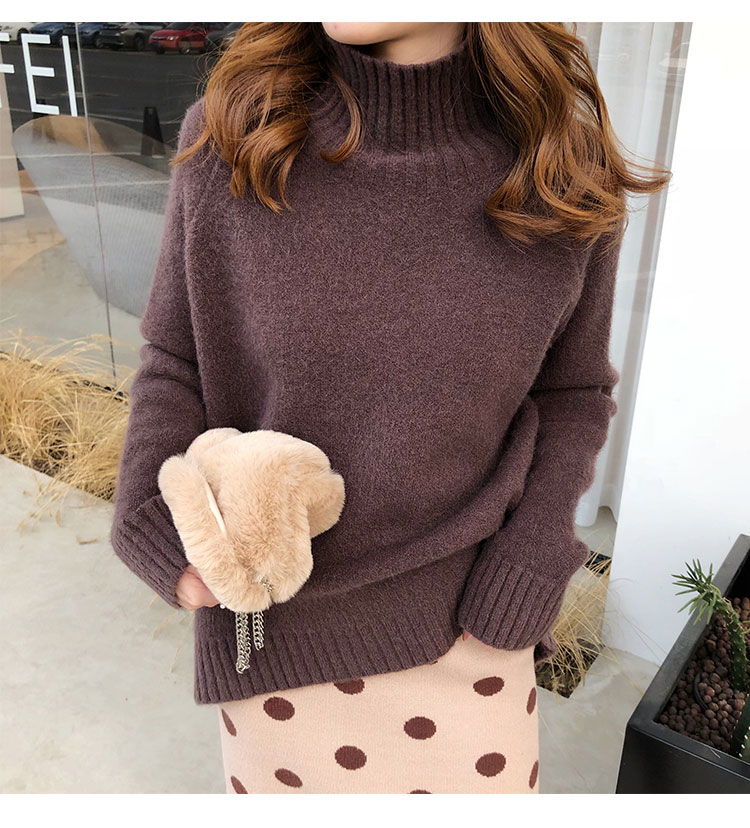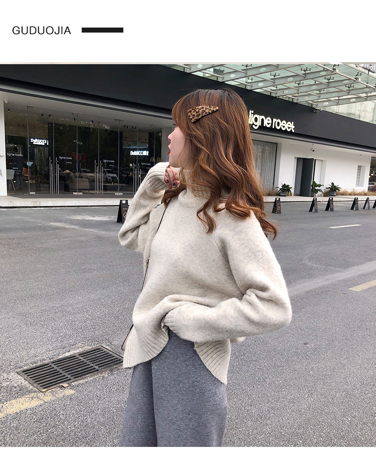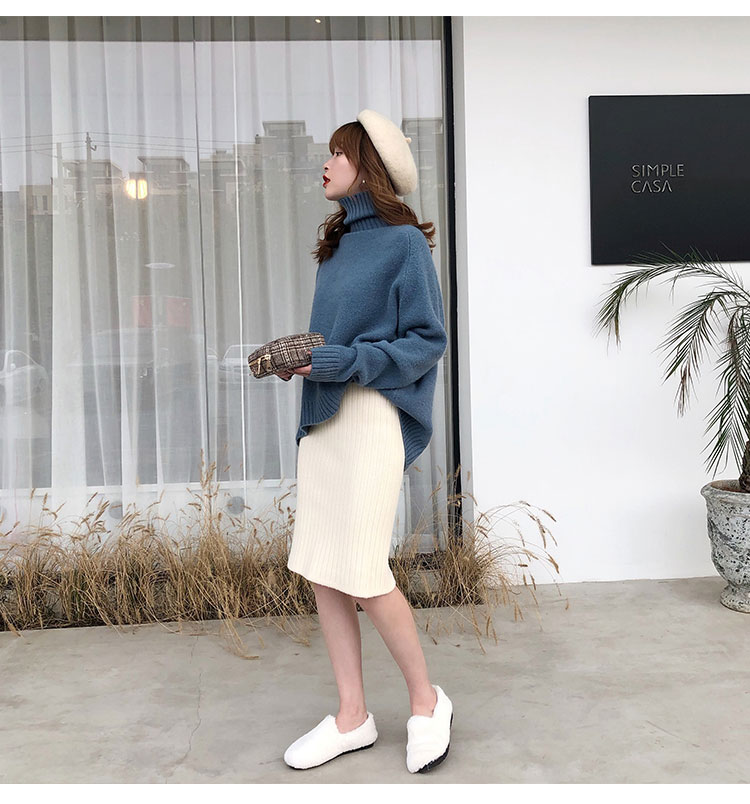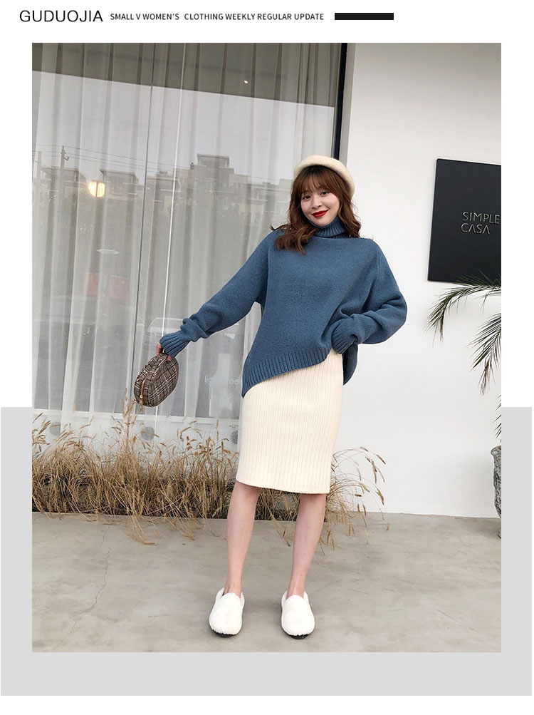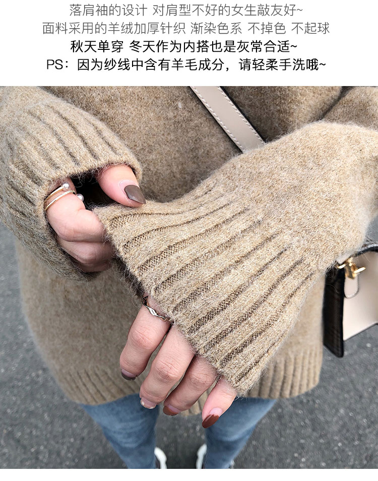 2019秋冬新款外穿加厚高領毛衣女復古寬松羊絨針織衫矮個子打底衫1入