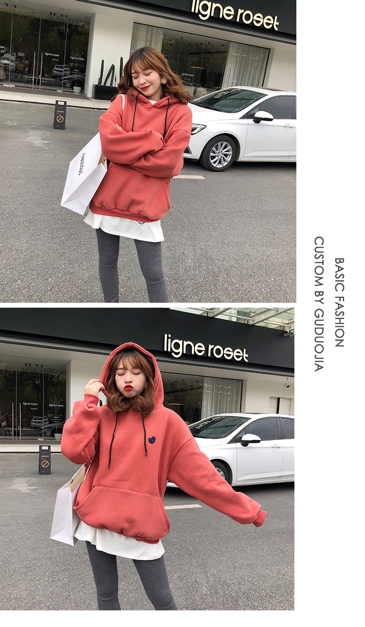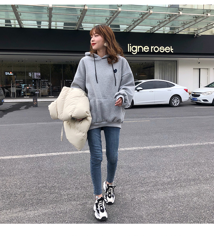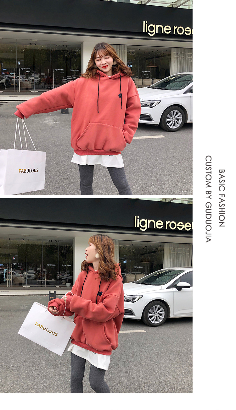2019秋冬新款加絨加厚衛衣女寬松韓版顯瘦連帽外套網紅上衣潮ins1入