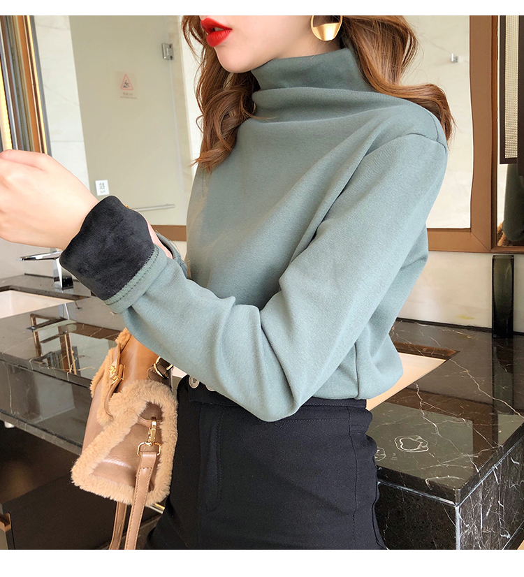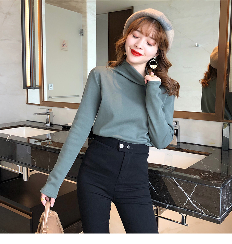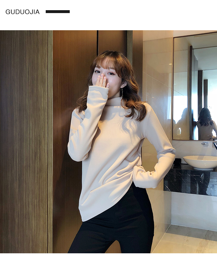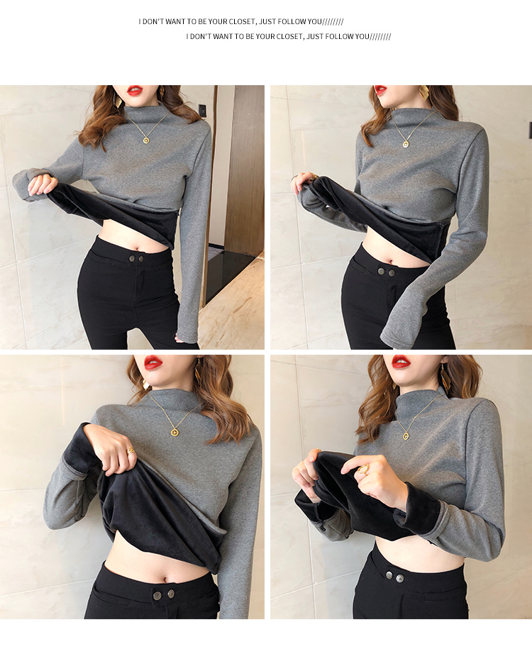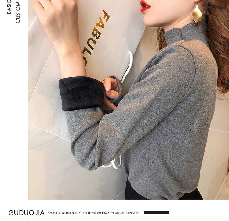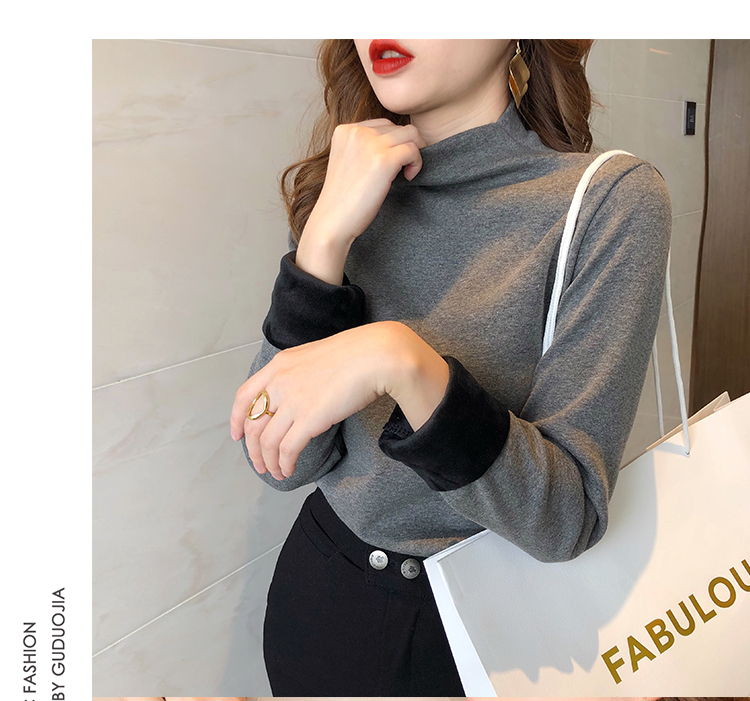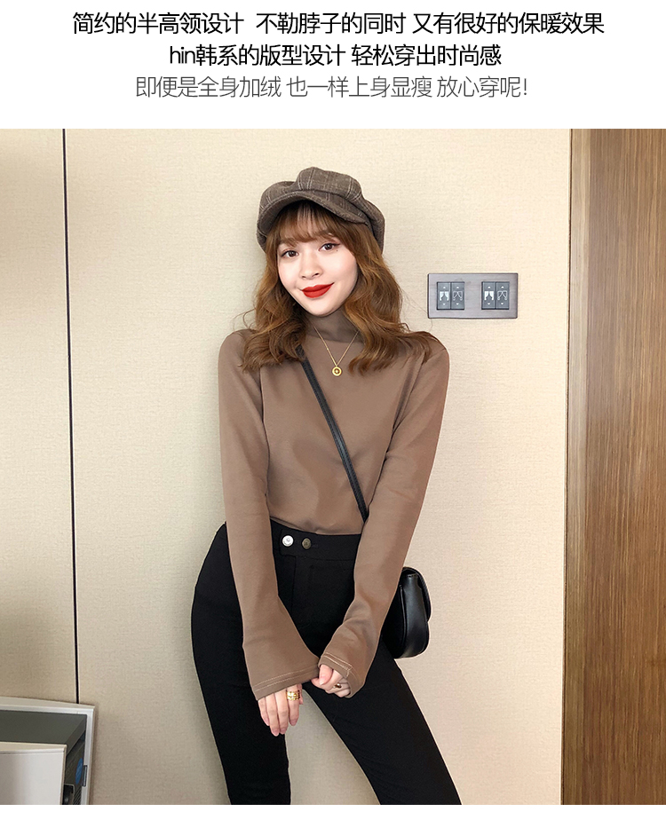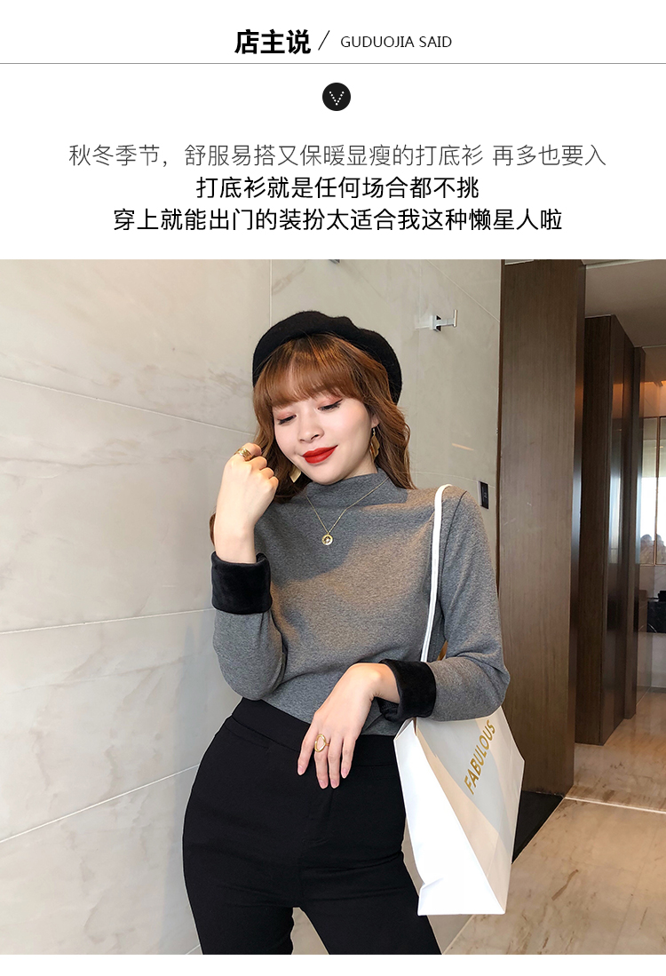 2019秋冬新款加絨打底衫女寬松加厚保暖t恤半高領時尚長袖打底衫1入