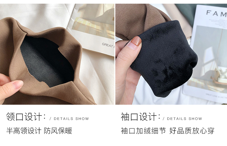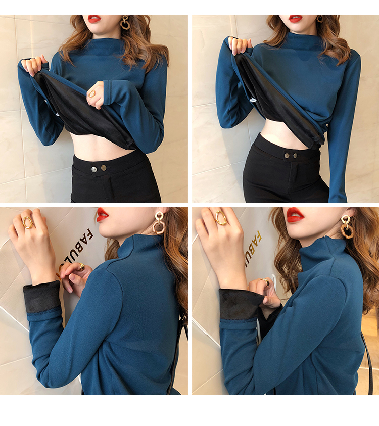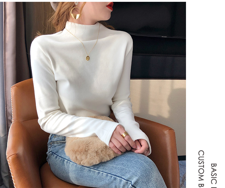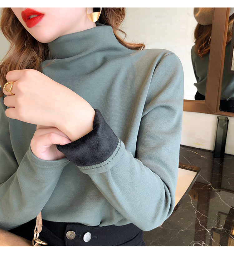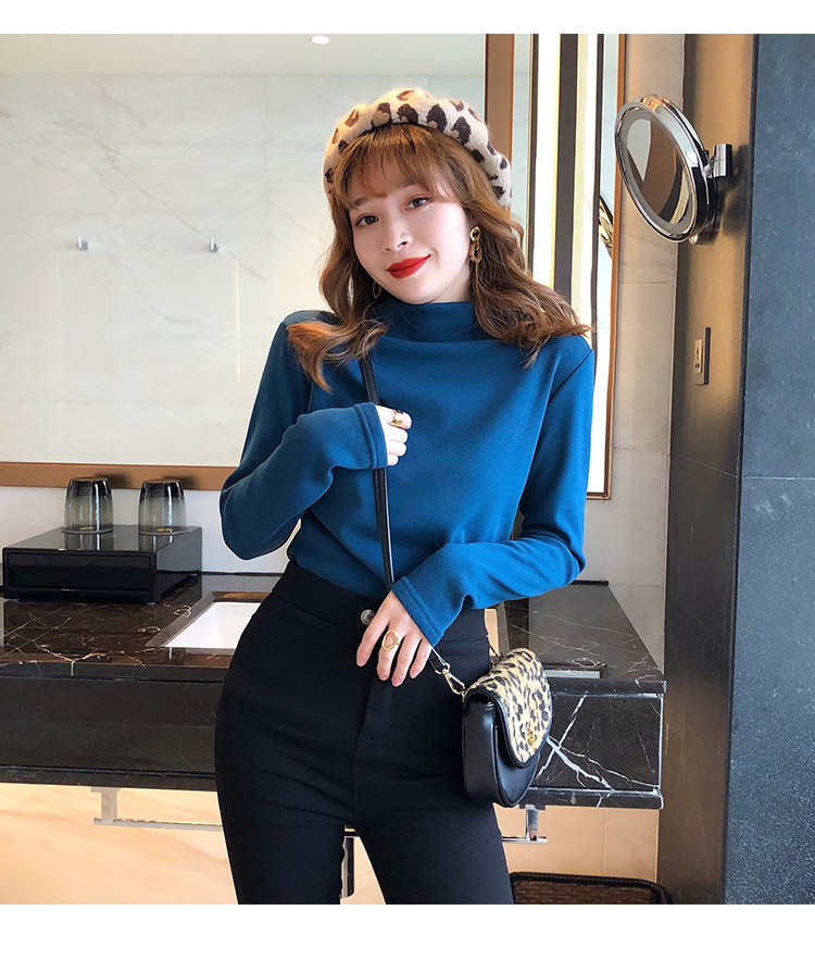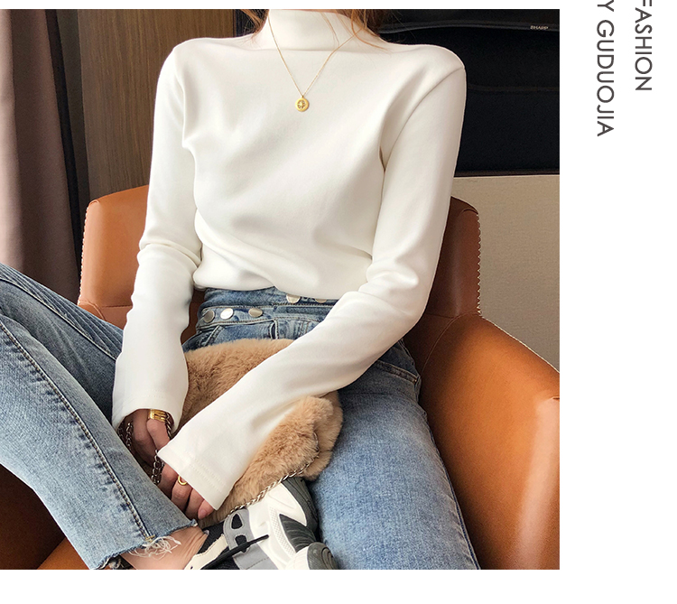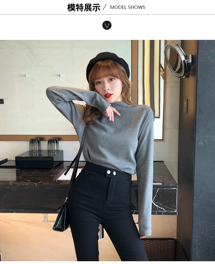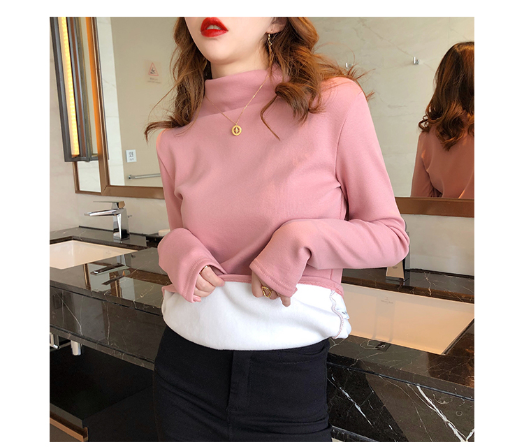 2019秋冬新款加絨打底衫女寬松加厚保暖t恤半高領時尚長袖打底衫1入