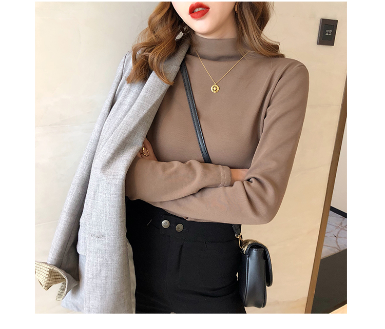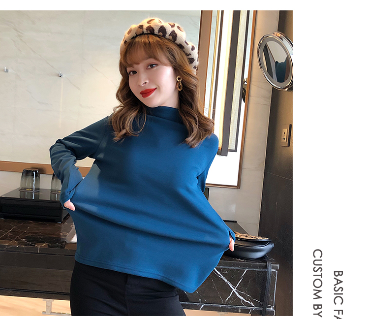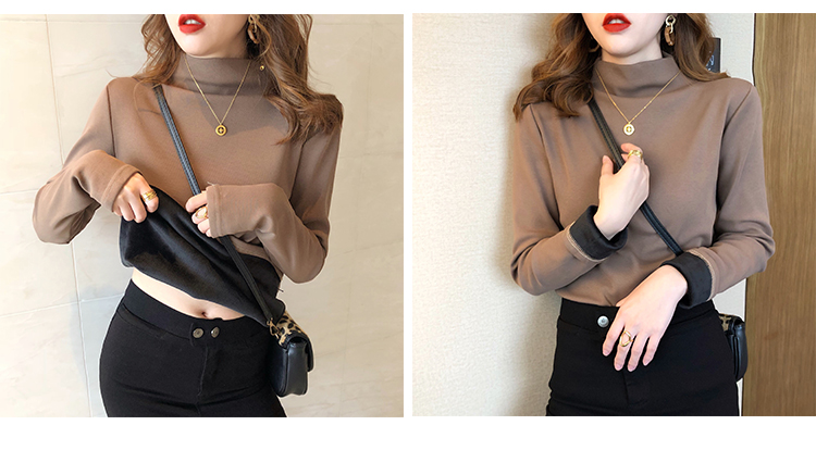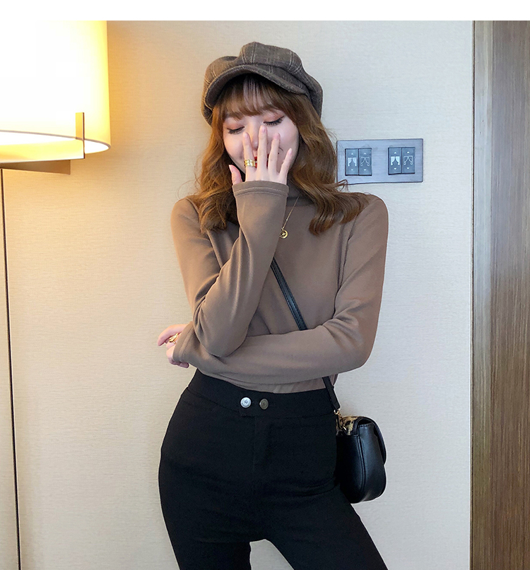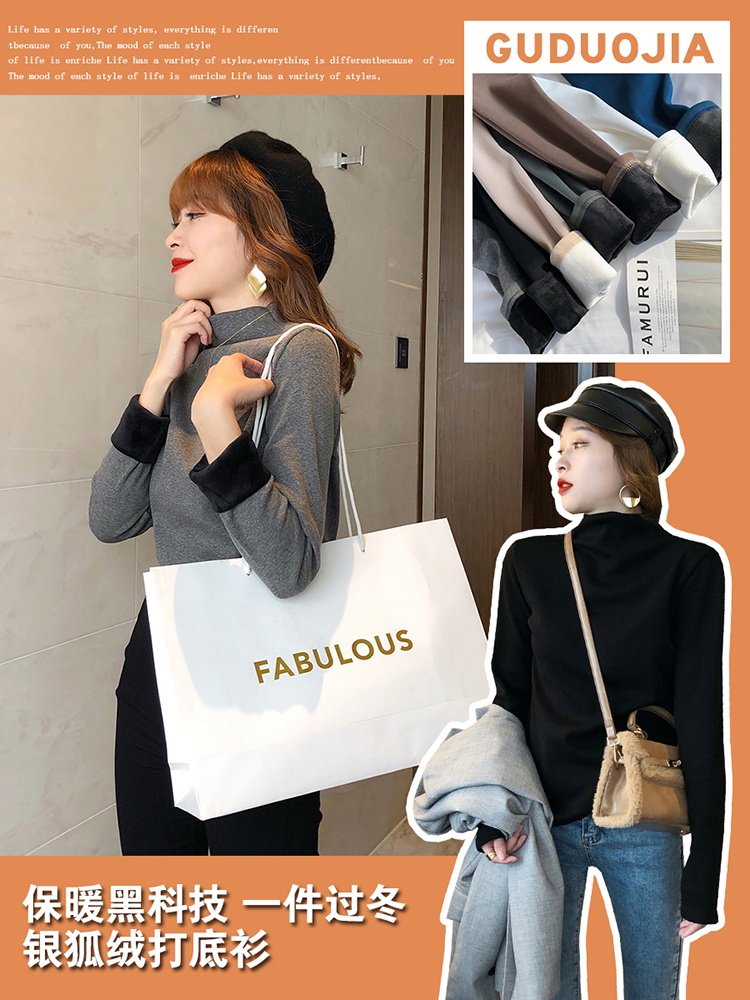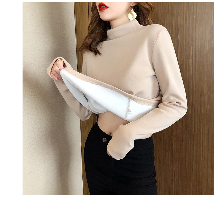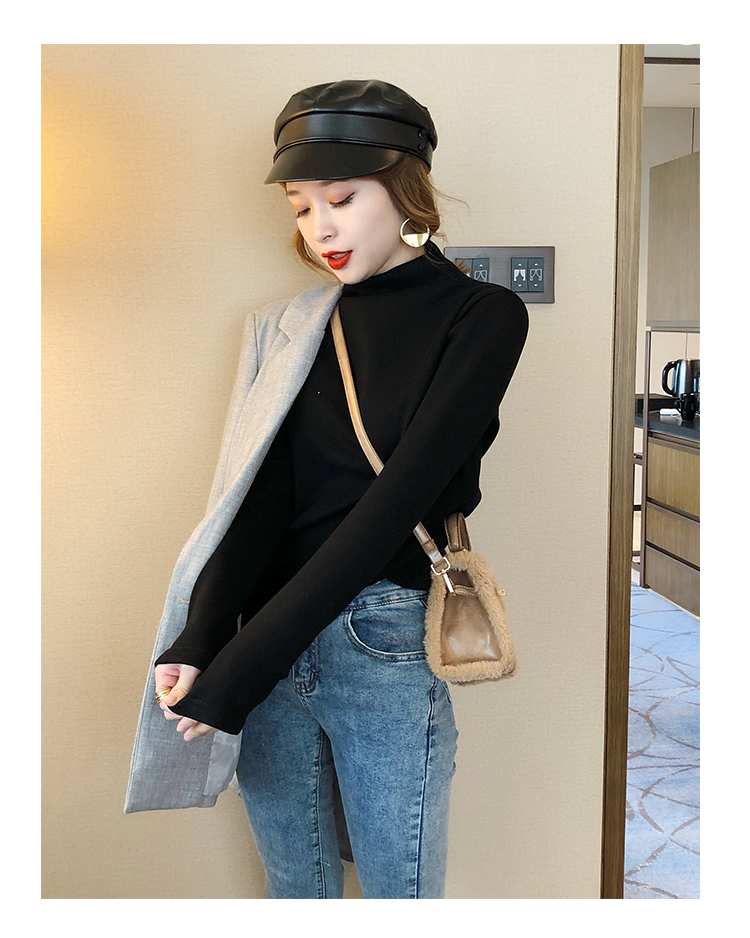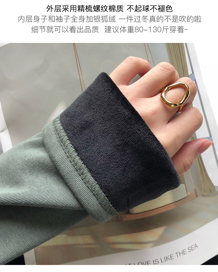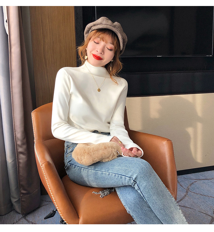 2019秋冬新款加絨打底衫女寬松加厚保暖t恤半高領時尚長袖打底衫1入