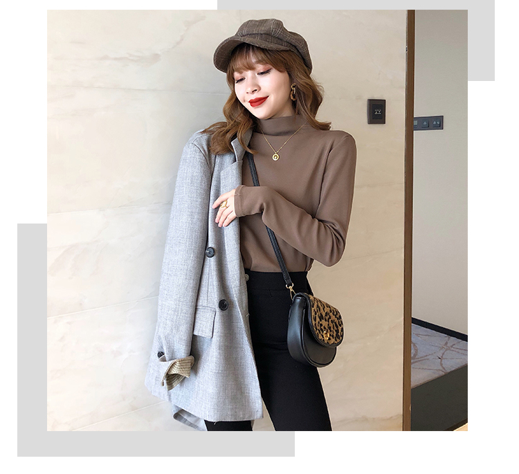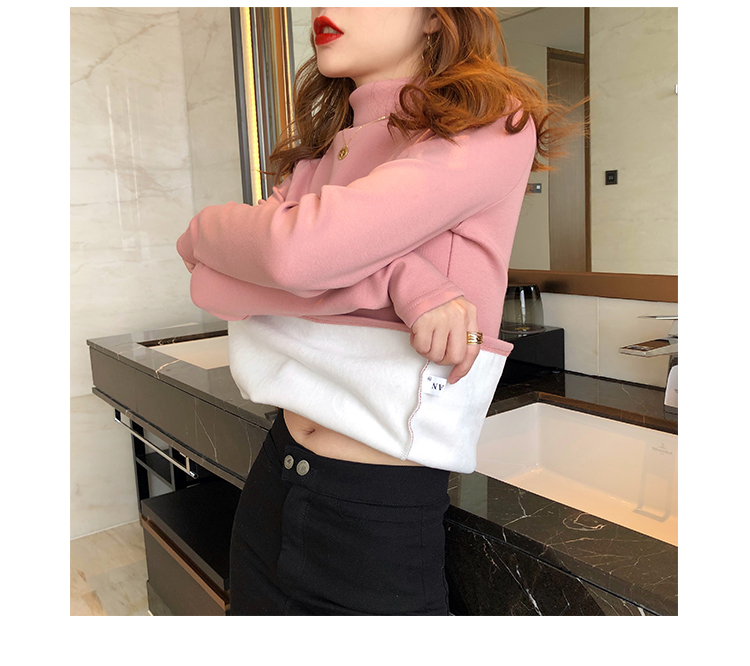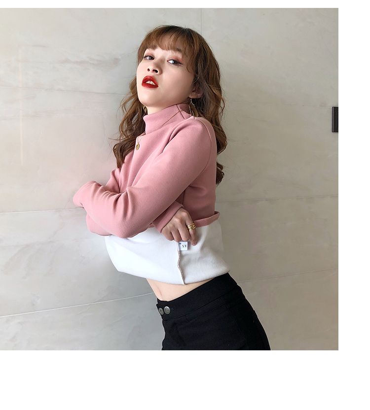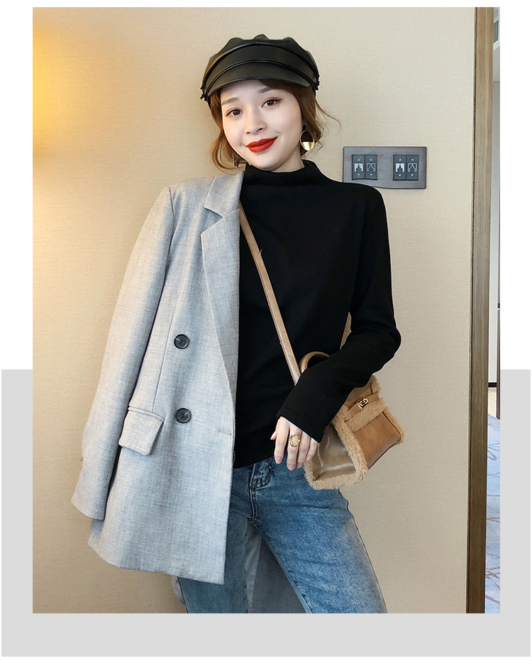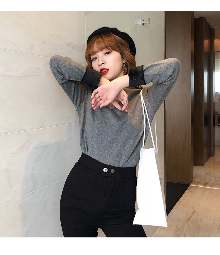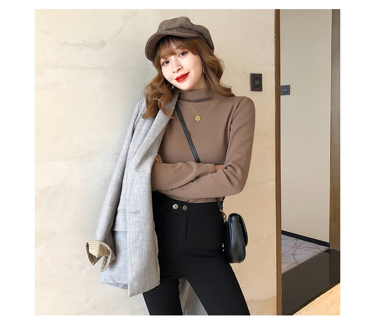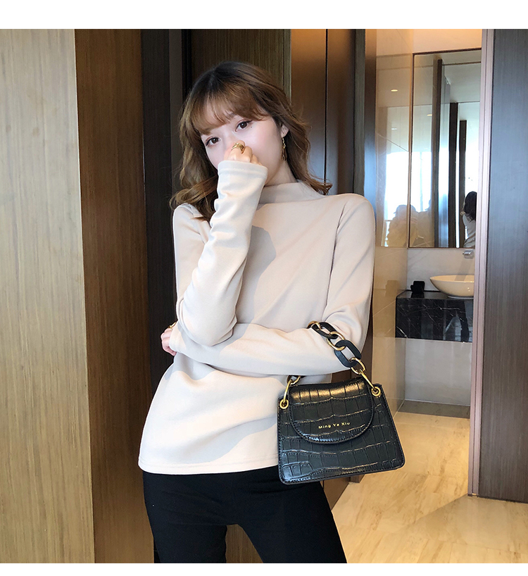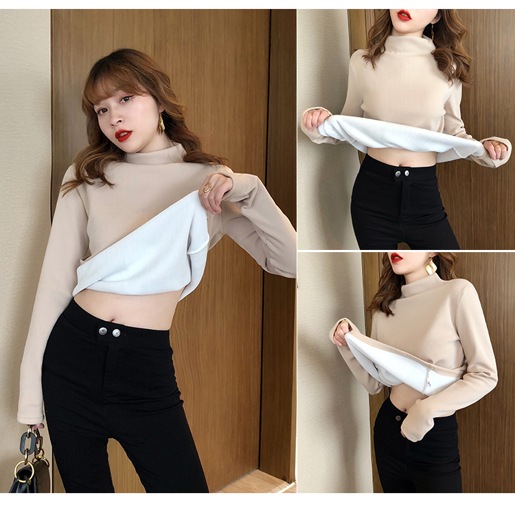 2019秋冬新款加絨打底衫女寬松加厚保暖t恤半高領時尚長袖打底衫1入