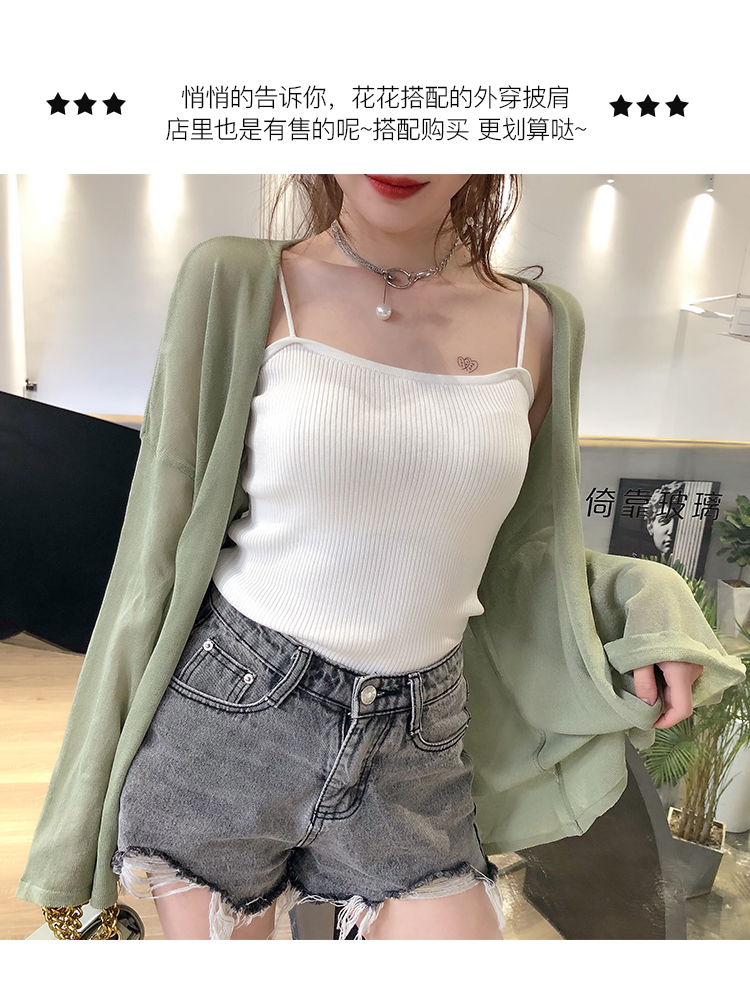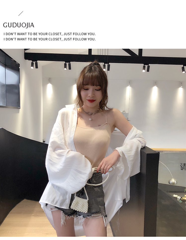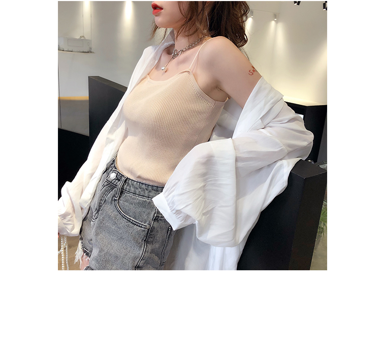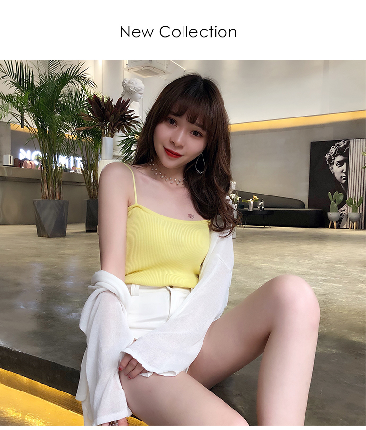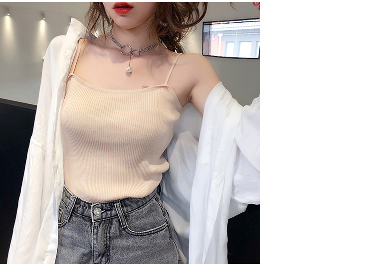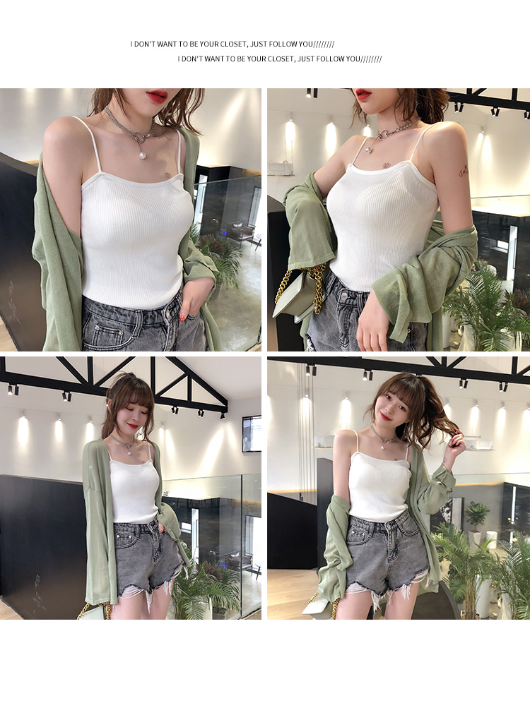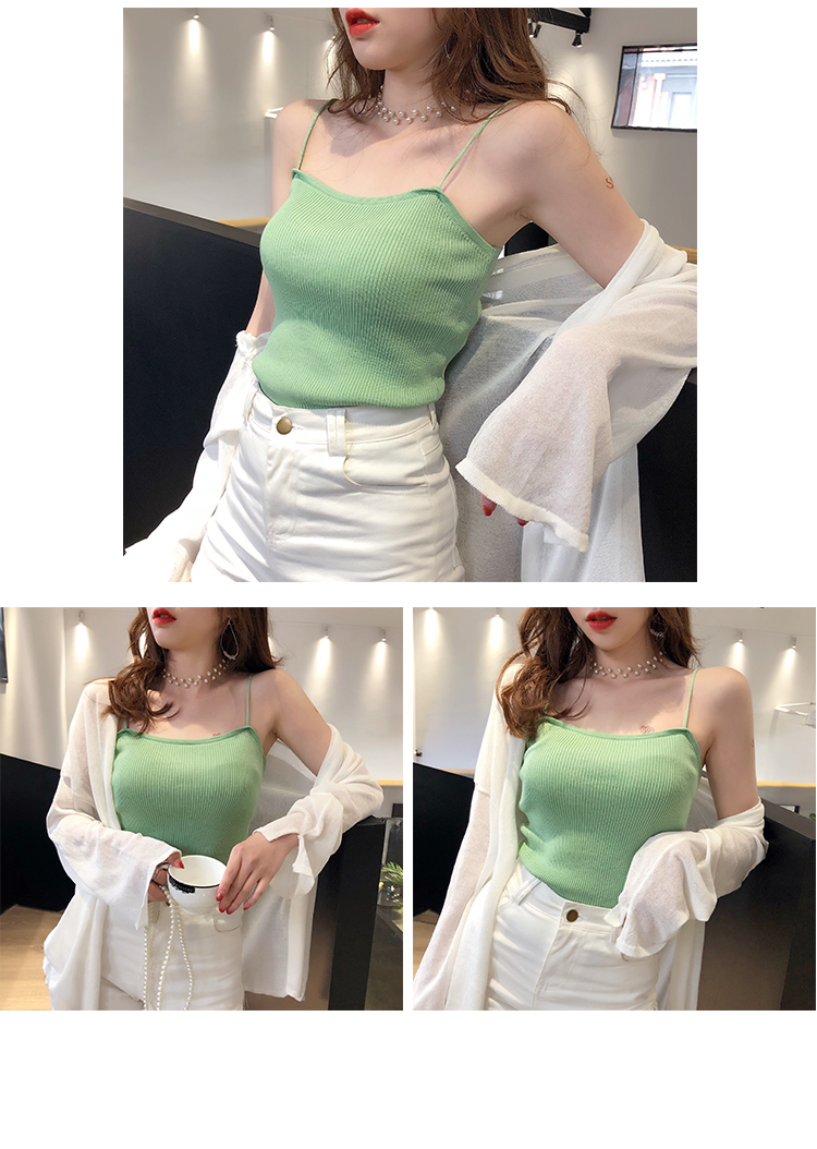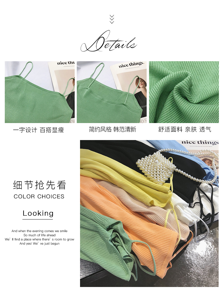 骨朵家 冰絲針織小吊帶背心女港味chic外穿無袖上衣夏內搭打底衫1入