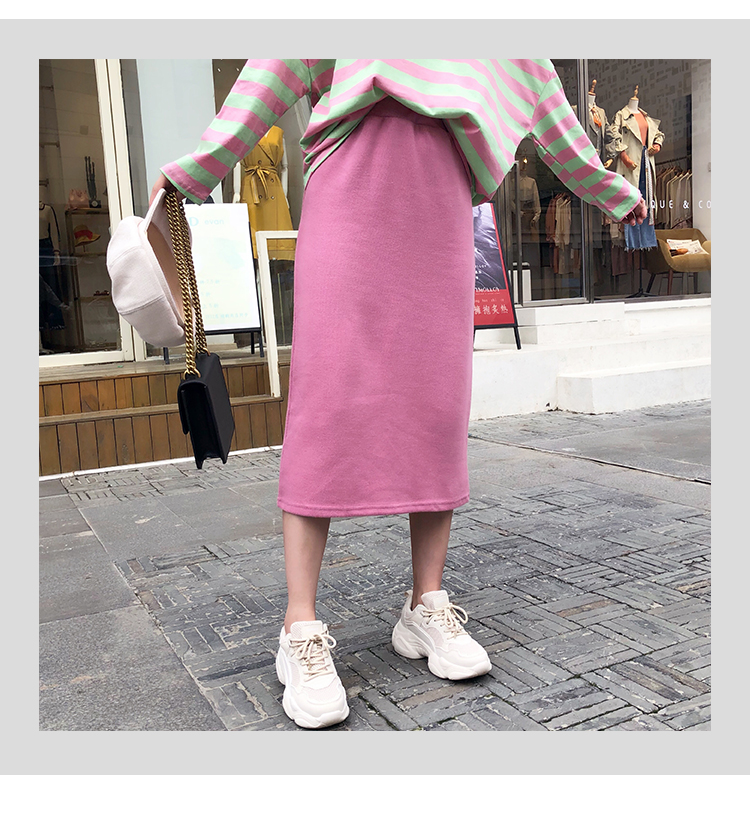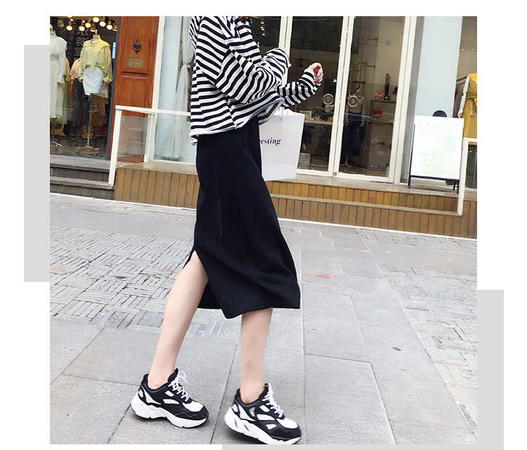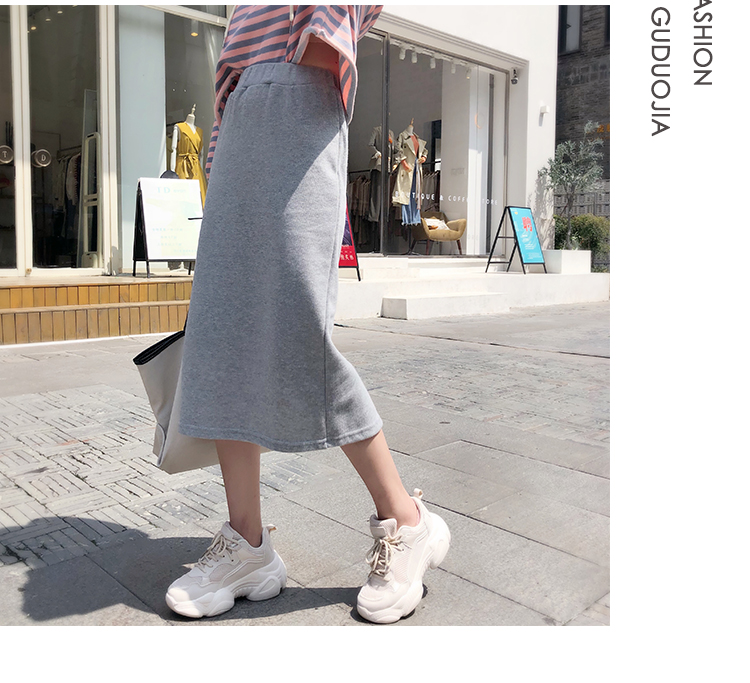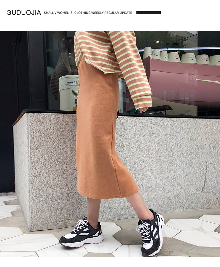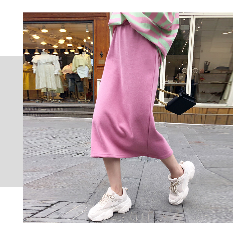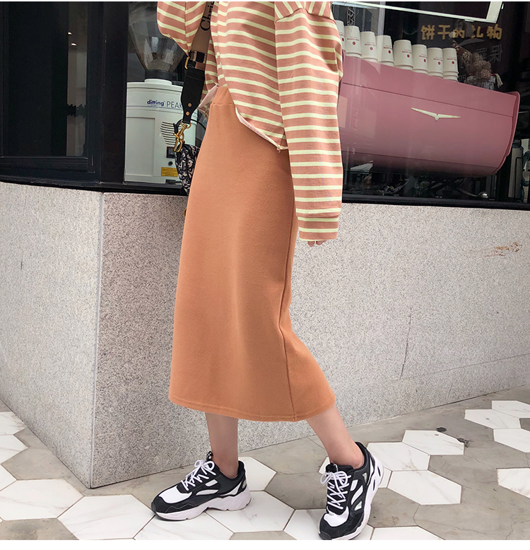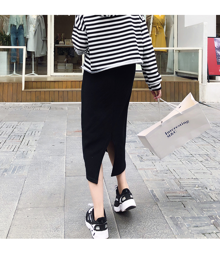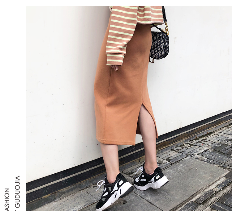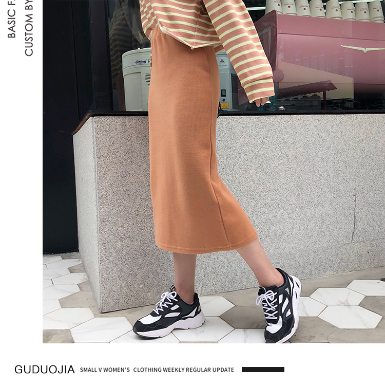 2019秋冬新款a字裙春秋高腰中長款開叉半身裙韓版顯瘦一步包臀裙1入