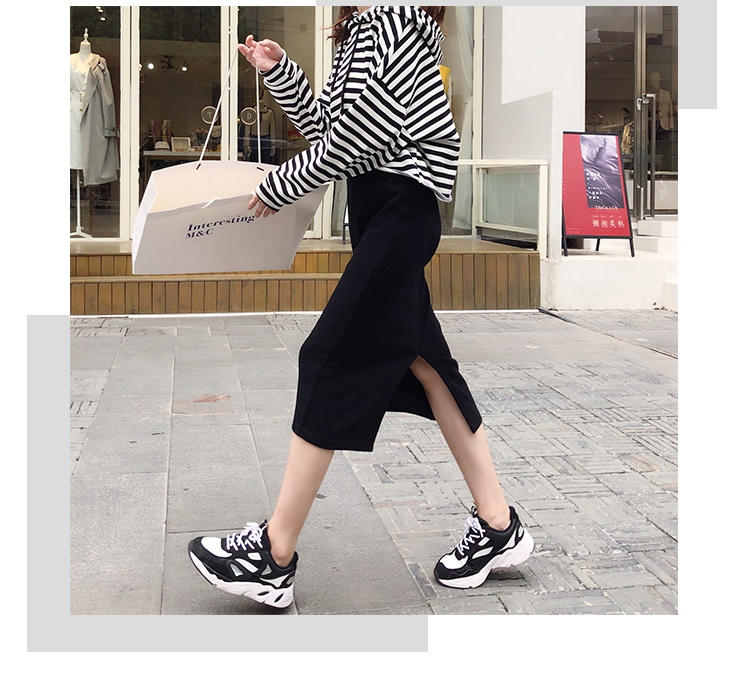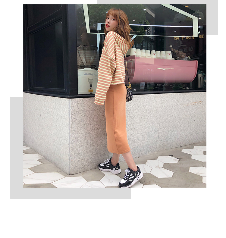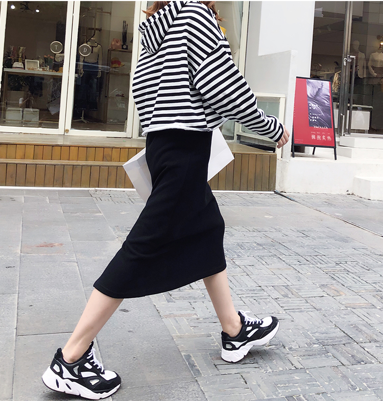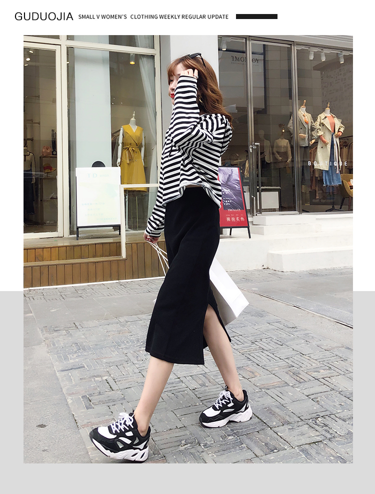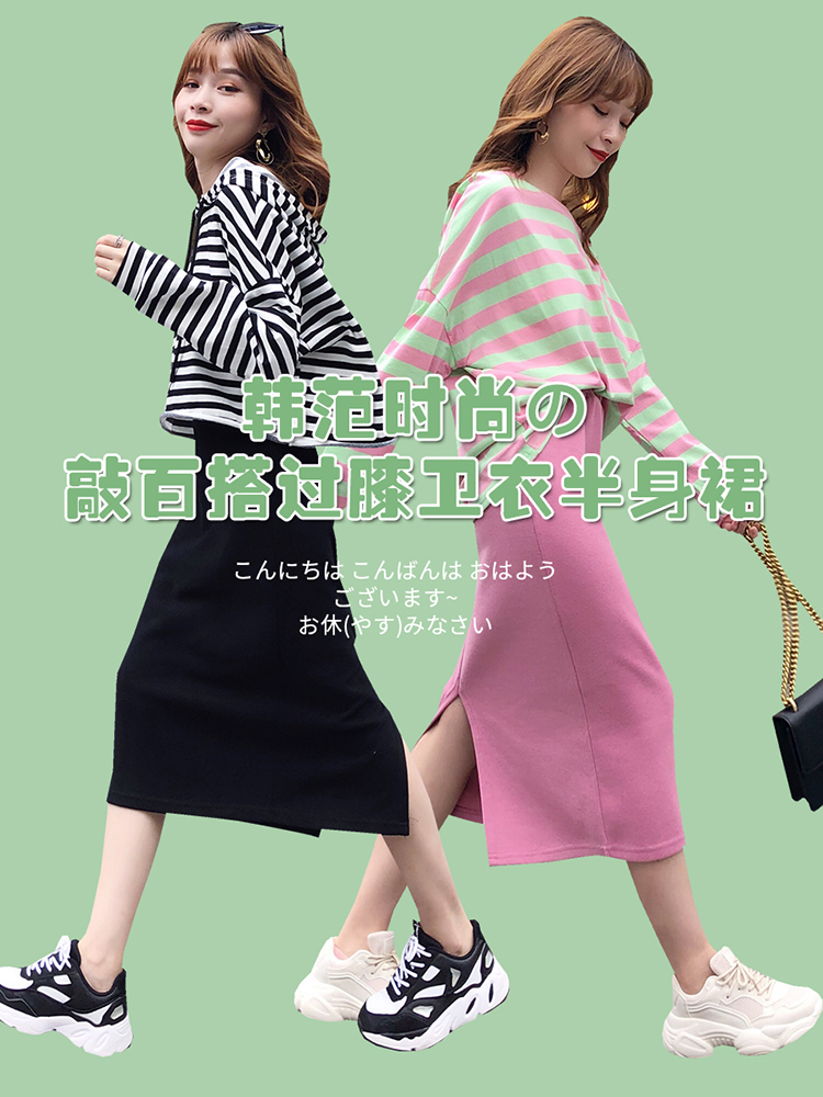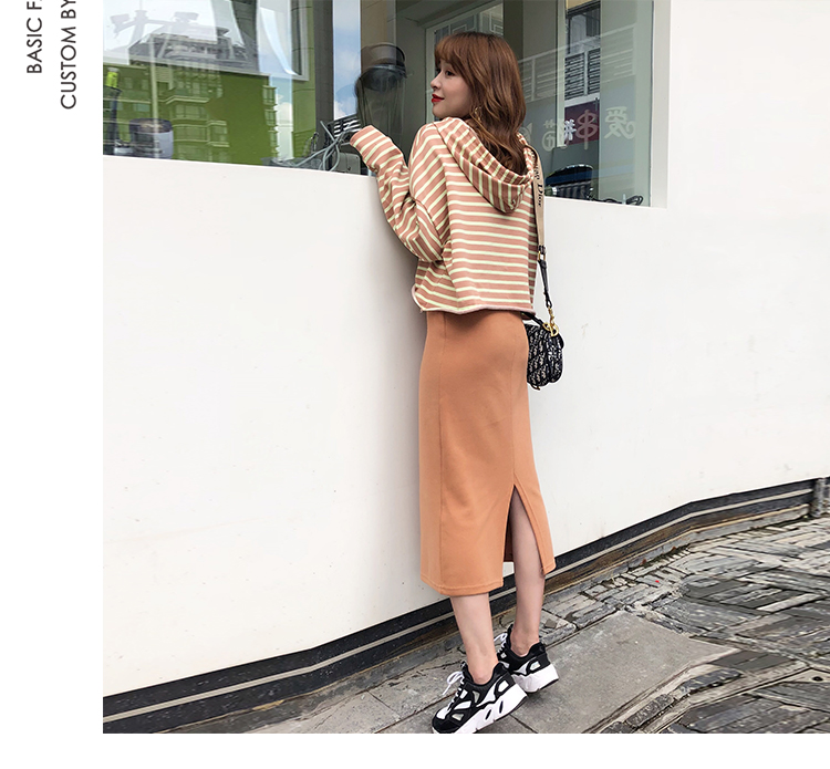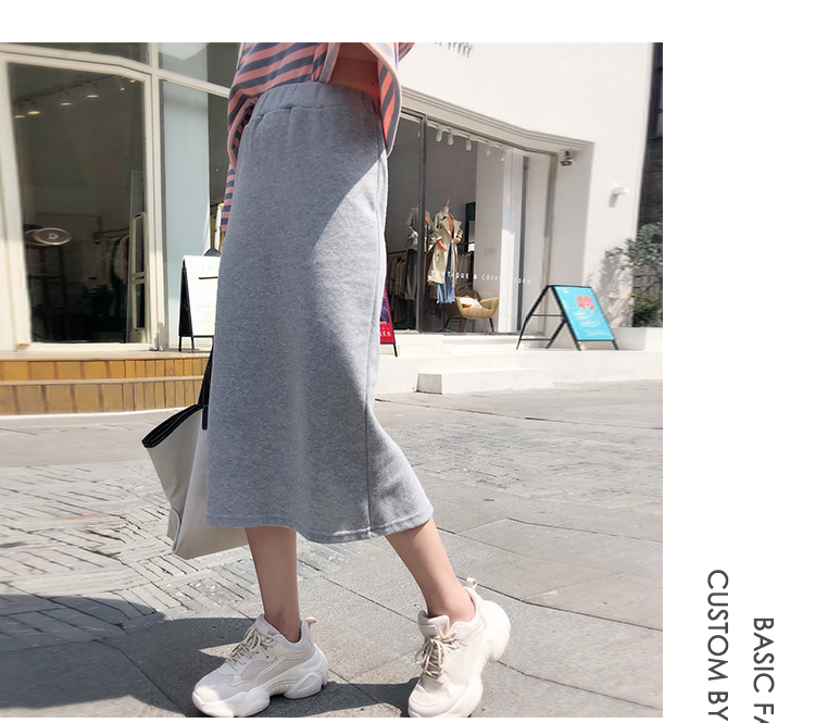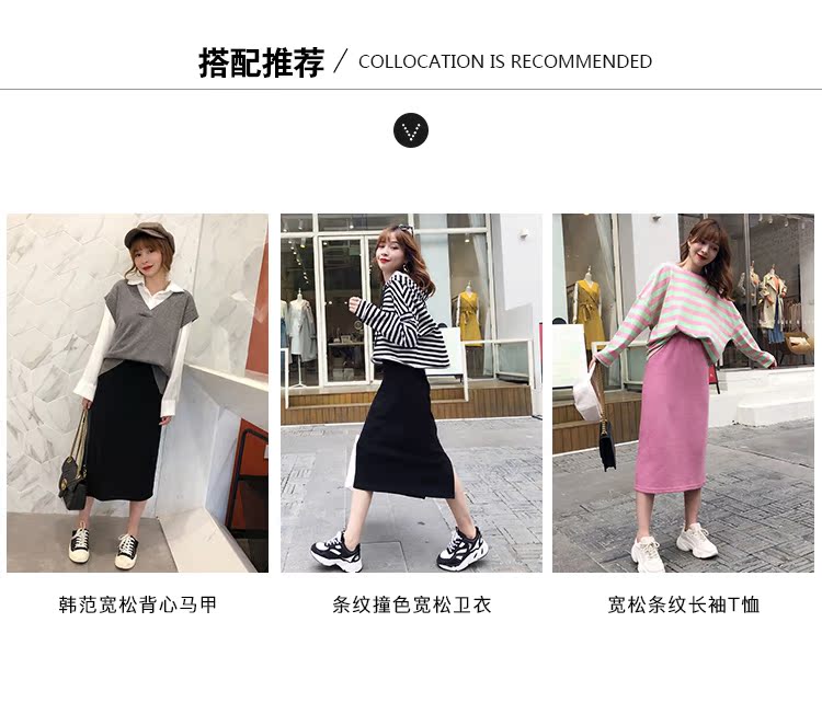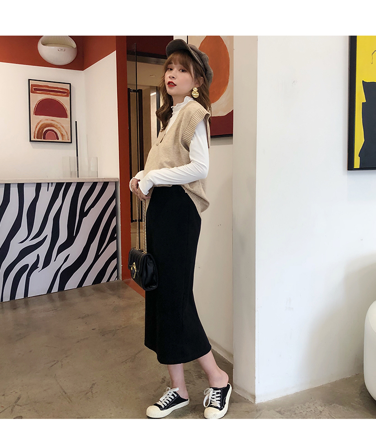2019秋冬新款a字裙春秋高腰中長款開叉半身裙韓版顯瘦一步包臀裙1入