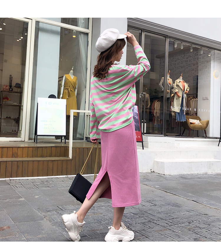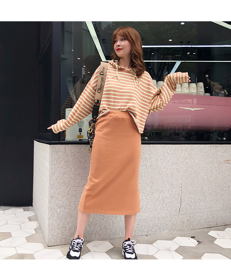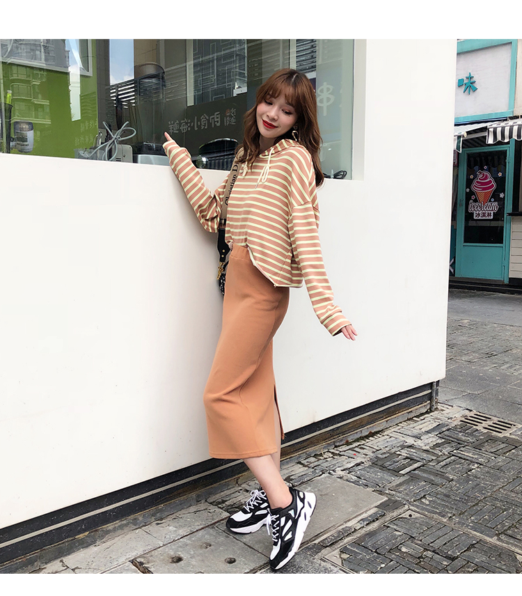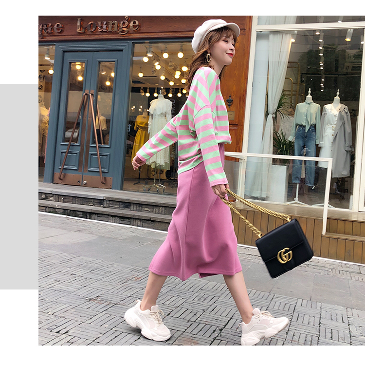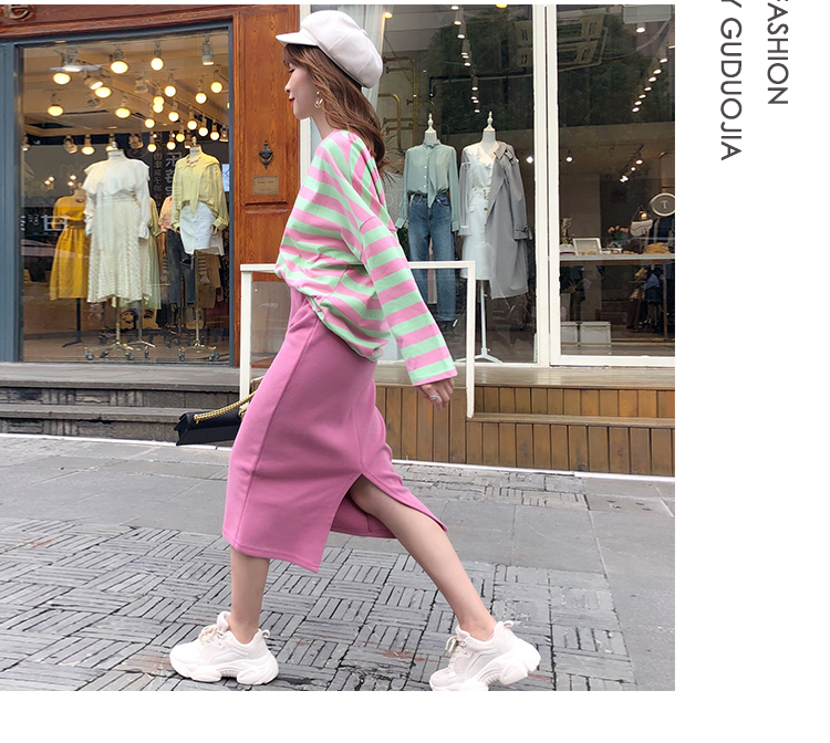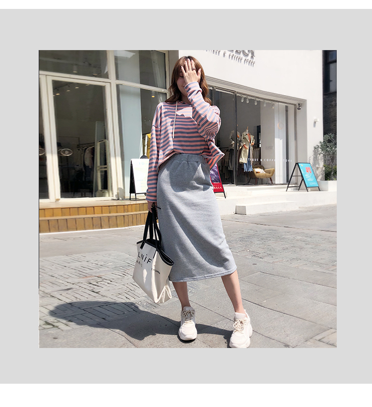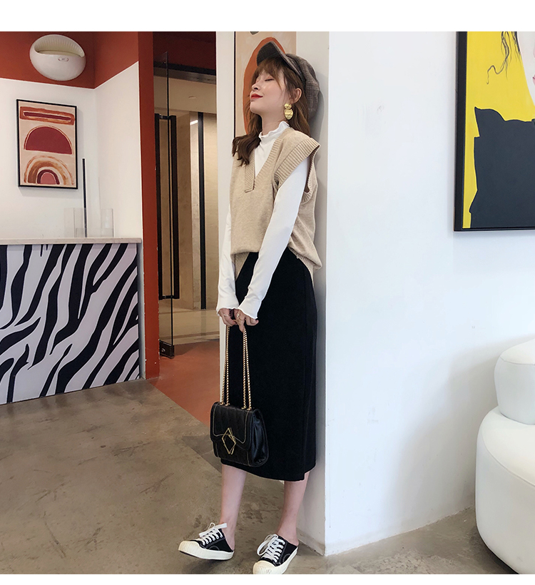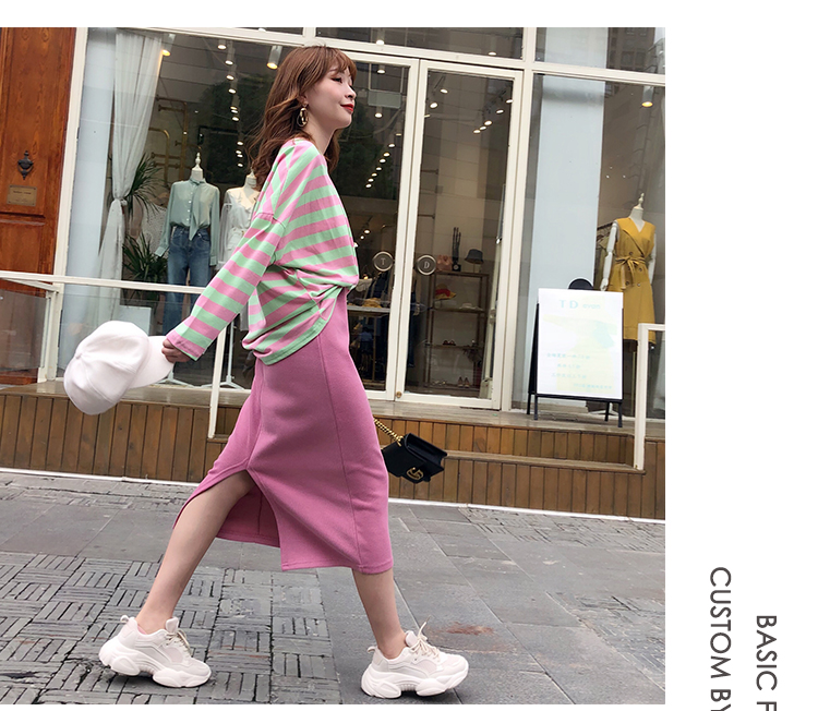 2019秋冬新款a字裙春秋高腰中長款開叉半身裙韓版顯瘦一步包臀裙1入