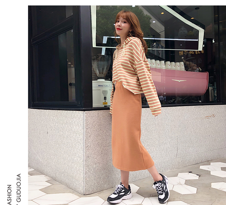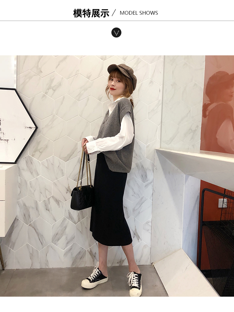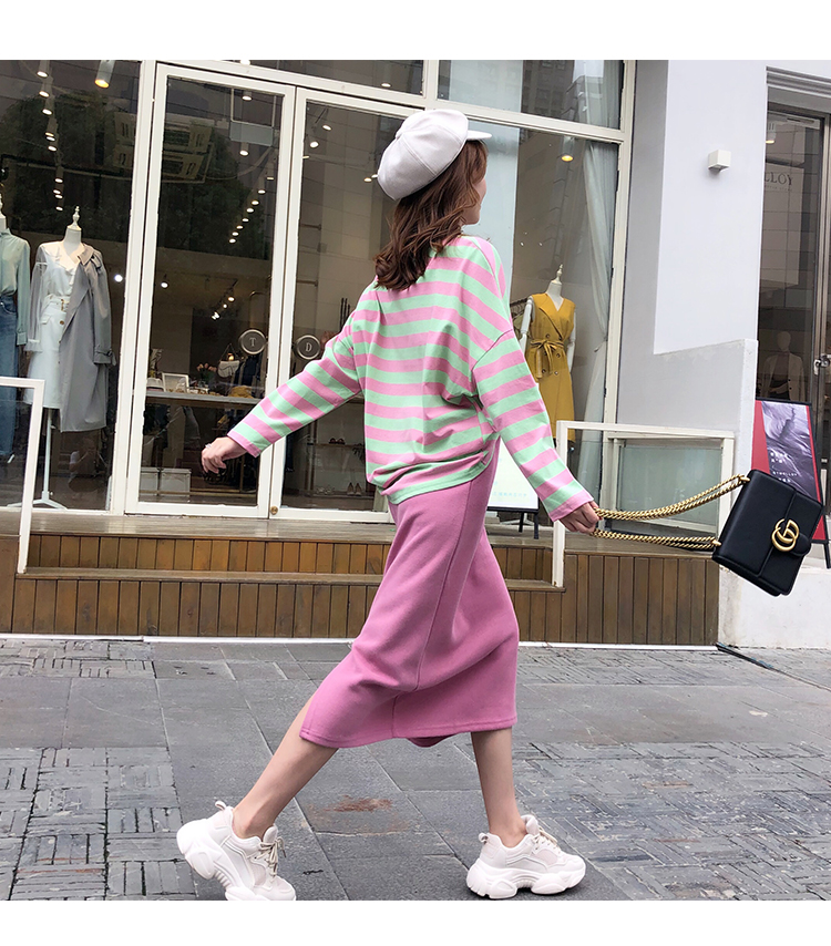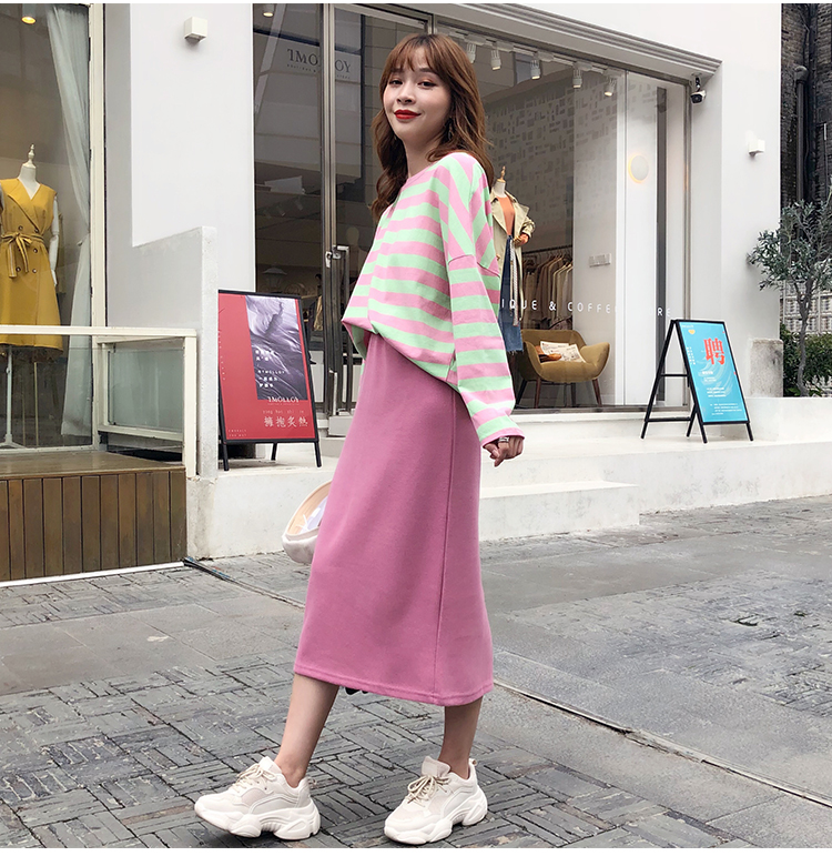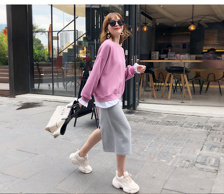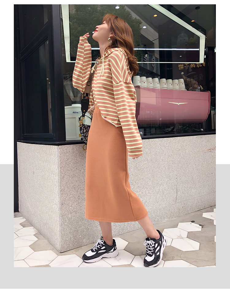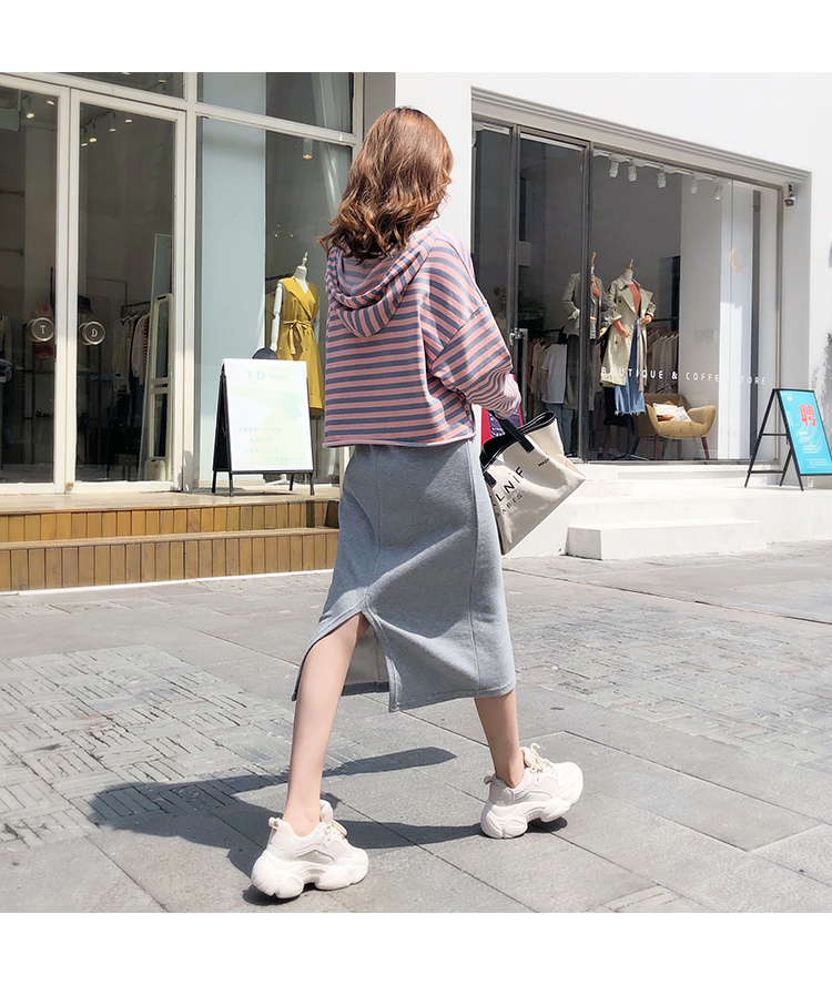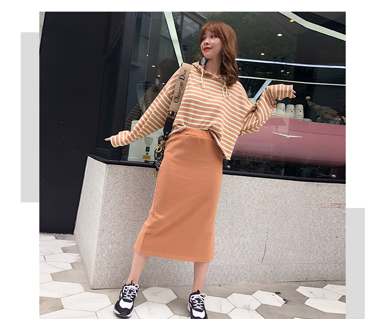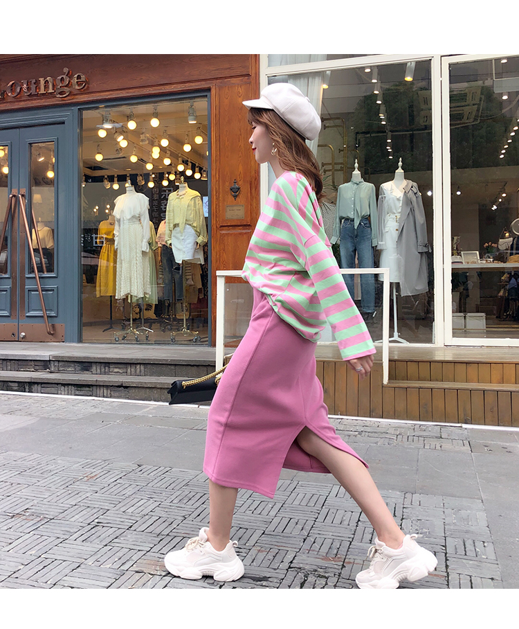 2019秋冬新款a字裙春秋高腰中長款開叉半身裙韓版顯瘦一步包臀裙1入