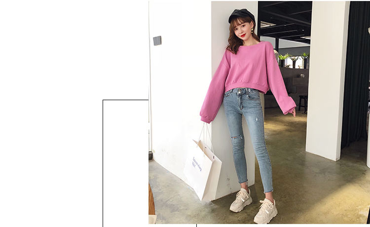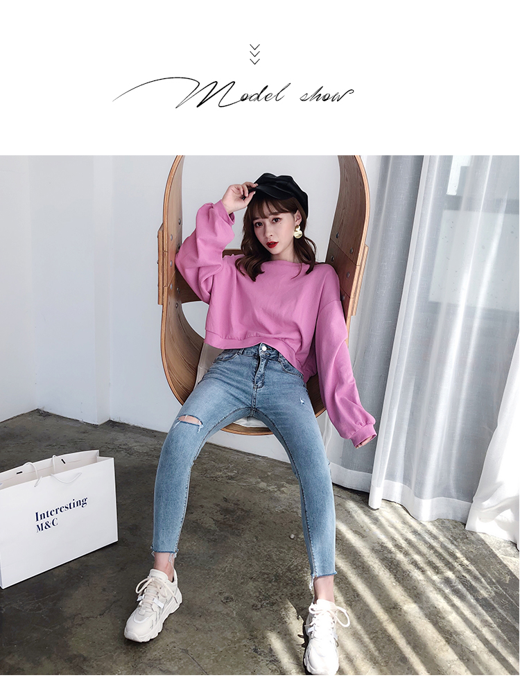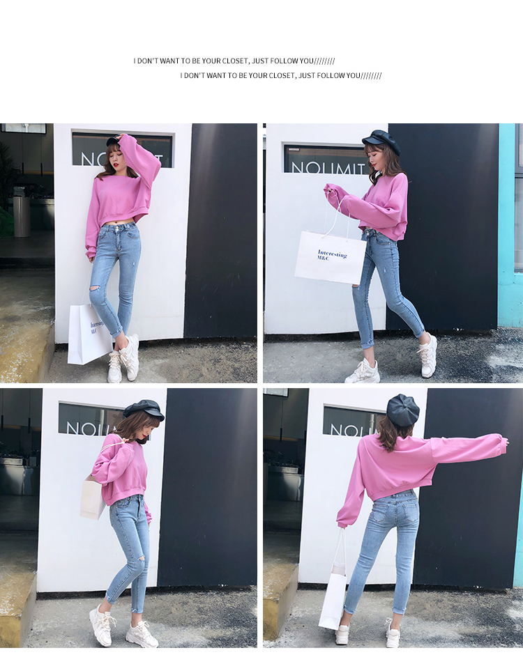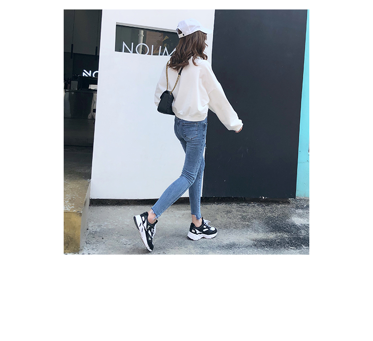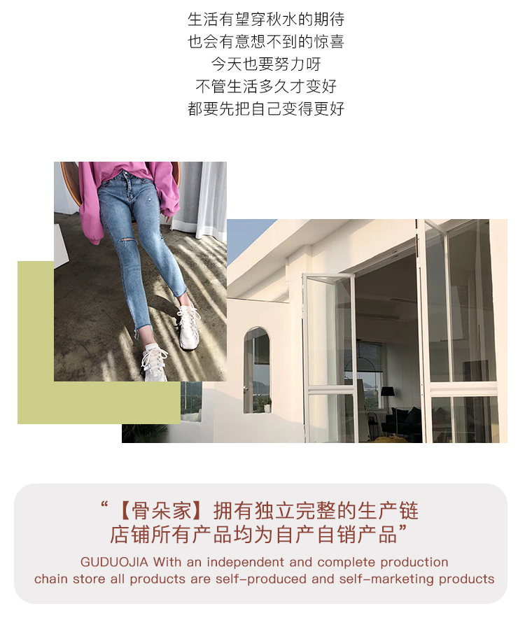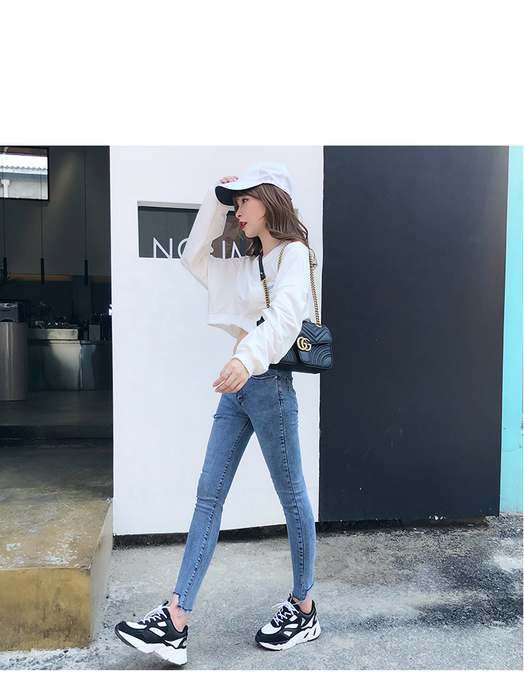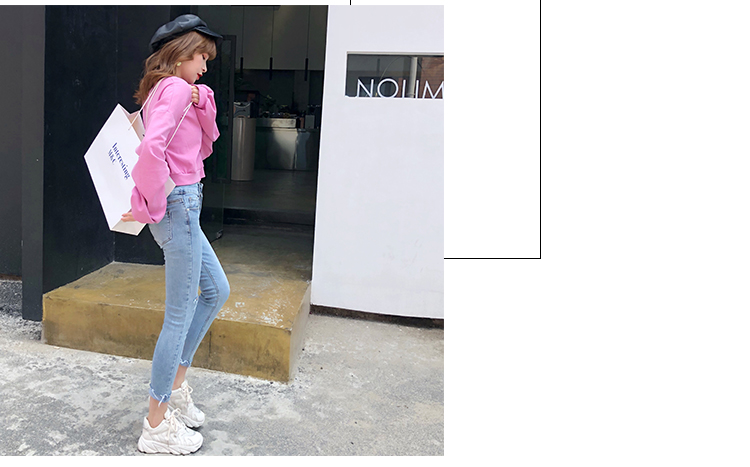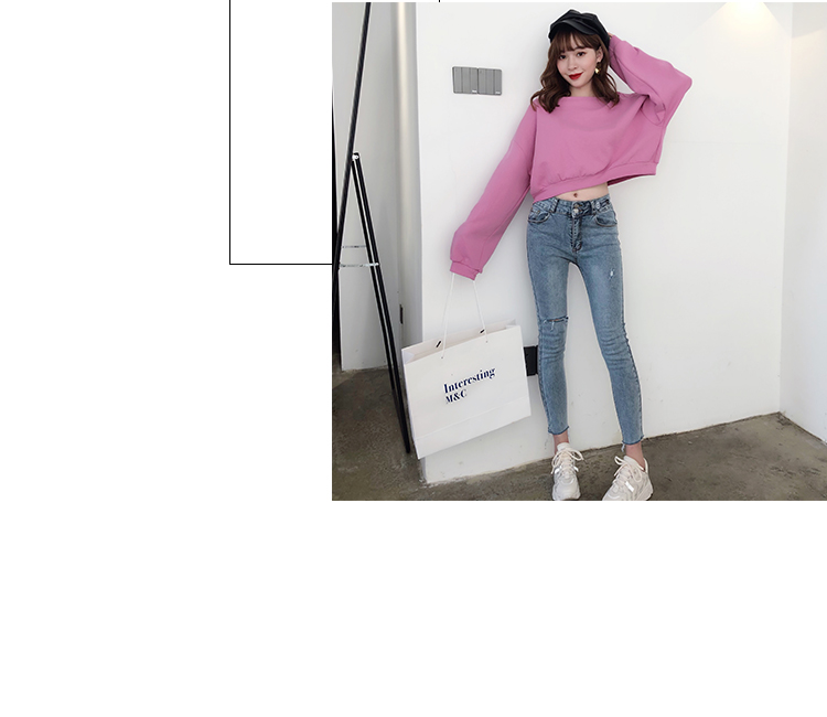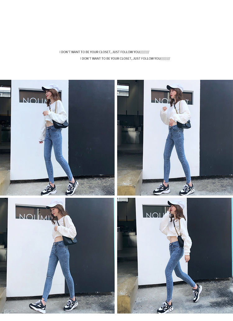 2019秋季新款破洞牛仔褲女高腰顯瘦九分小腳褲韓版緊身百搭鉛筆褲1入