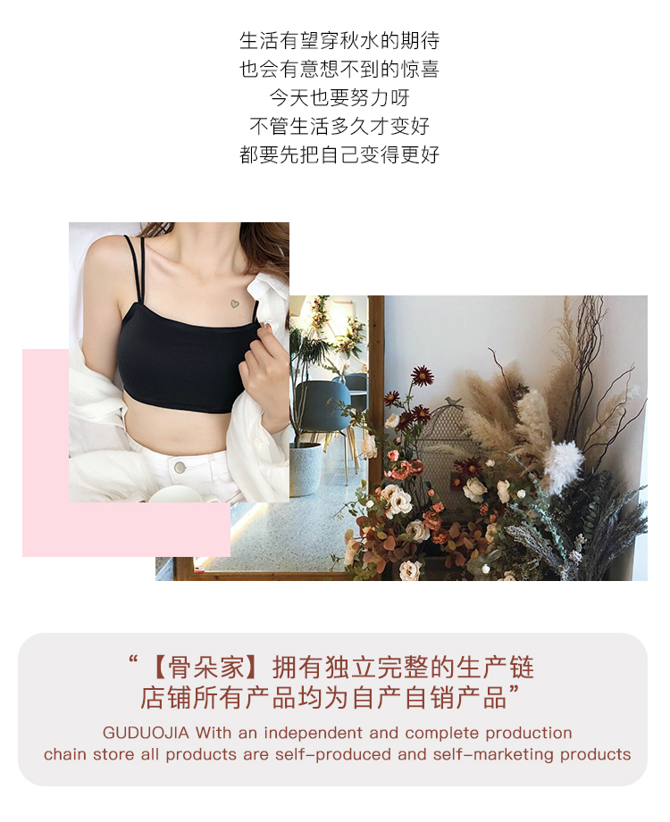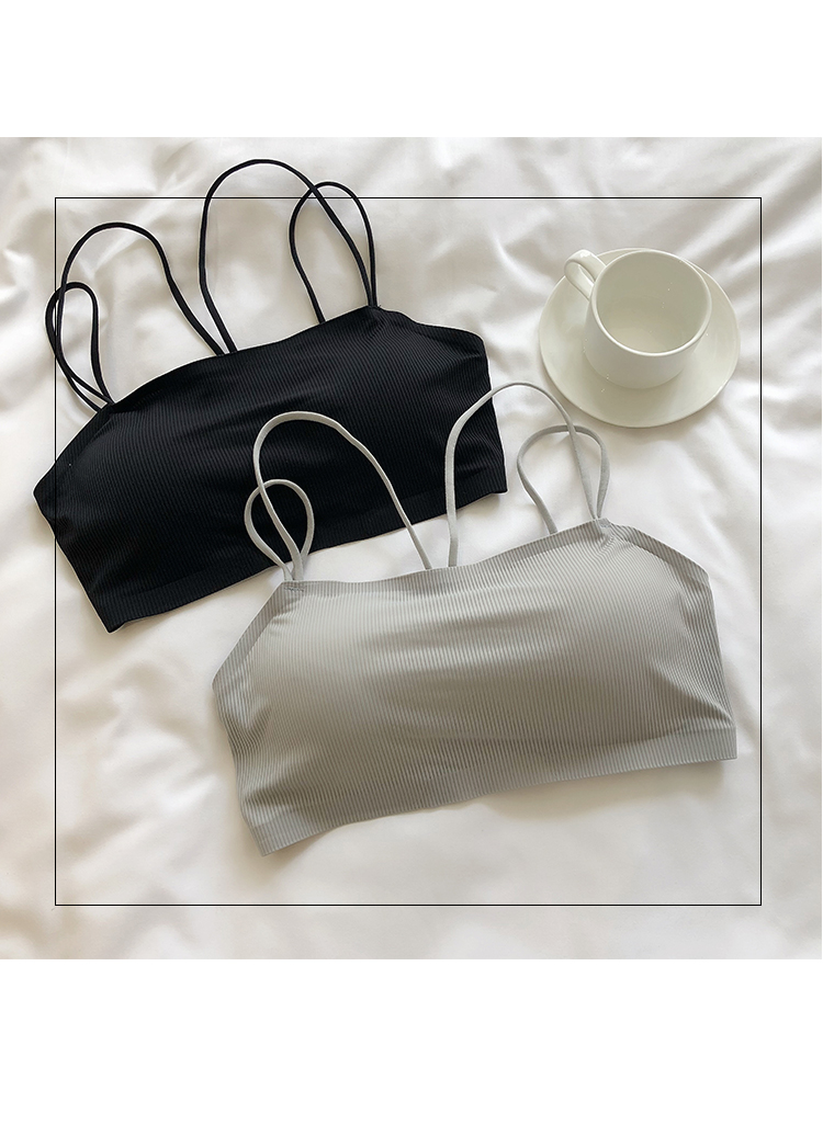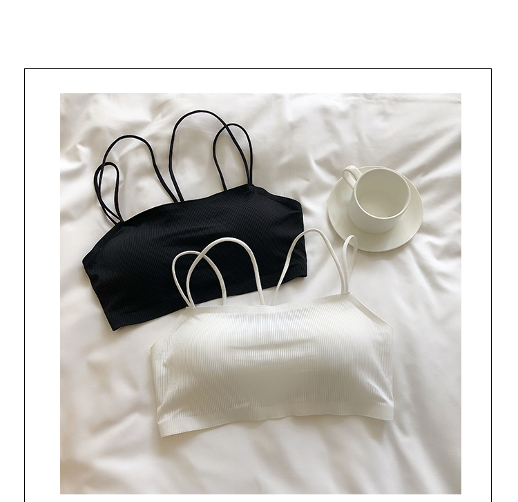 黑色裹胸搭衣女外穿冰絲美背抹胸上衣內搭白色短款小吊帶學生內衣1入