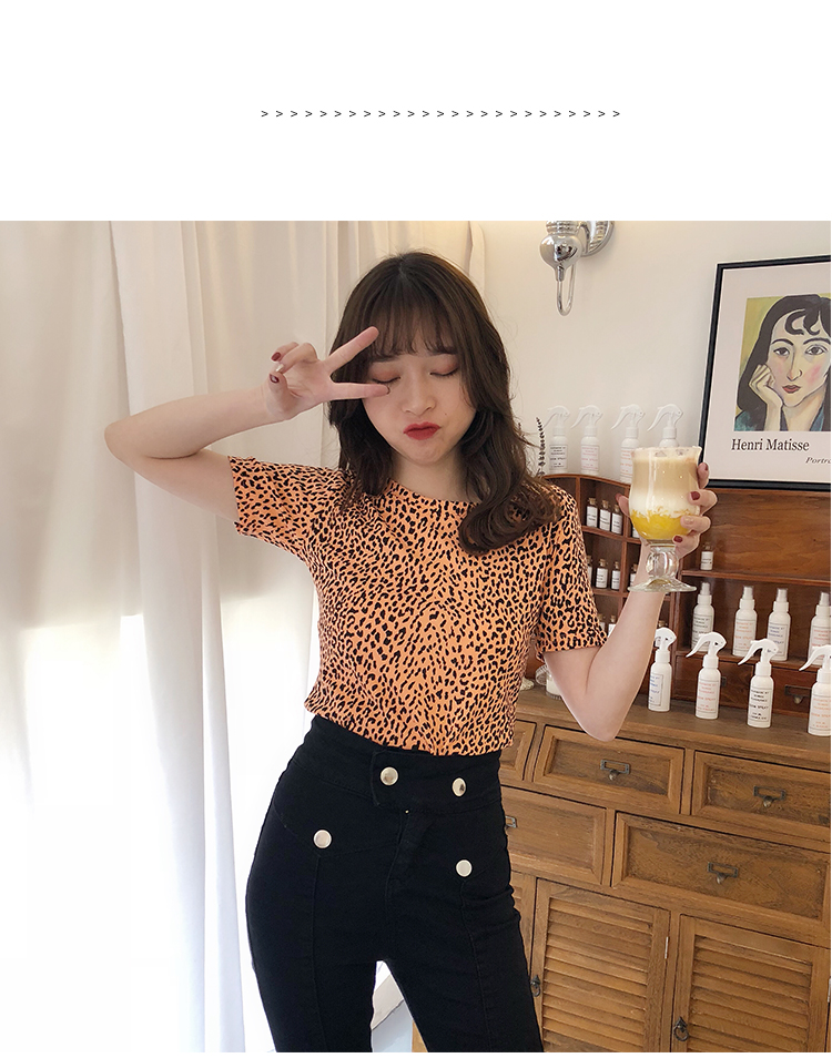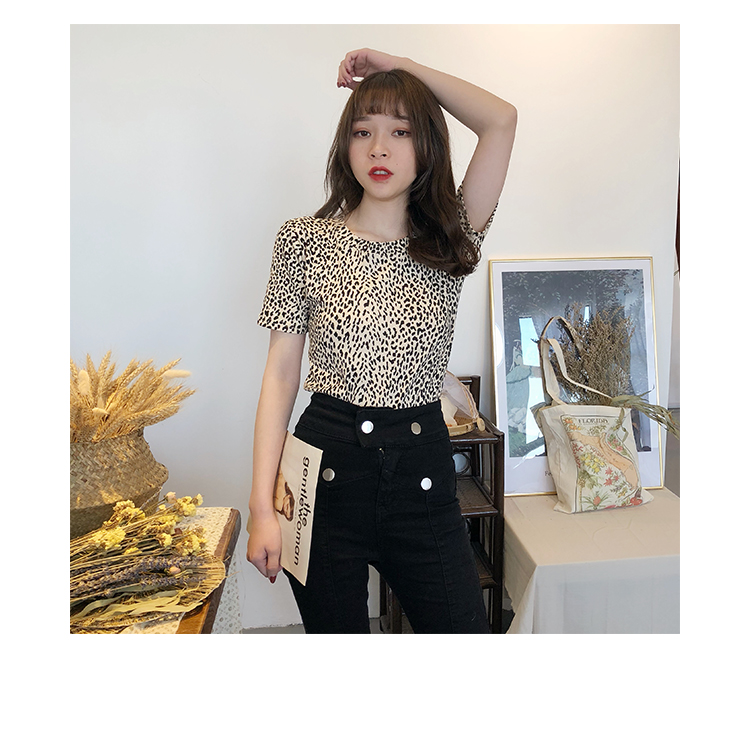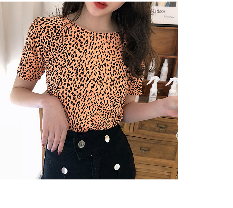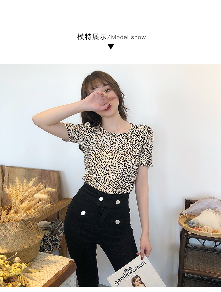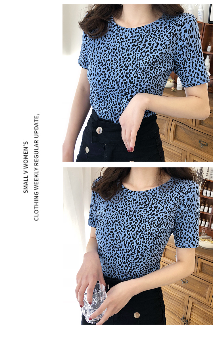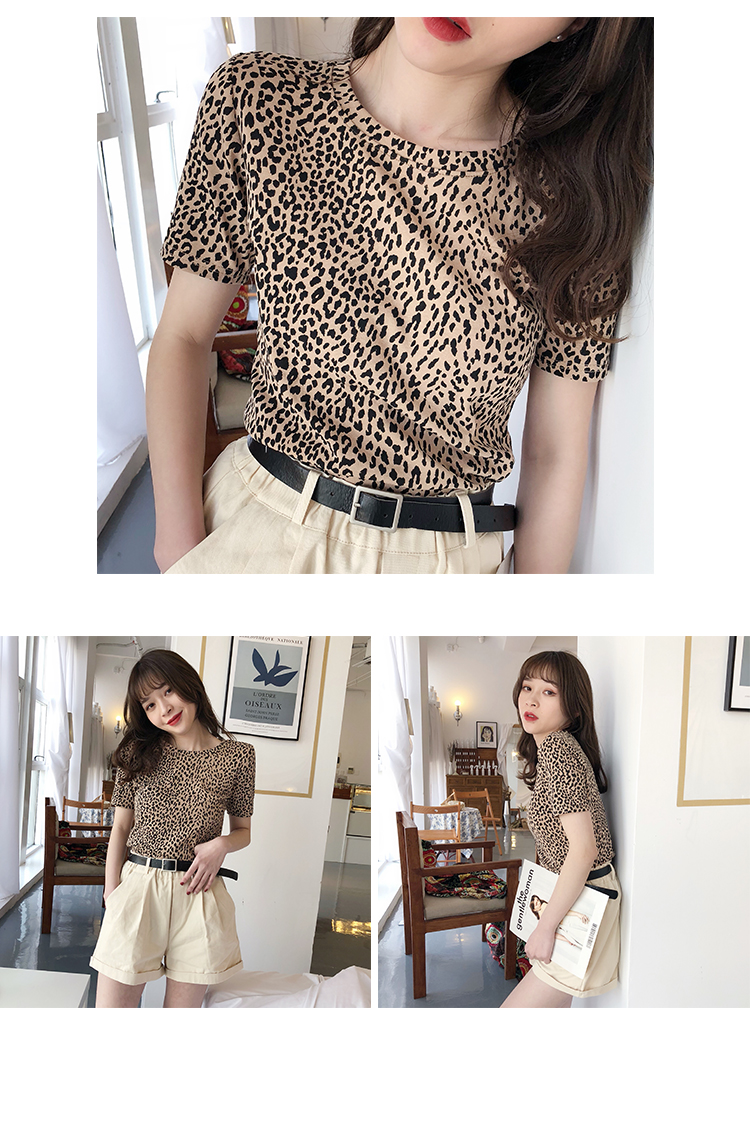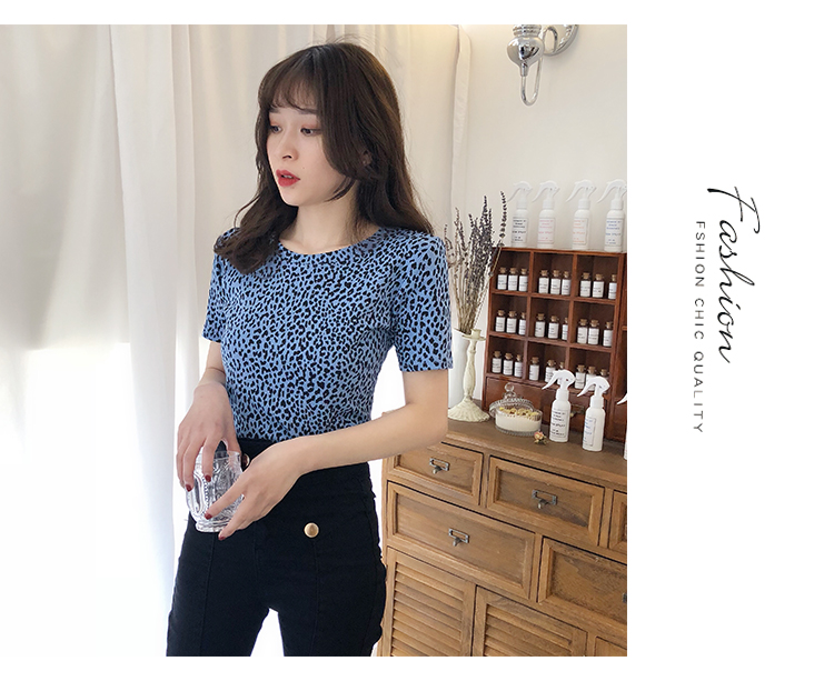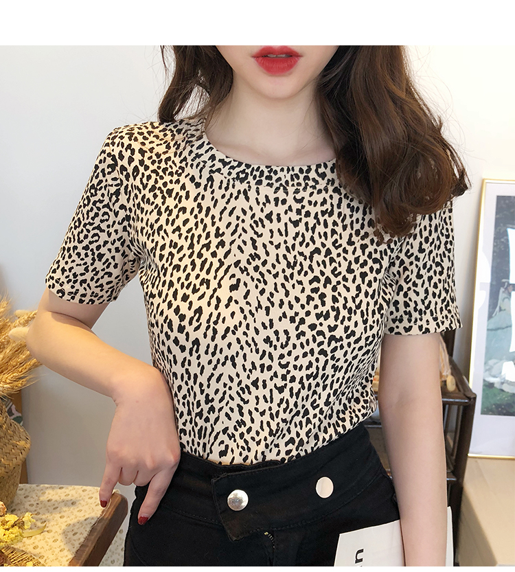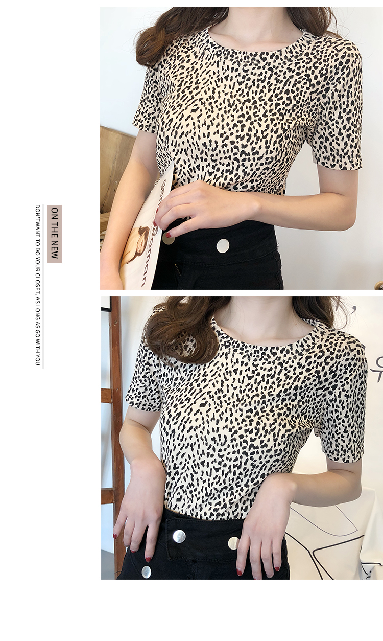 2019春裝新款洋氣豹紋短袖T恤女網紅韓版百搭修身打底衫ins潮上衣1入