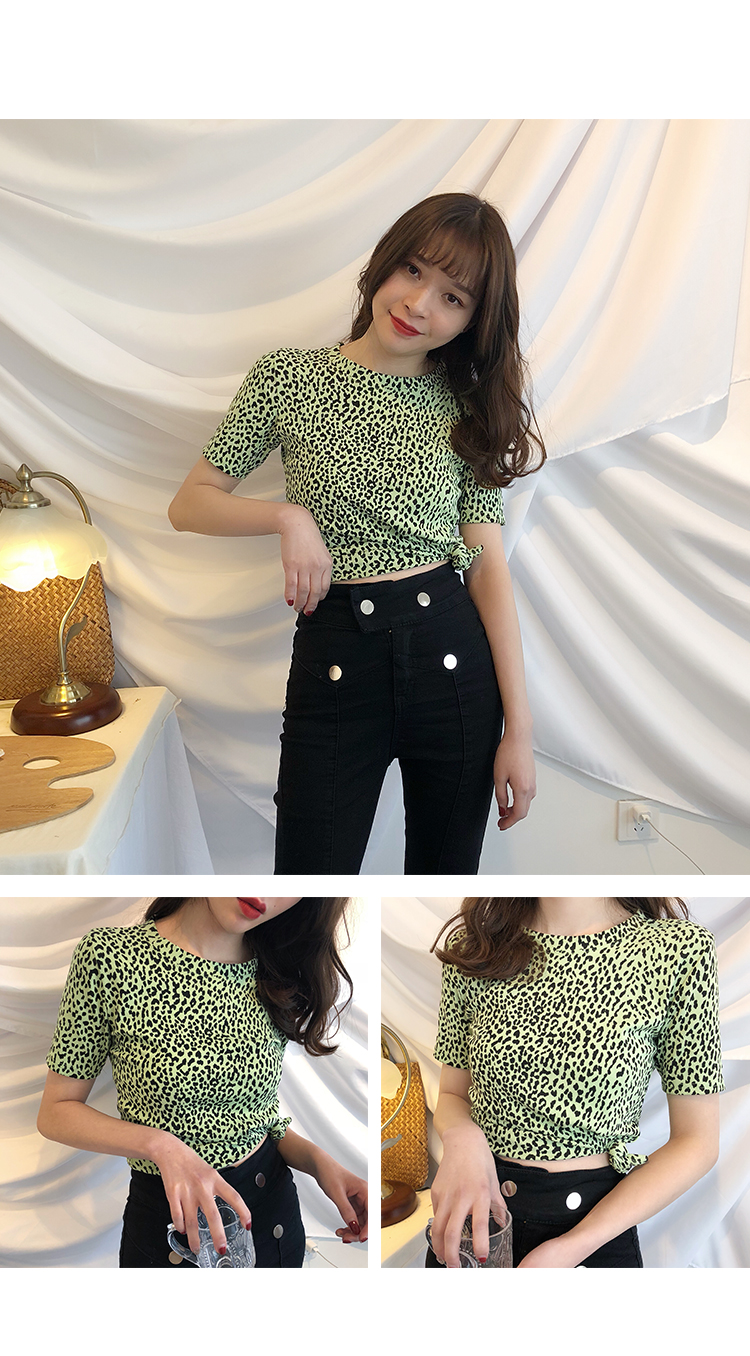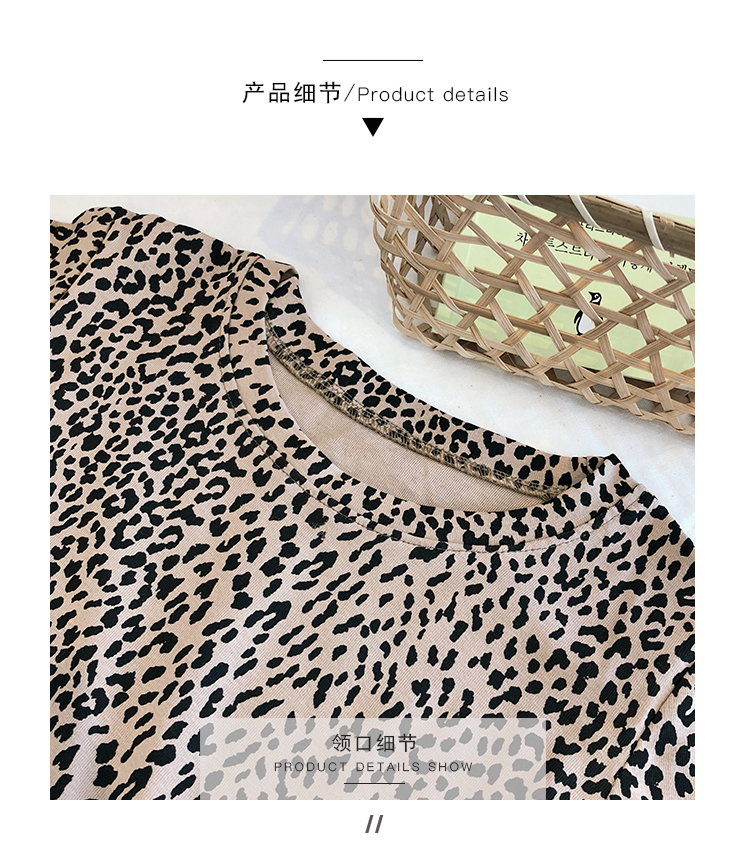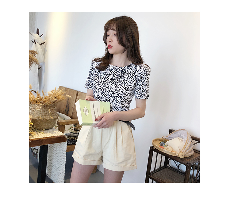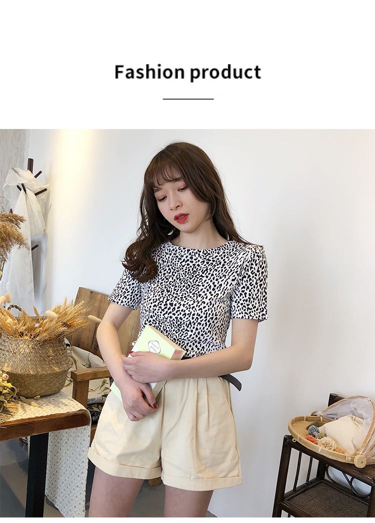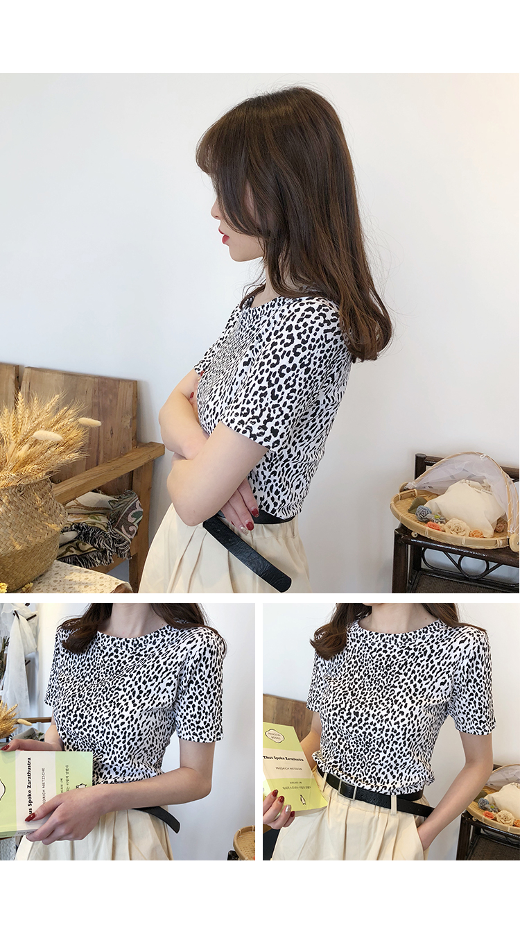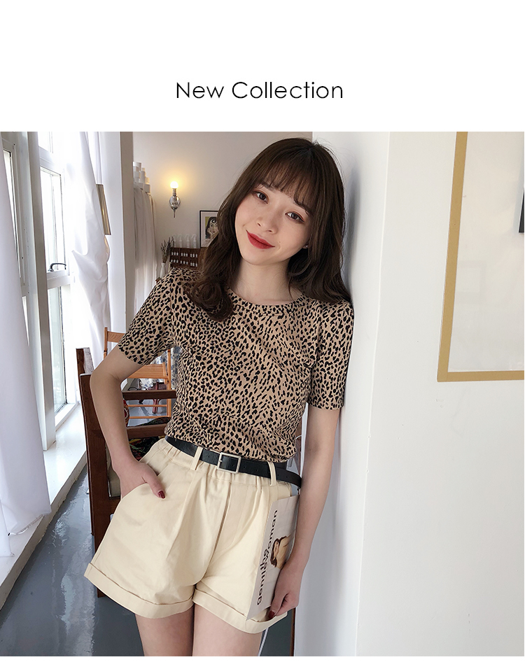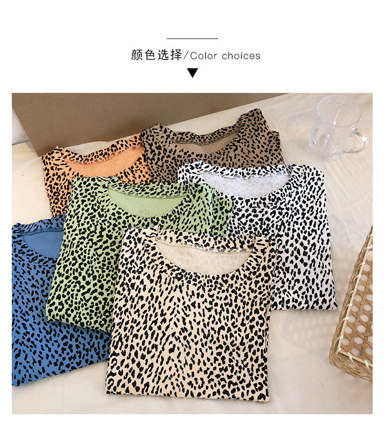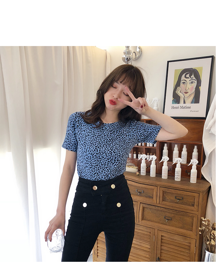 2019春裝新款洋氣豹紋短袖T恤女網紅韓版百搭修身打底衫ins潮上衣1入