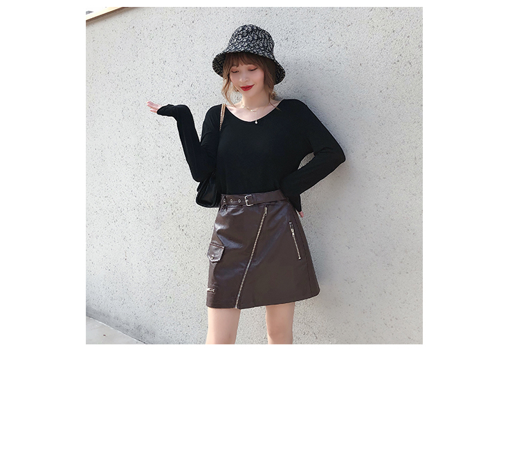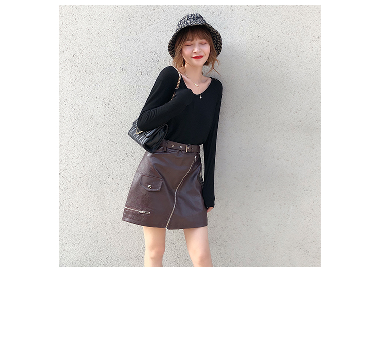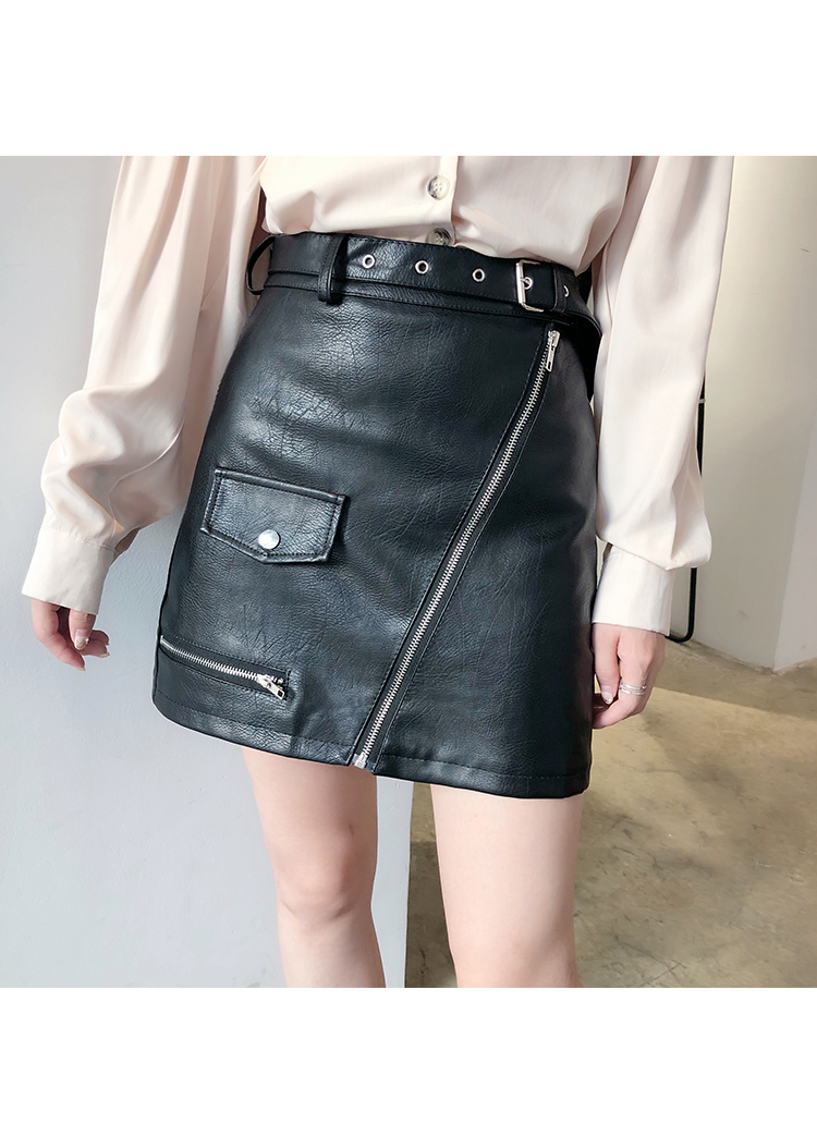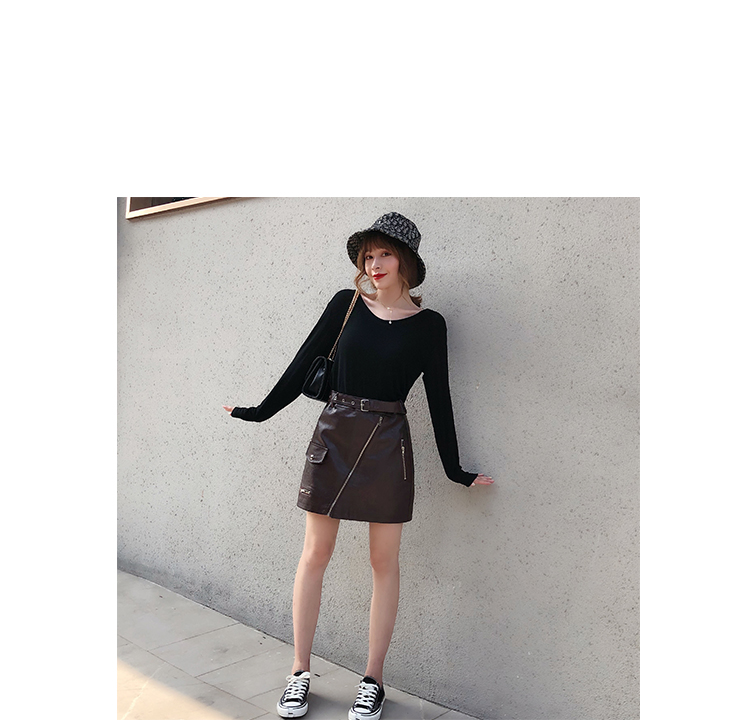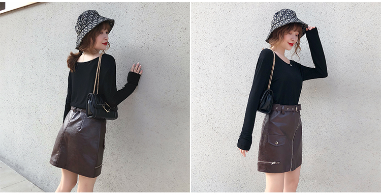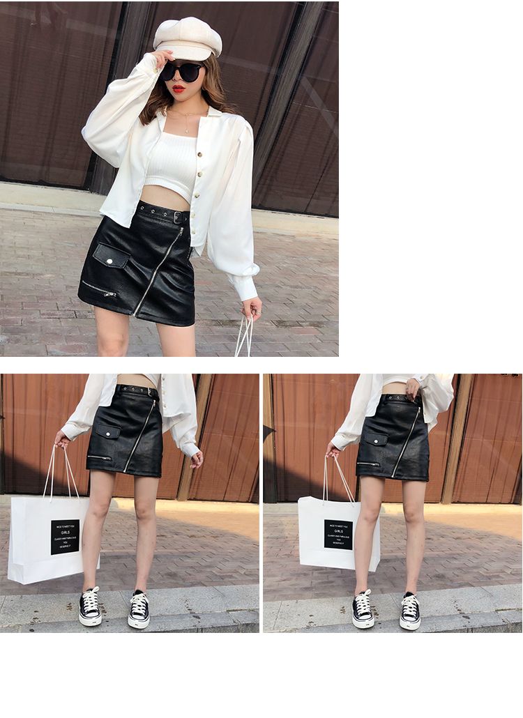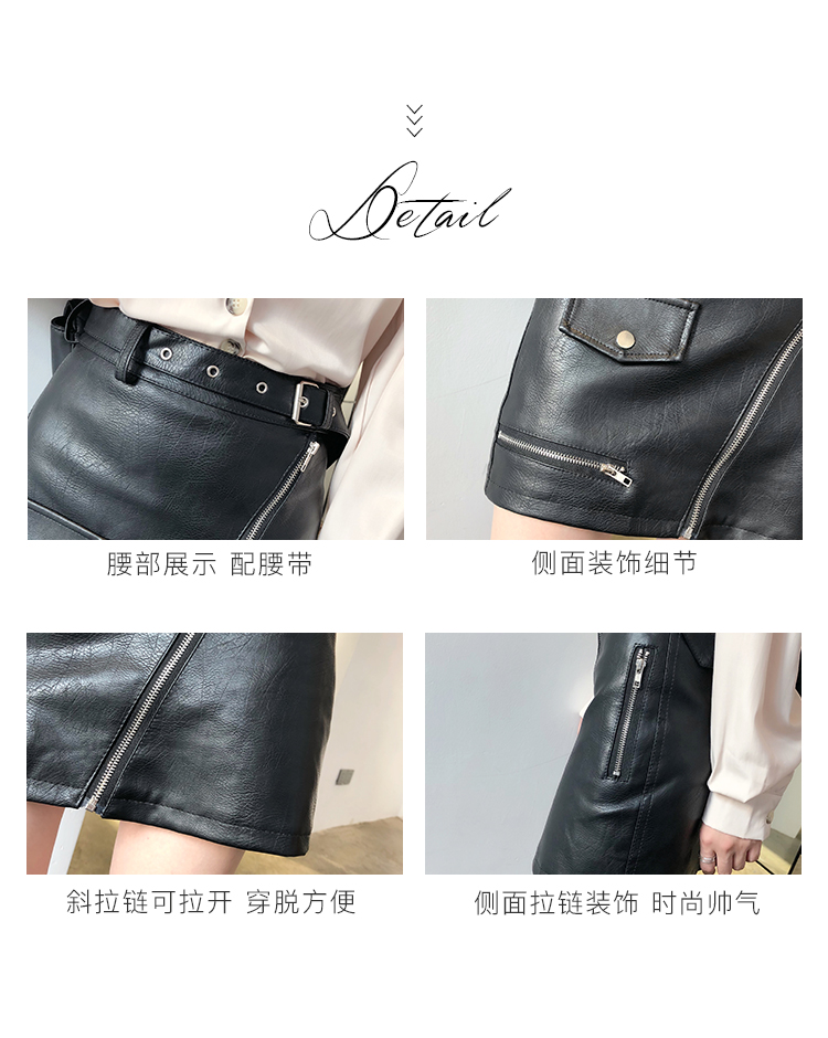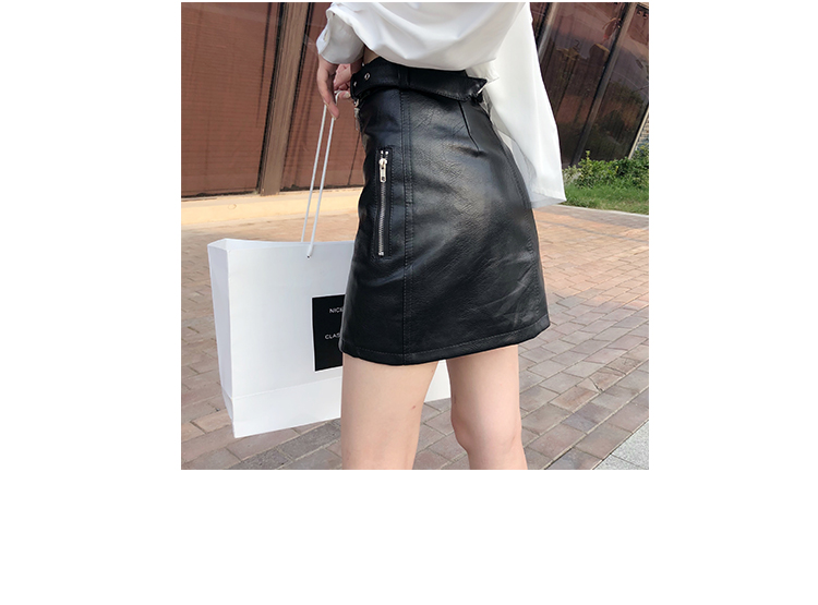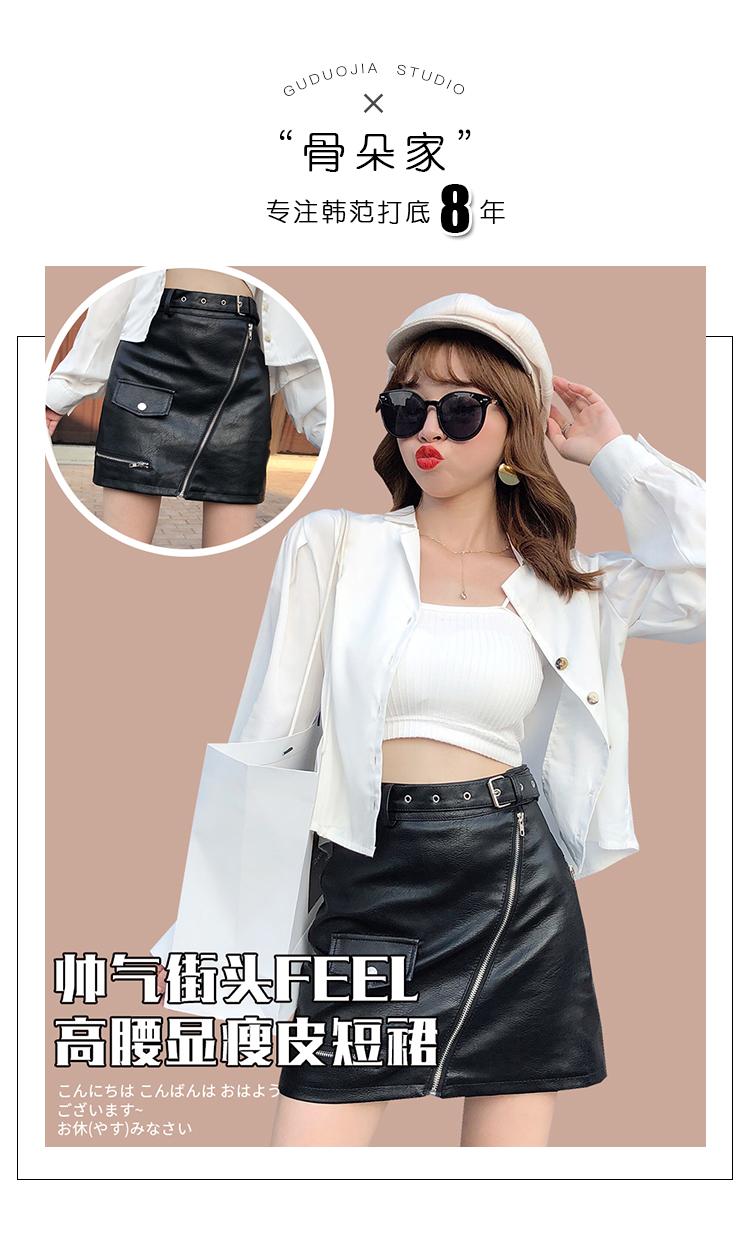 2019秋冬新款高腰顯瘦a字裙復古百搭皮裙半身裙黑色短裙包臀半裙1入