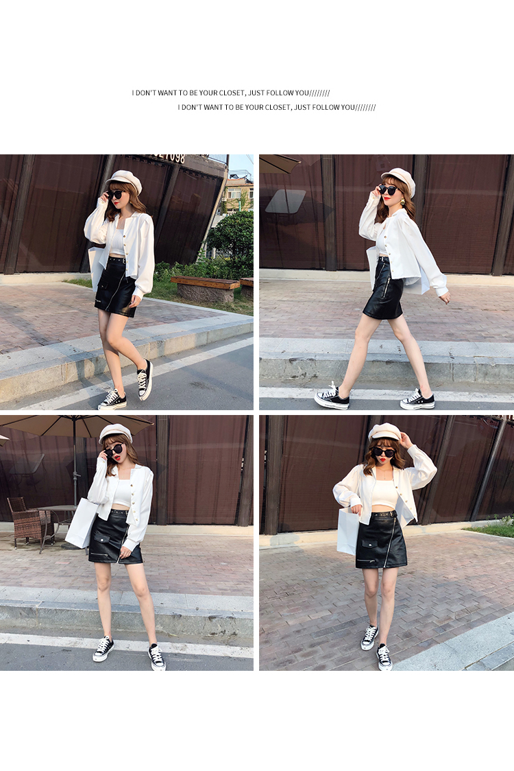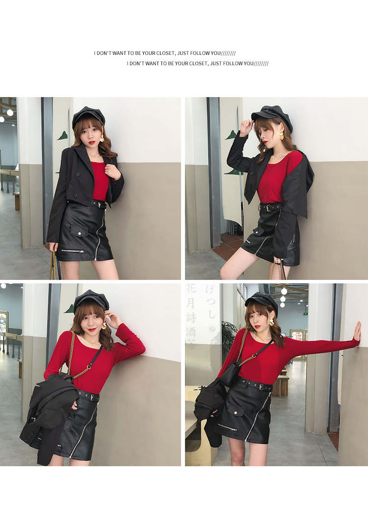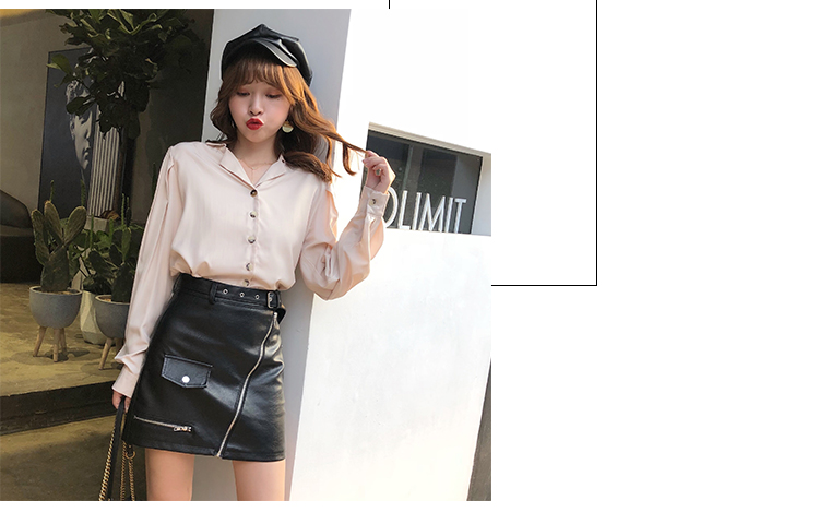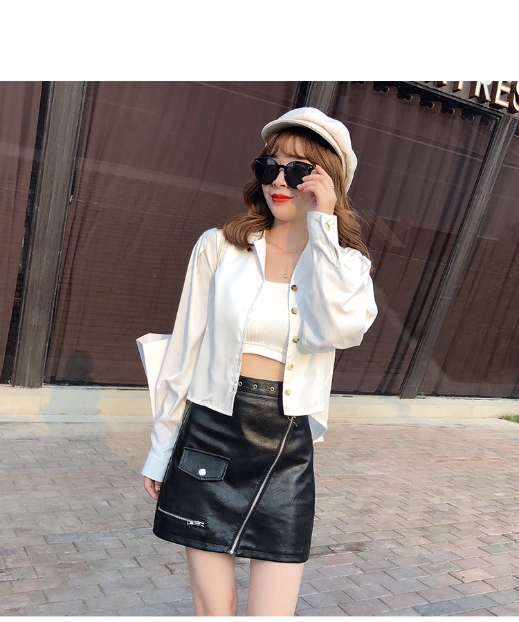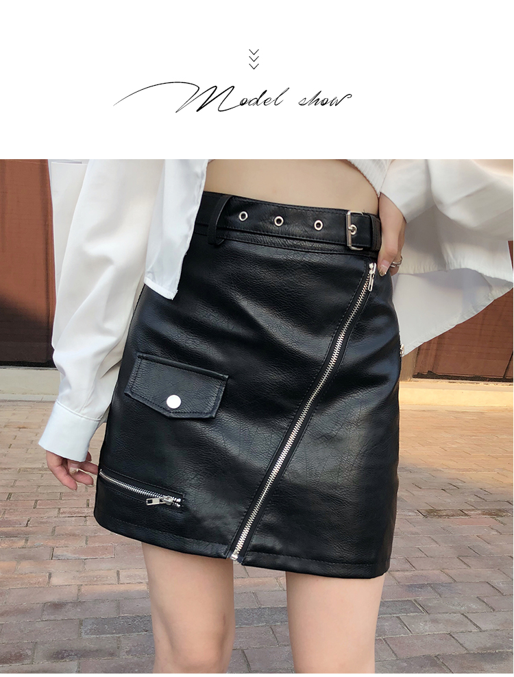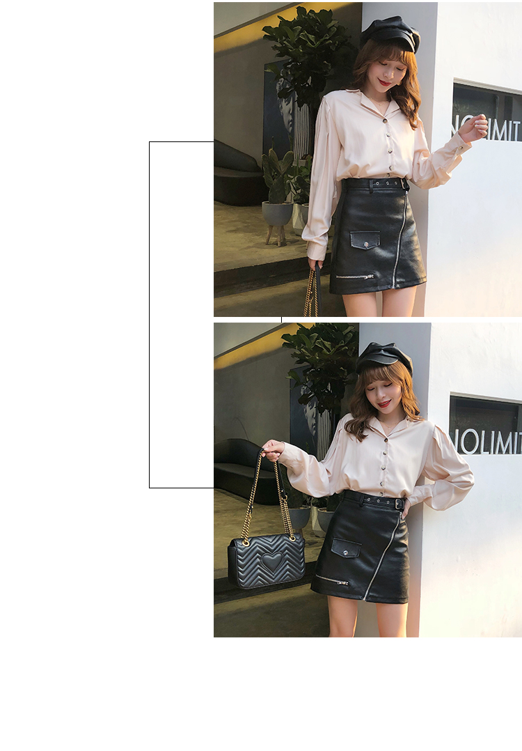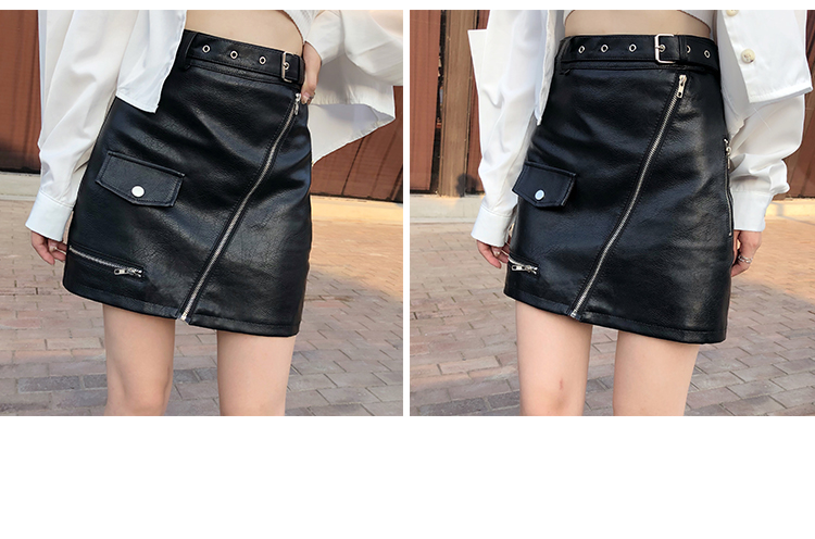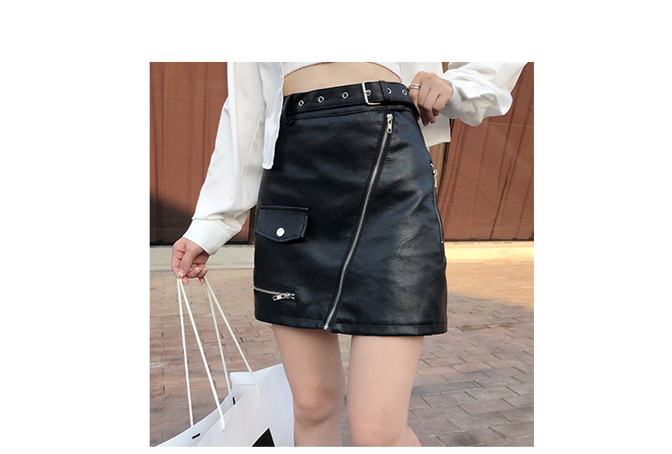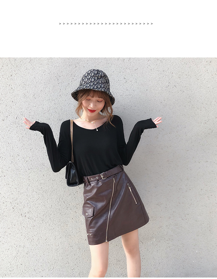 2019秋冬新款高腰顯瘦a字裙復古百搭皮裙半身裙黑色短裙包臀半裙1入