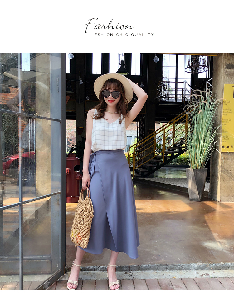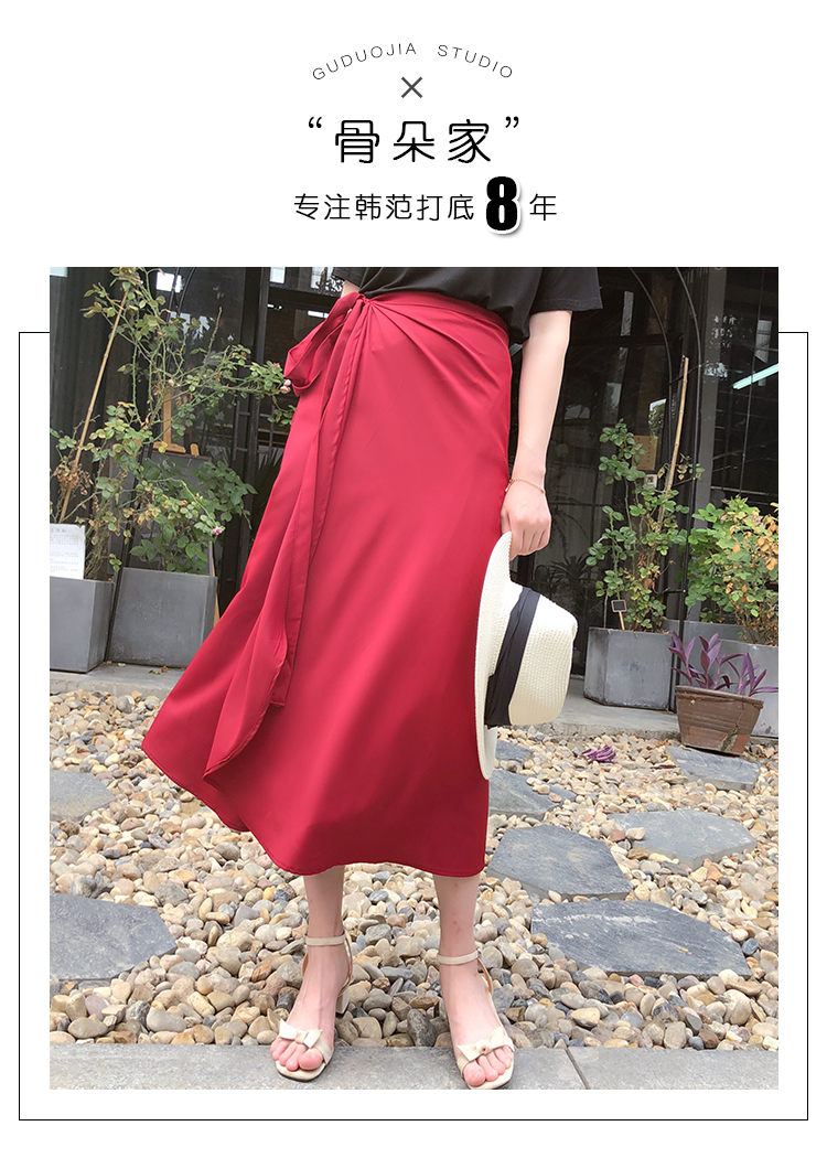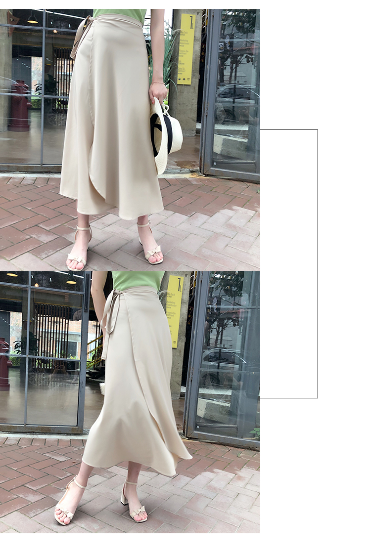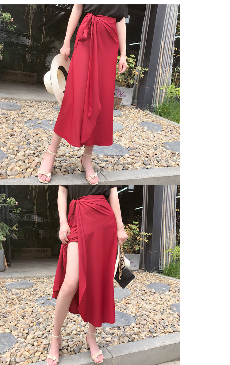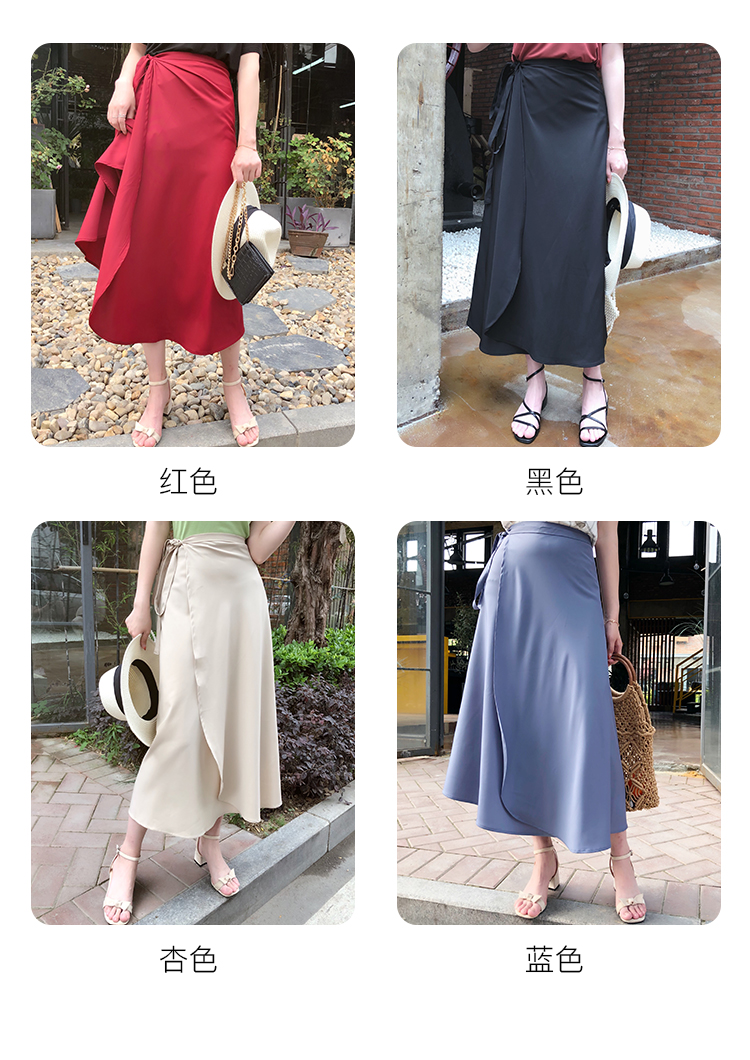 海邊度假沙灘裙女一片式系帶緞面雪紡半身裙高腰顯瘦大擺裙長裙夏1入