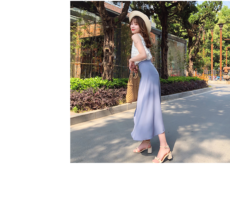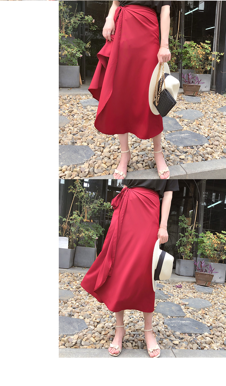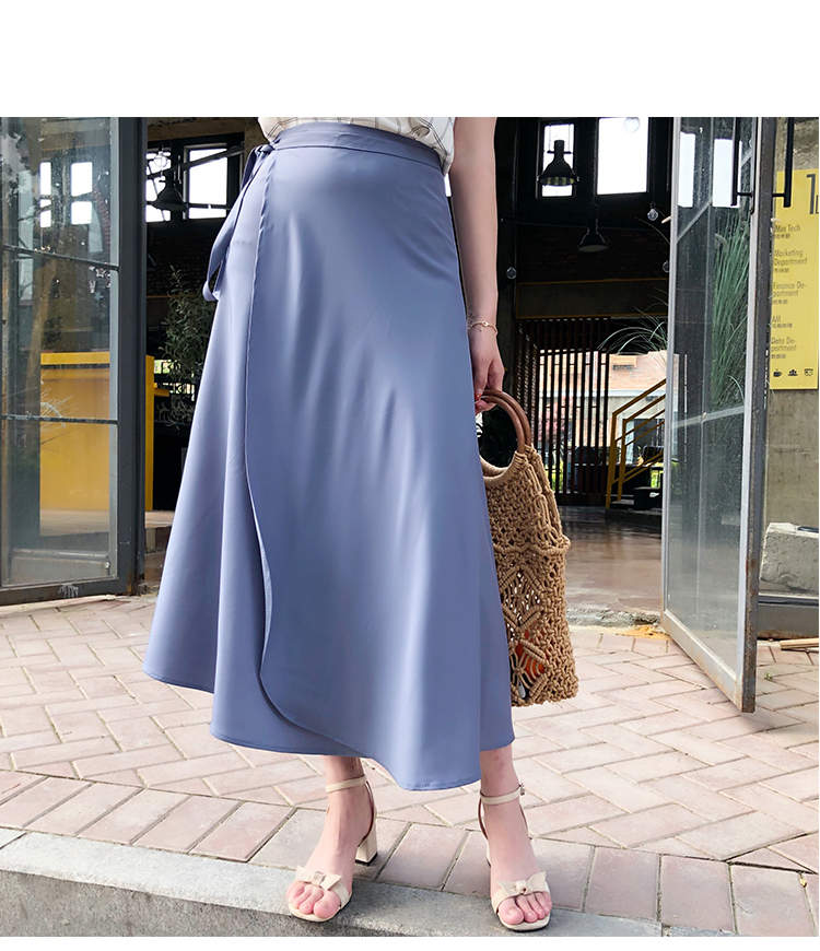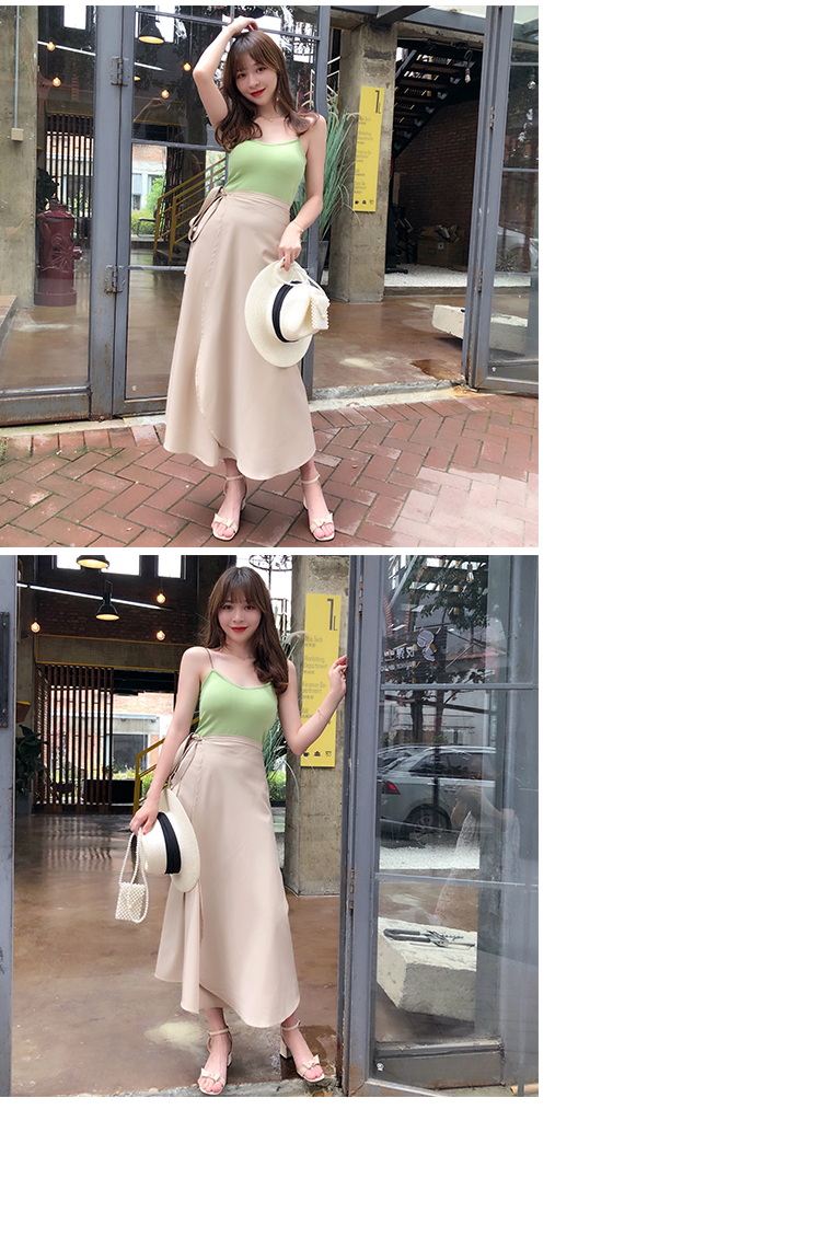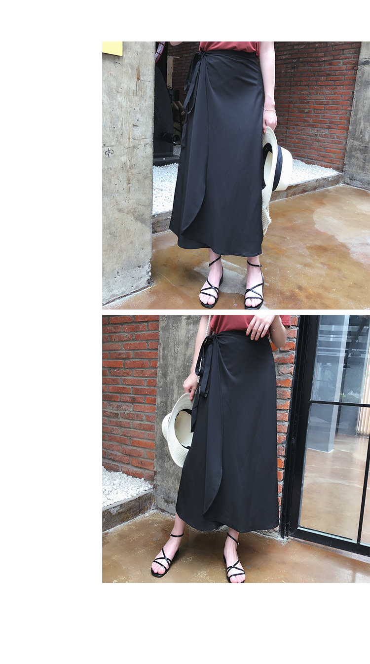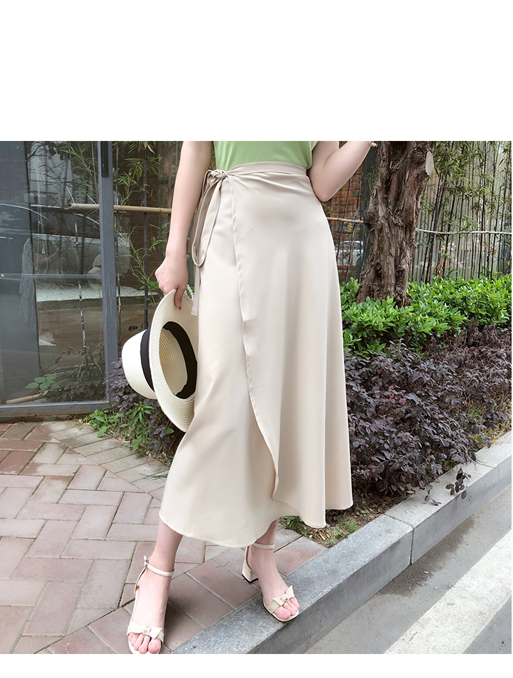 海邊度假沙灘裙女一片式系帶緞面雪紡半身裙高腰顯瘦大擺裙長裙夏1入