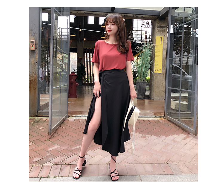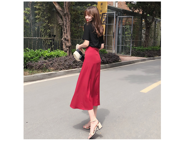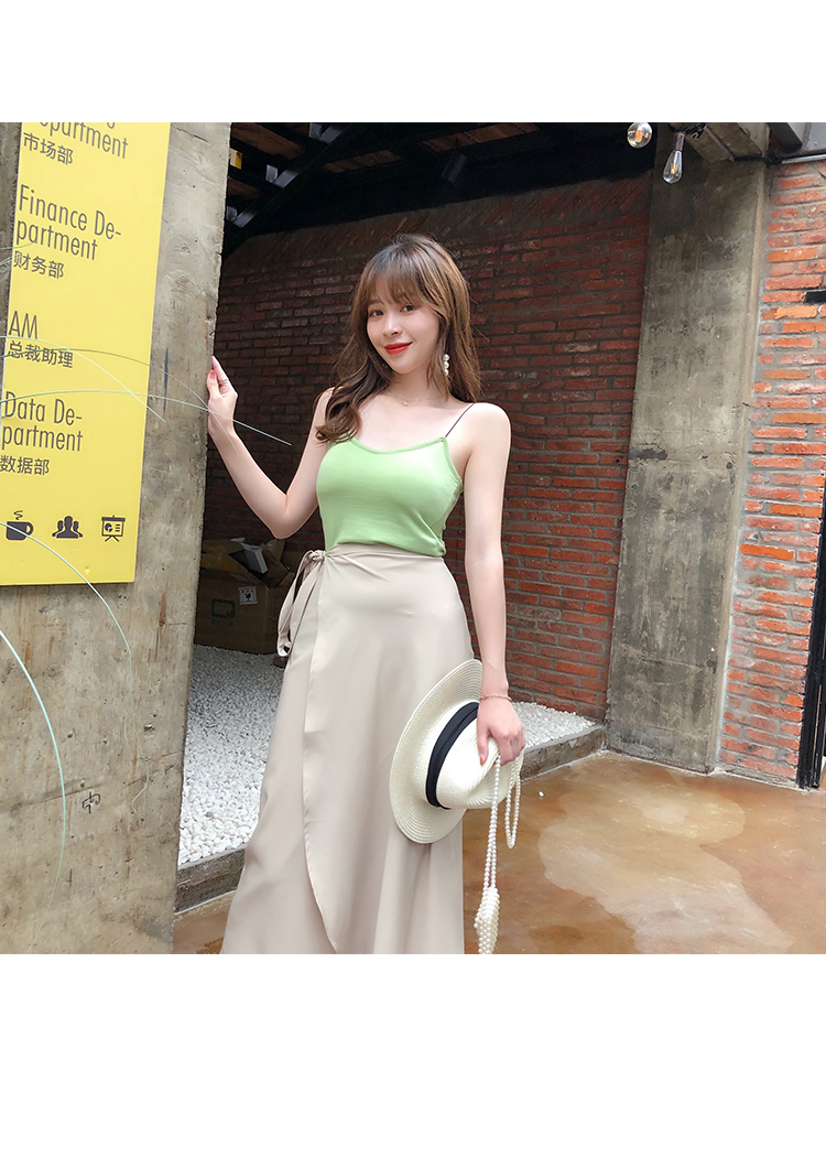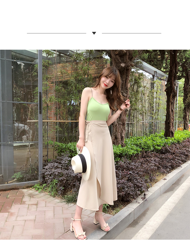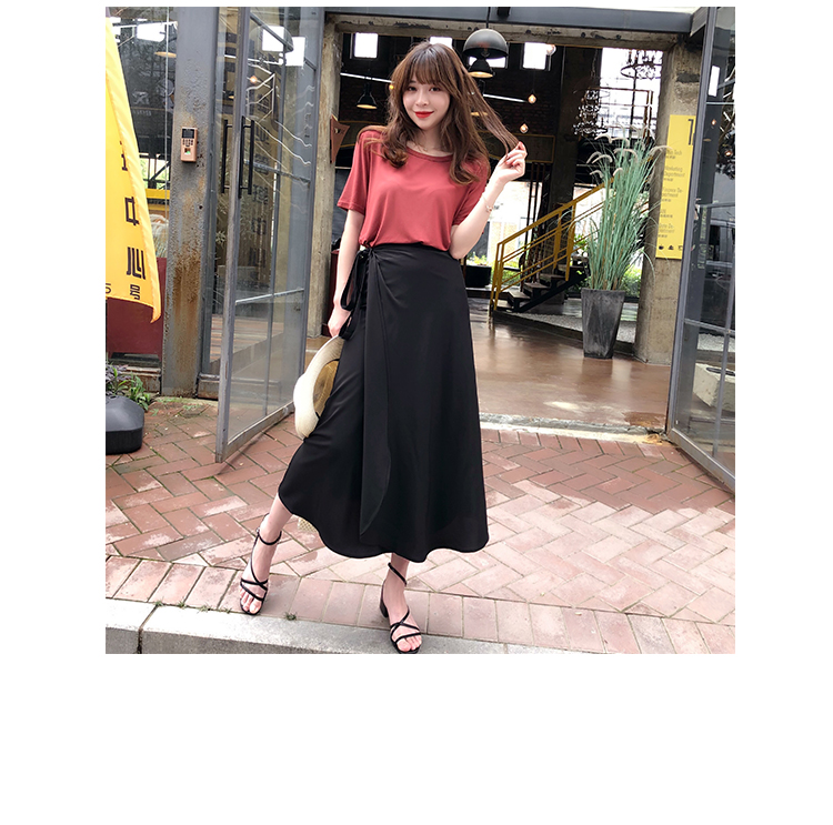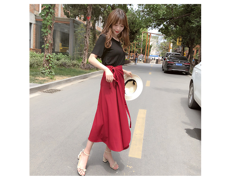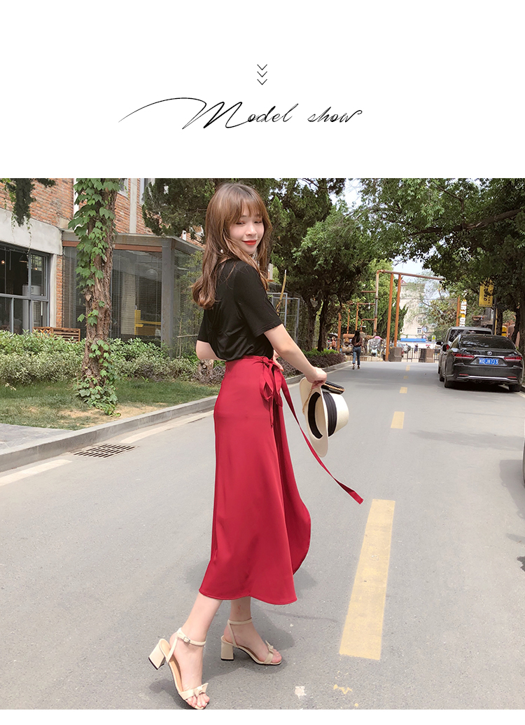 海邊度假沙灘裙女一片式系帶緞面雪紡半身裙高腰顯瘦大擺裙長裙夏1入