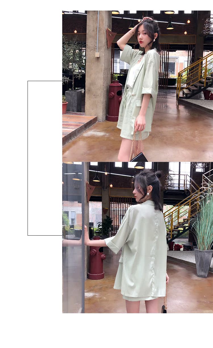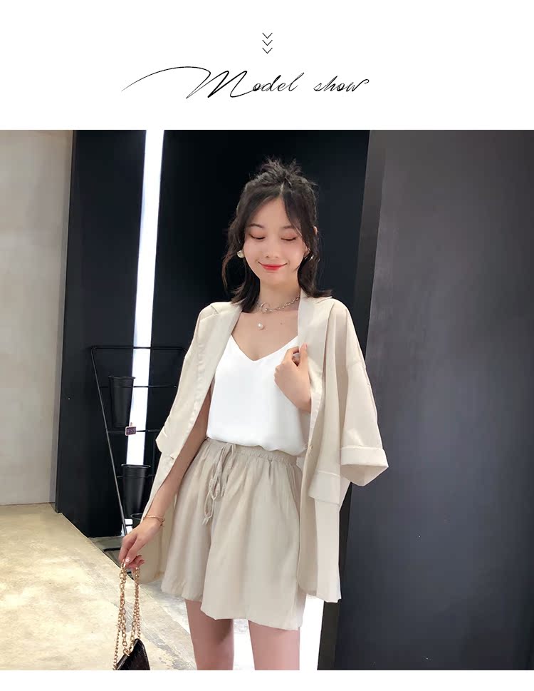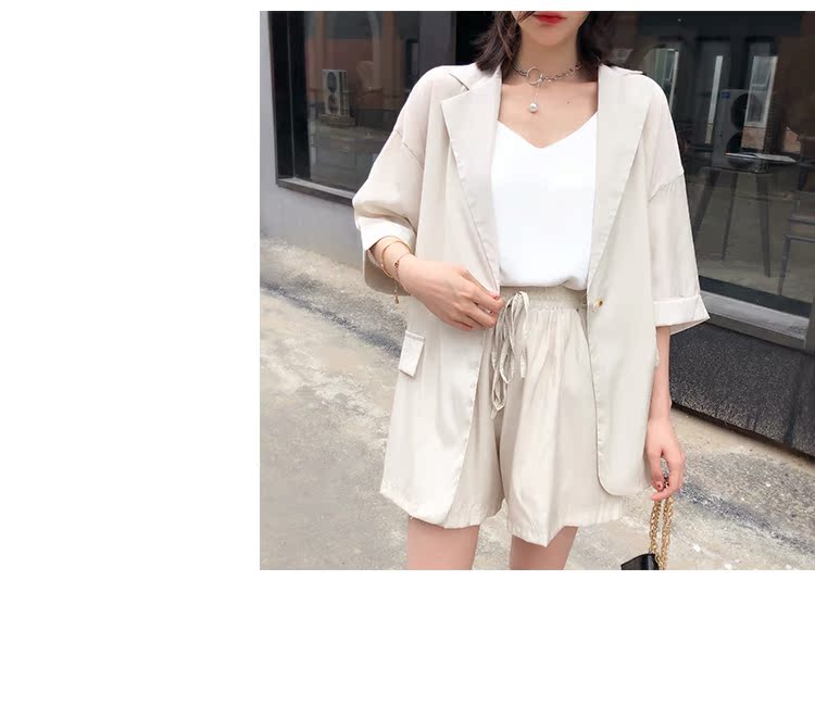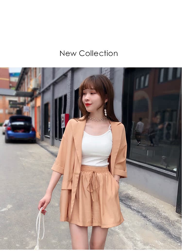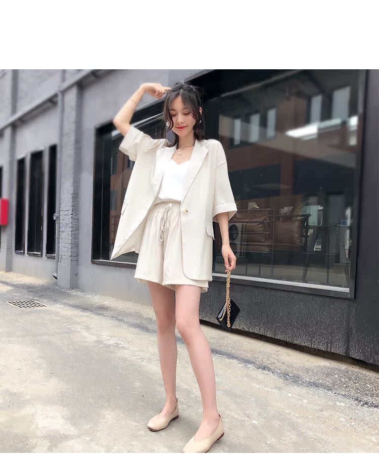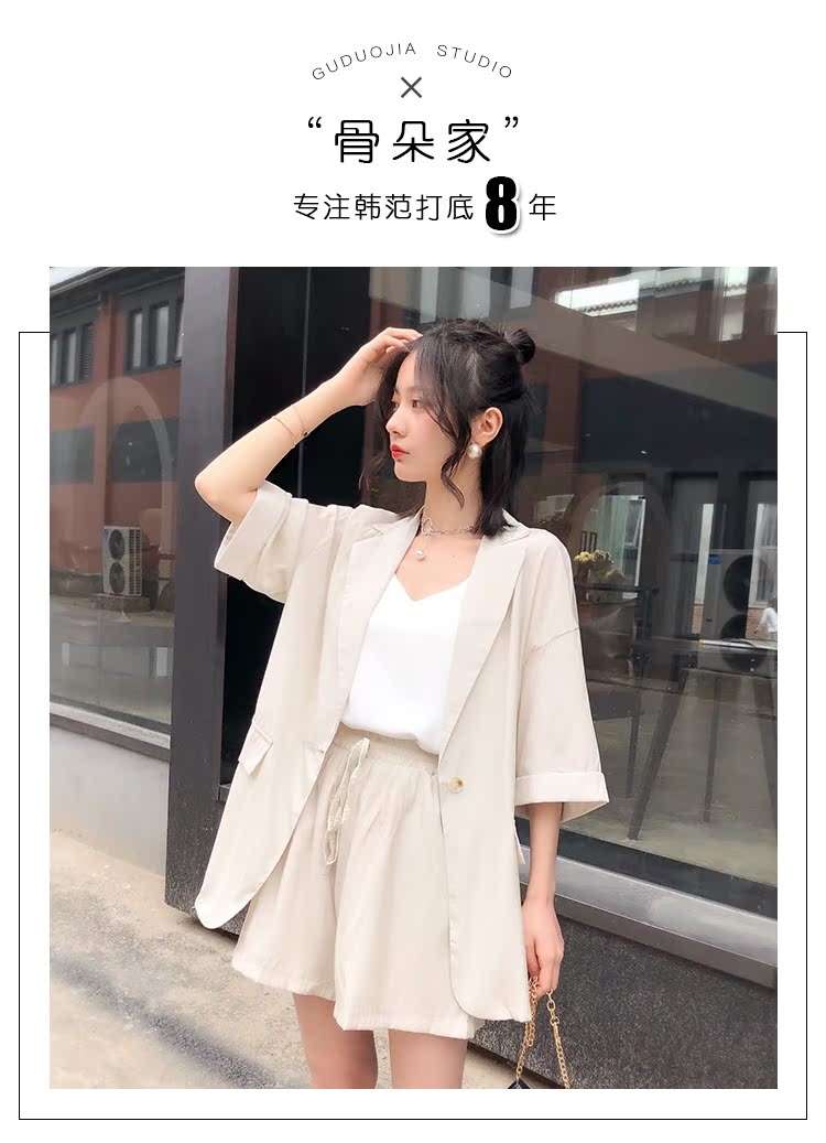骨朵家 網紅西服兩件套女2019新款韓版洋氣顯瘦西裝闊腿短褲套裝1入