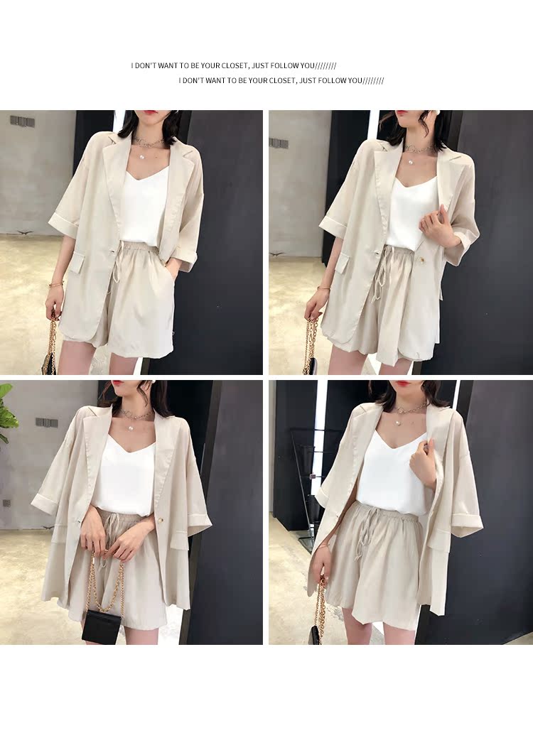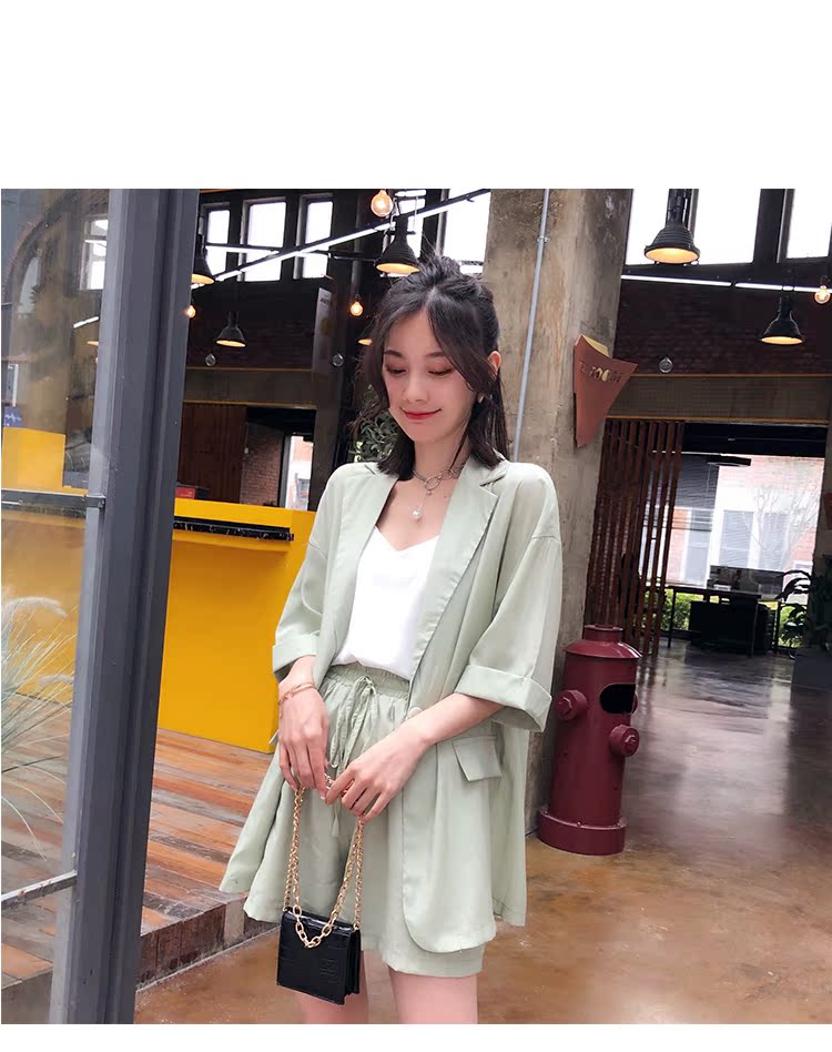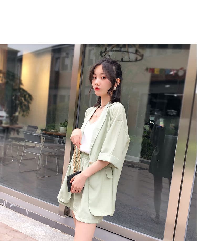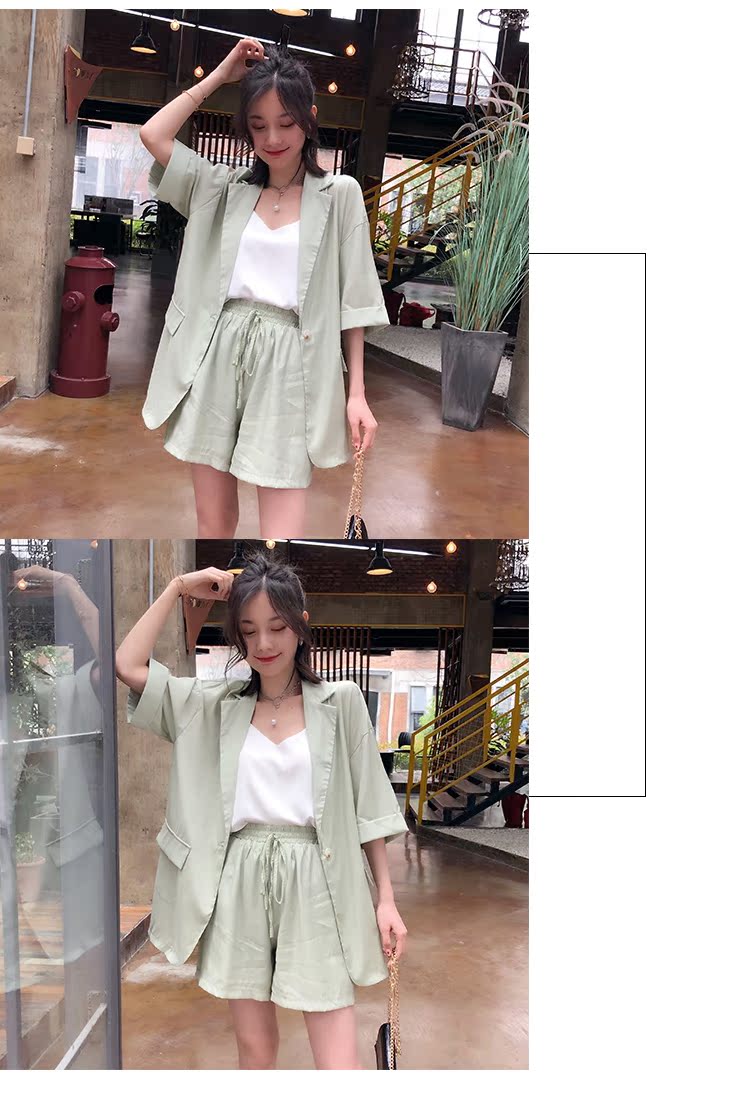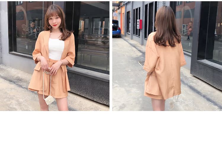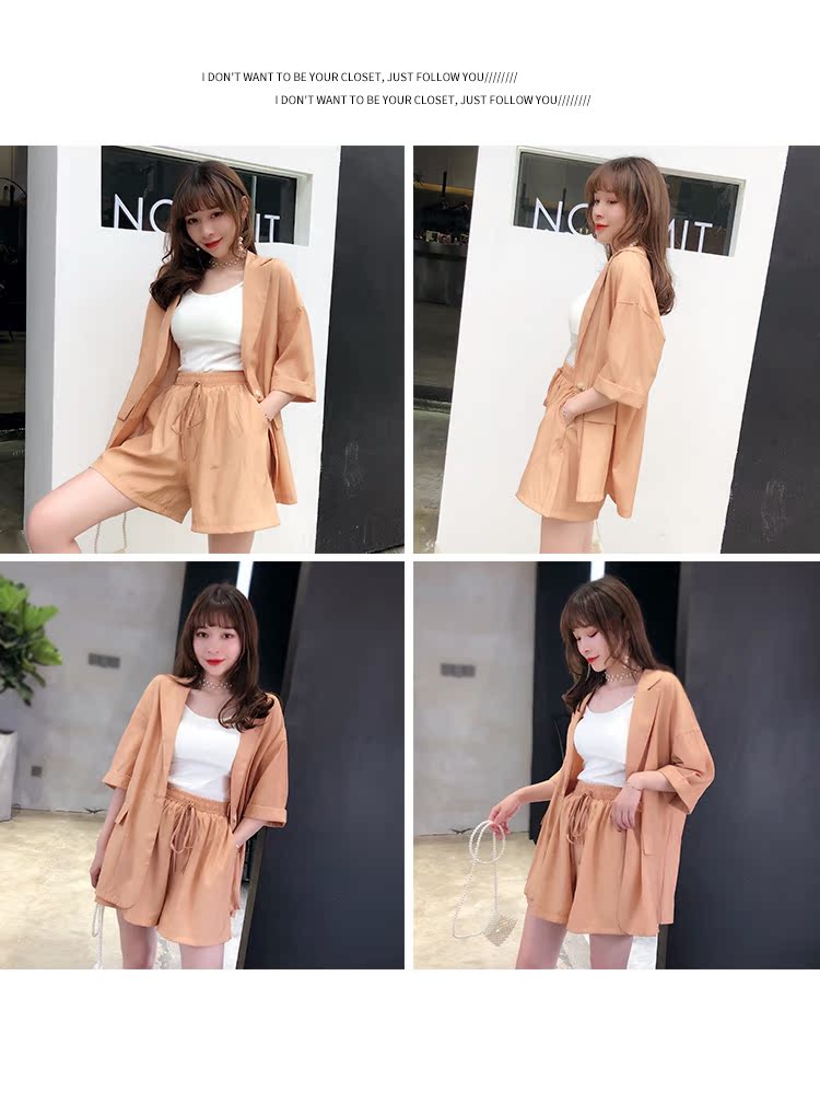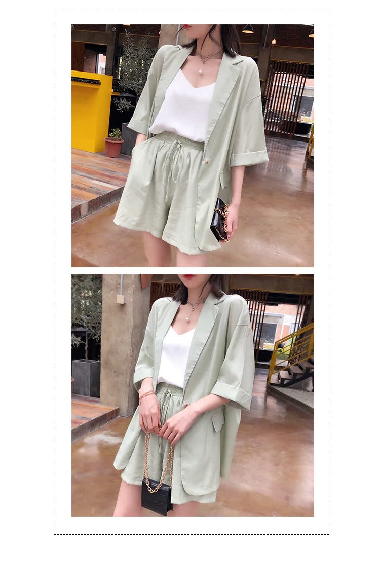 骨朵家 網紅西服兩件套女2019新款韓版洋氣顯瘦西裝闊腿短褲套裝1入