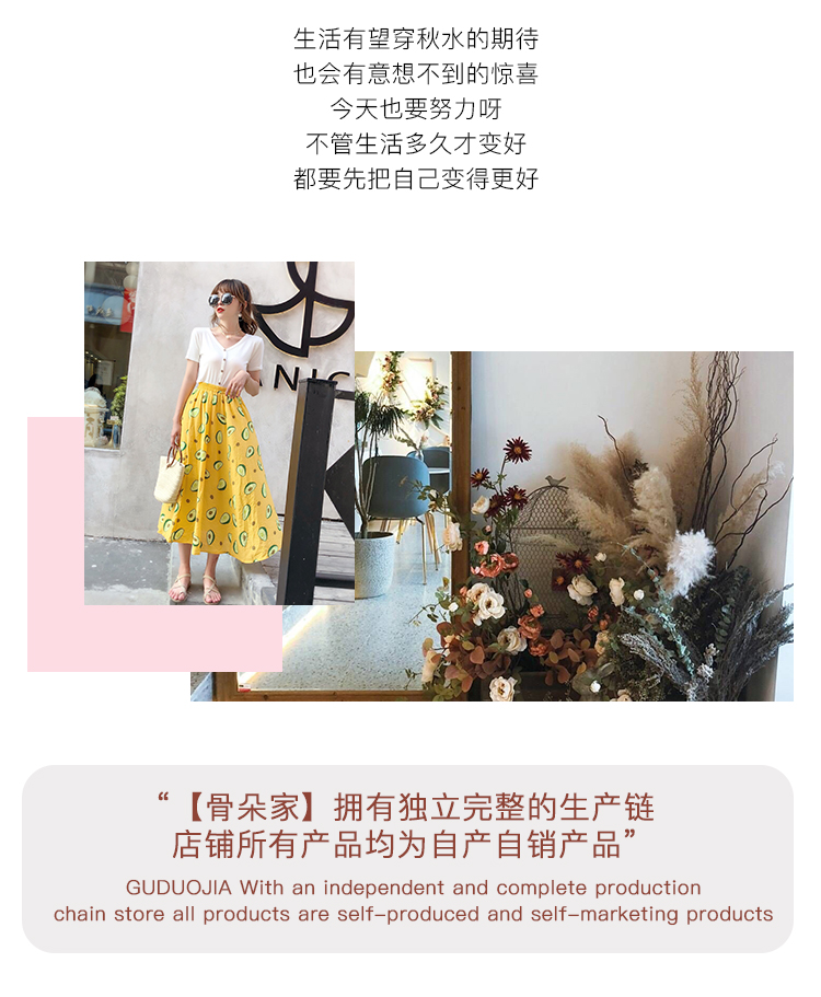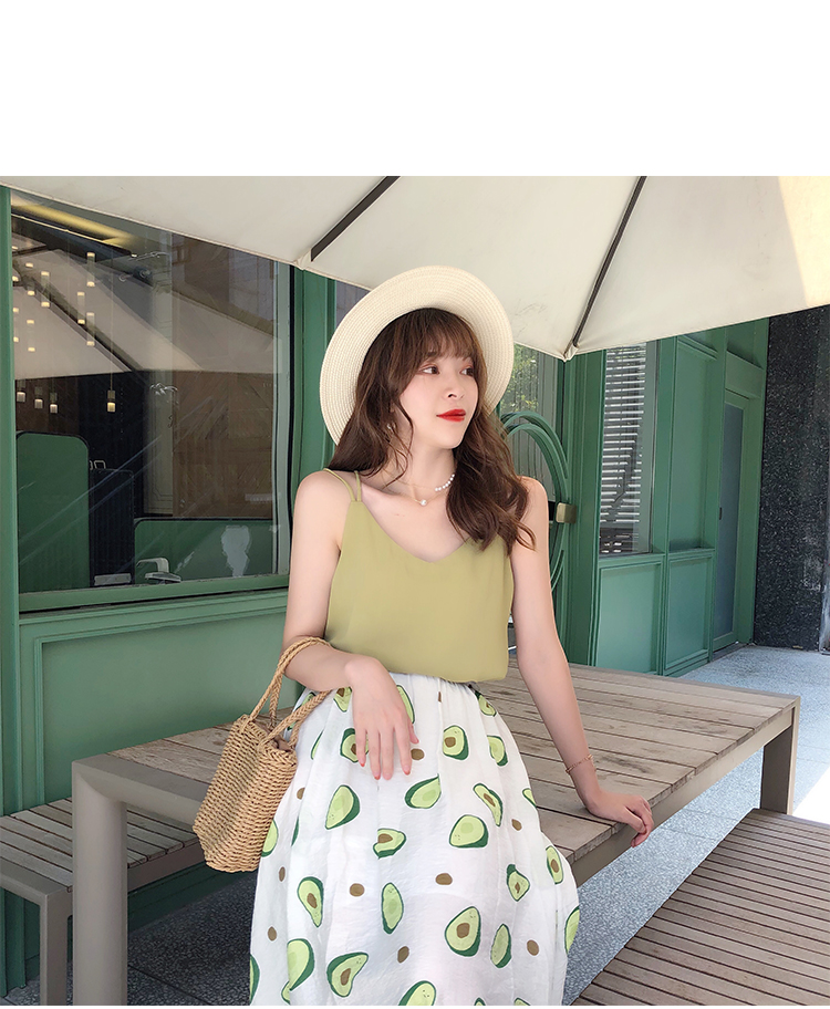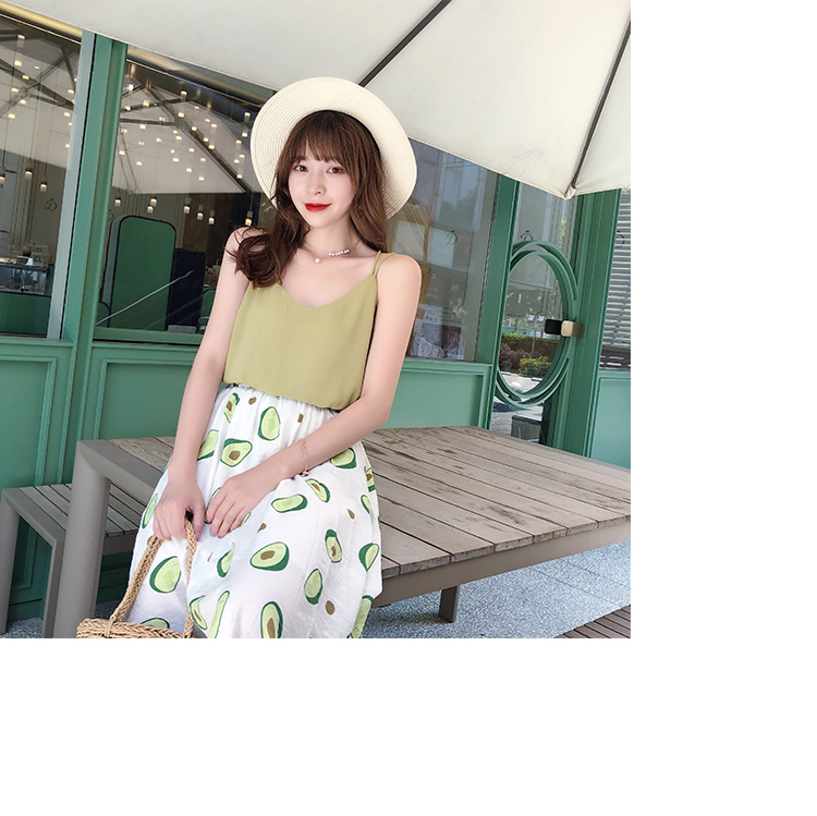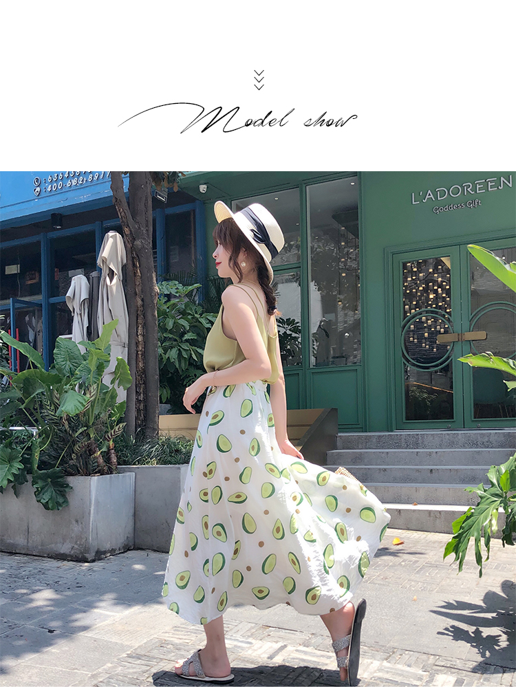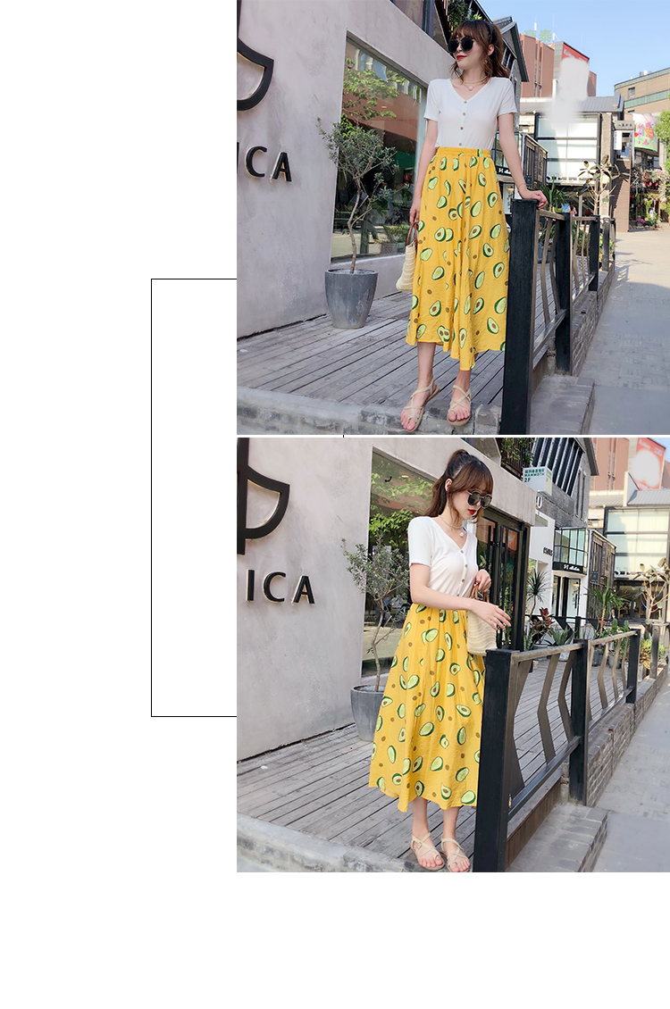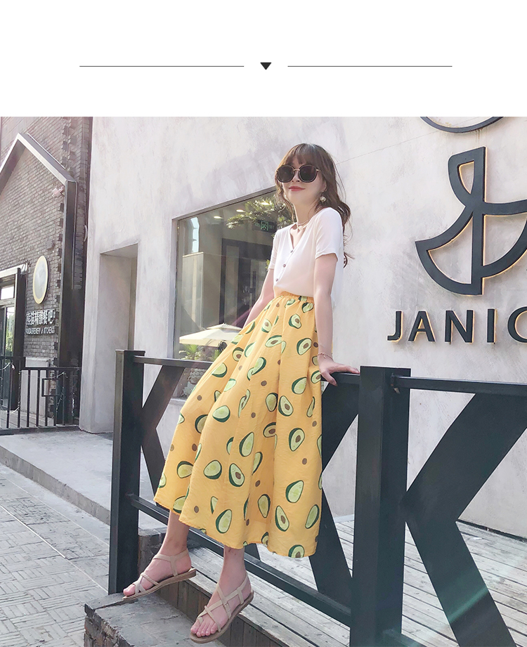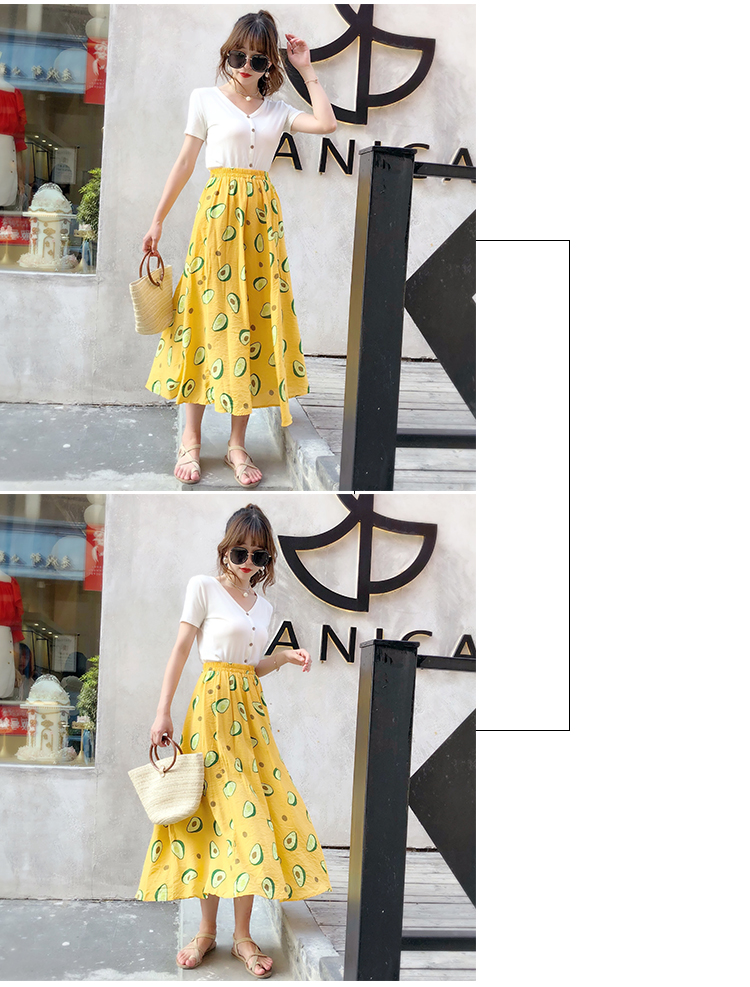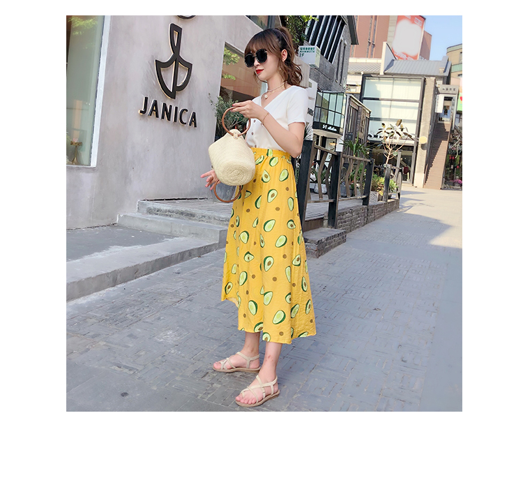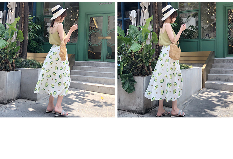 泫雅風印花牛油果雪紡半身裙女高腰顯瘦中長款棉麻A字大擺裙子夏1入