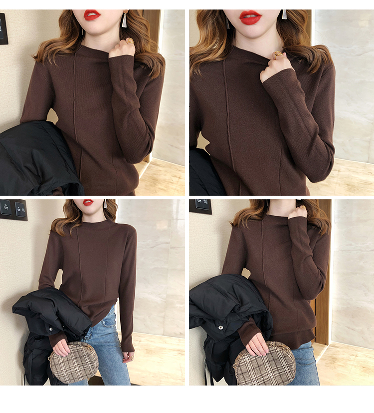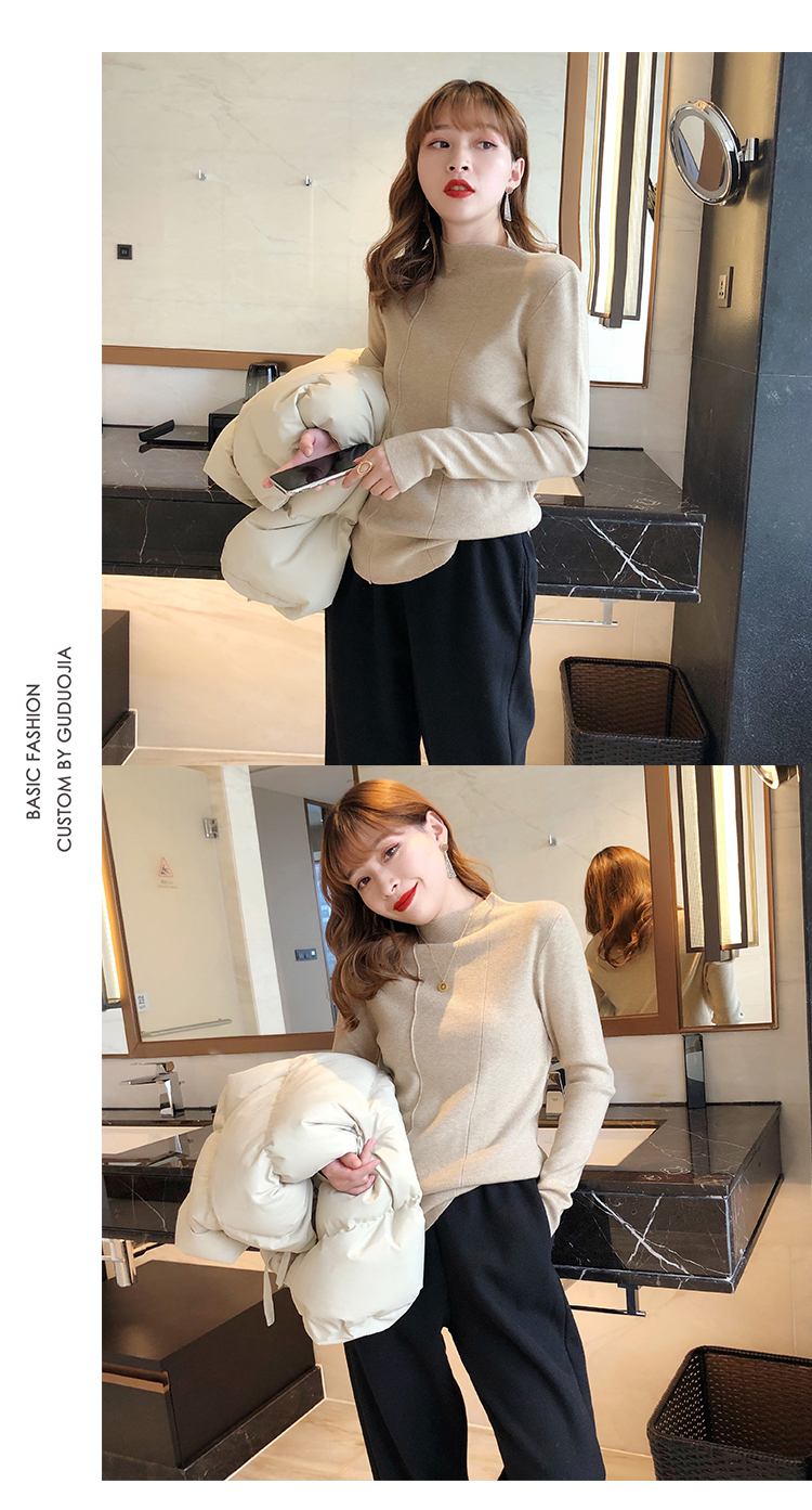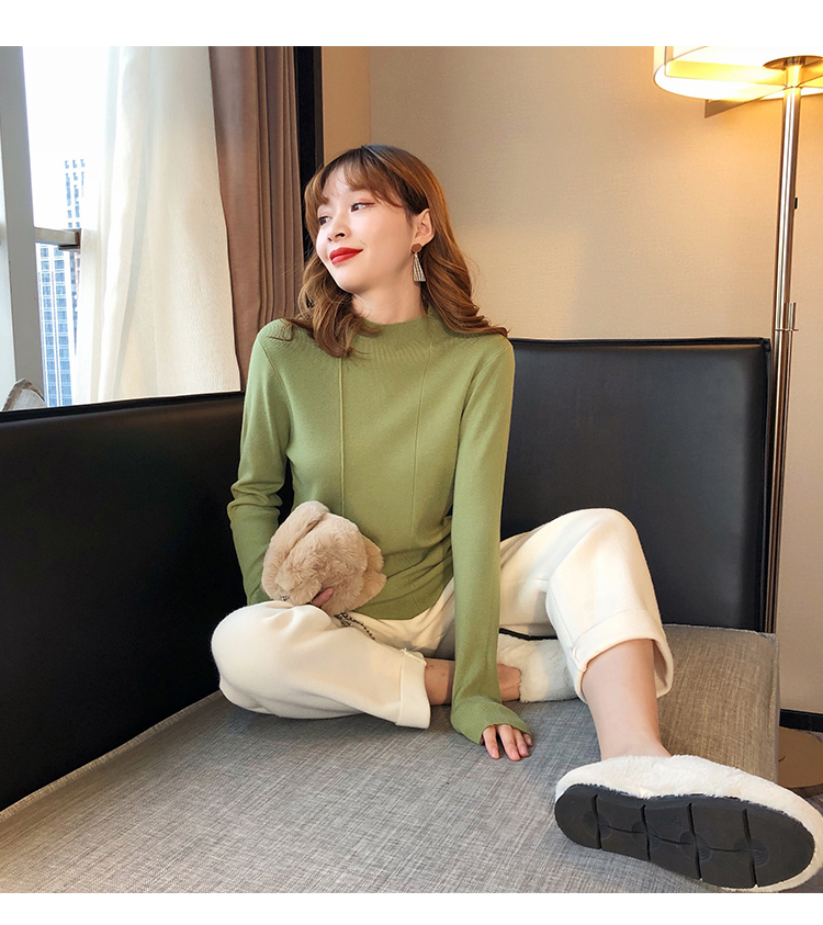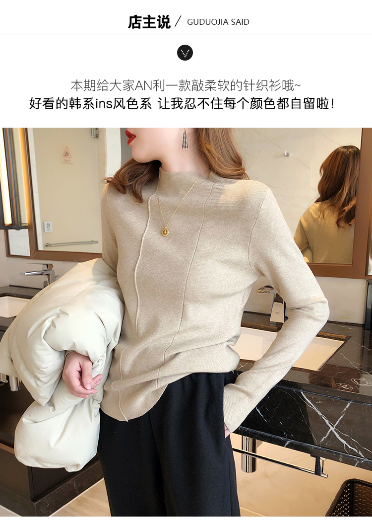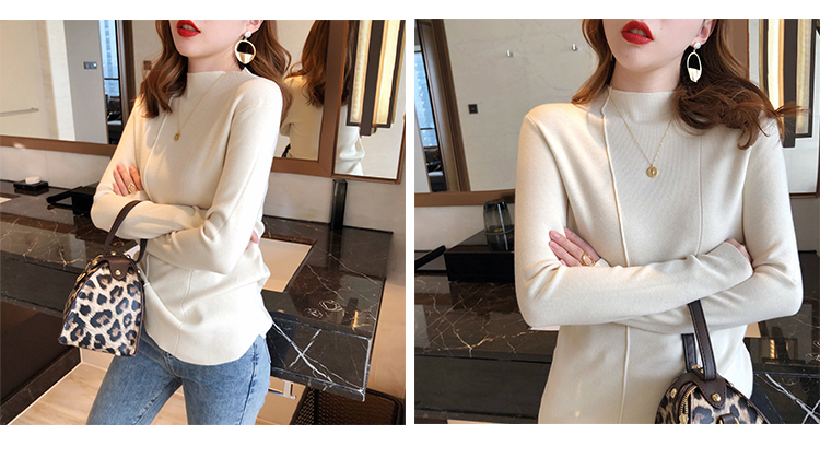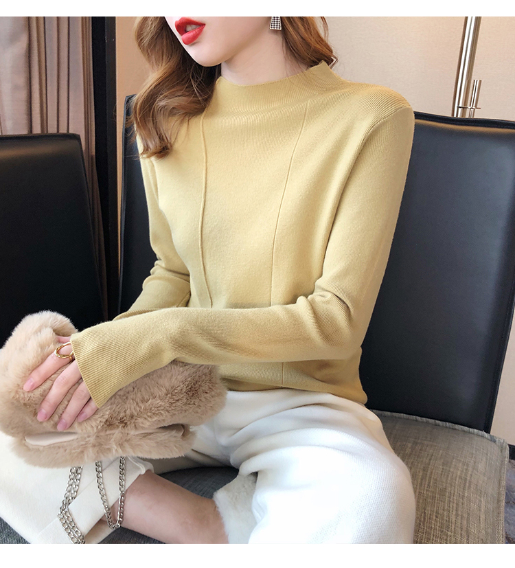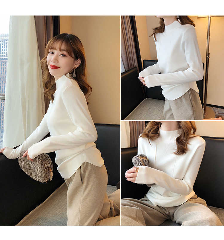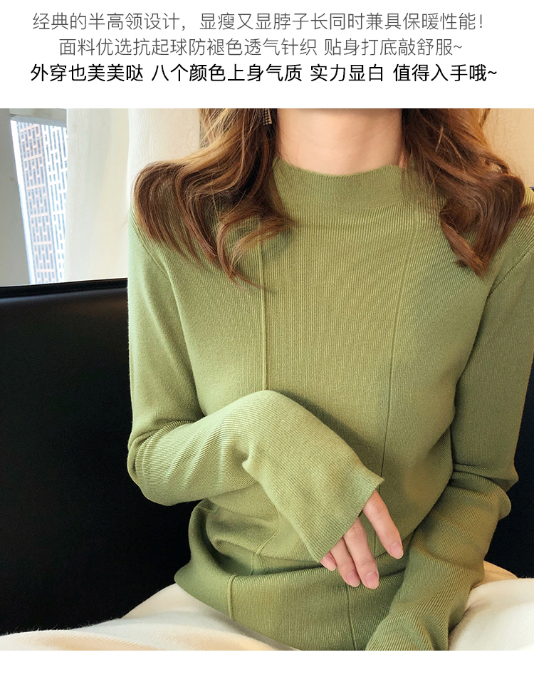 2019秋冬新款半高領內搭針織衫韓版時尚打底衫女加厚外穿女士毛衣1入