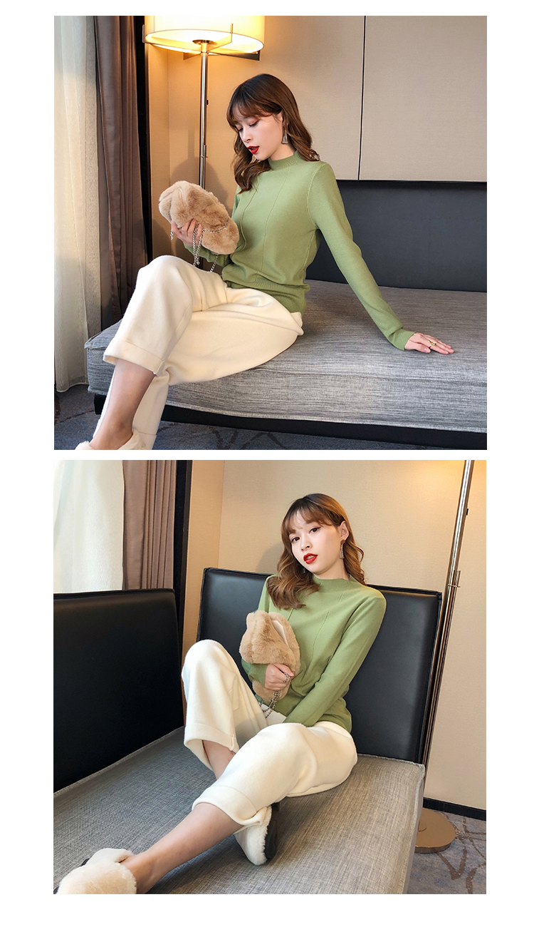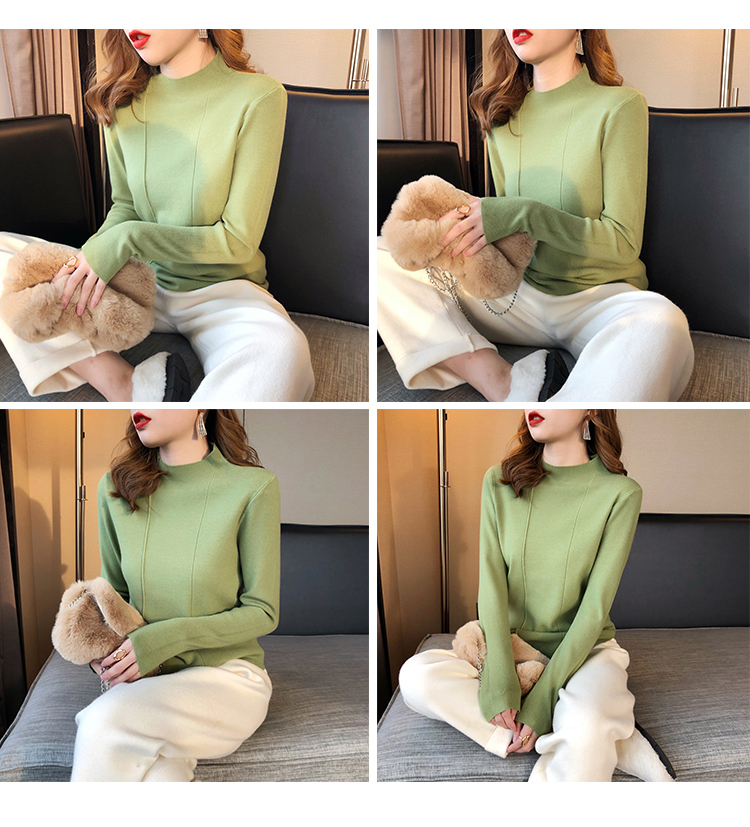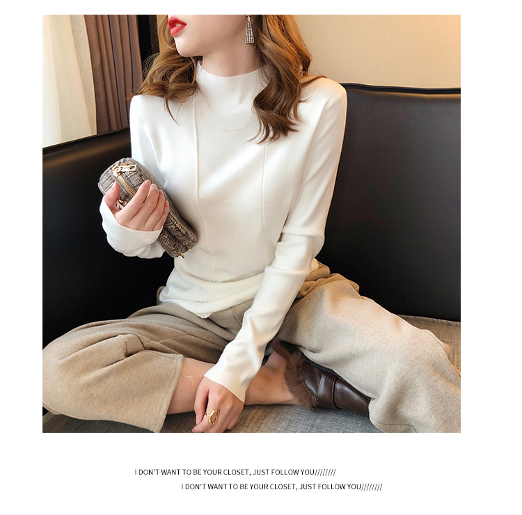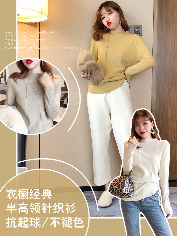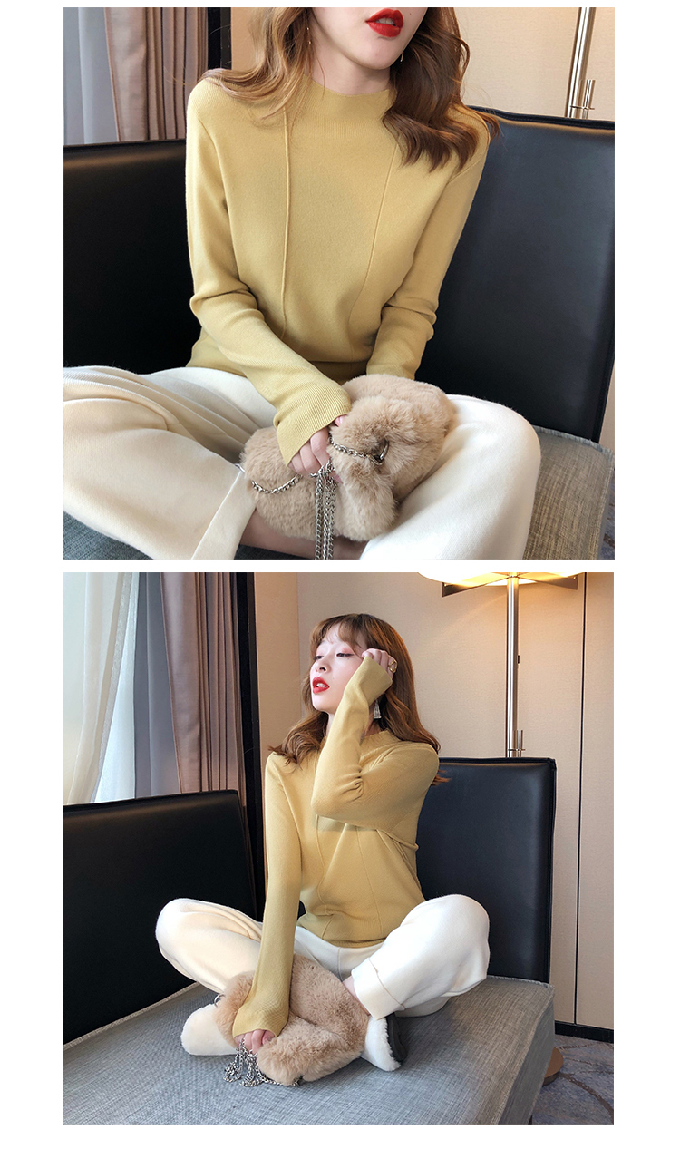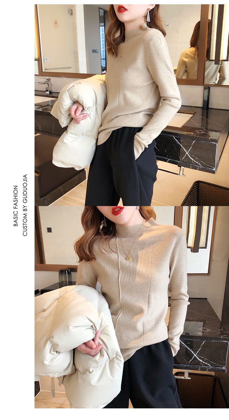2019秋冬新款半高領內搭針織衫韓版時尚打底衫女加厚外穿女士毛衣1入